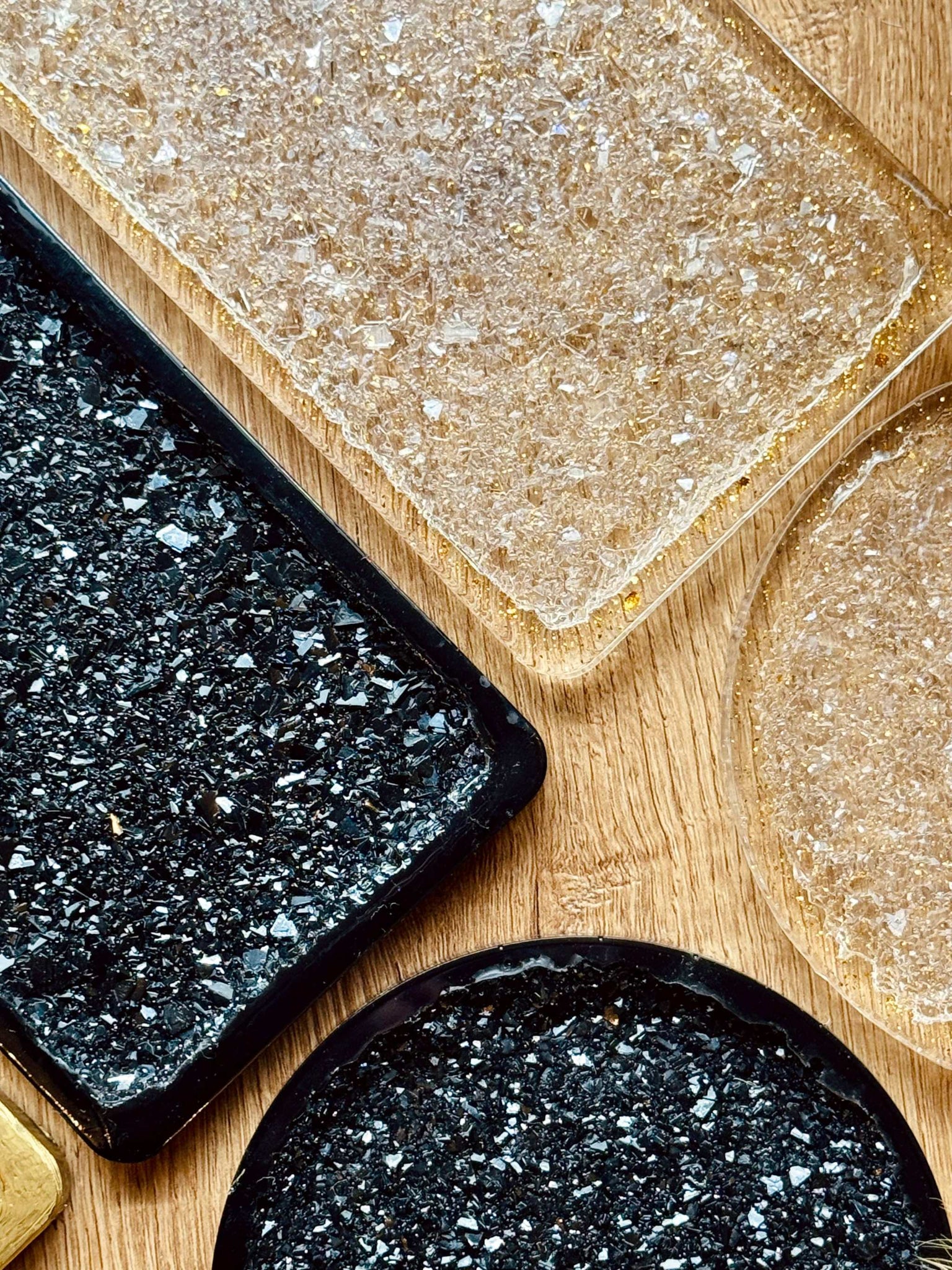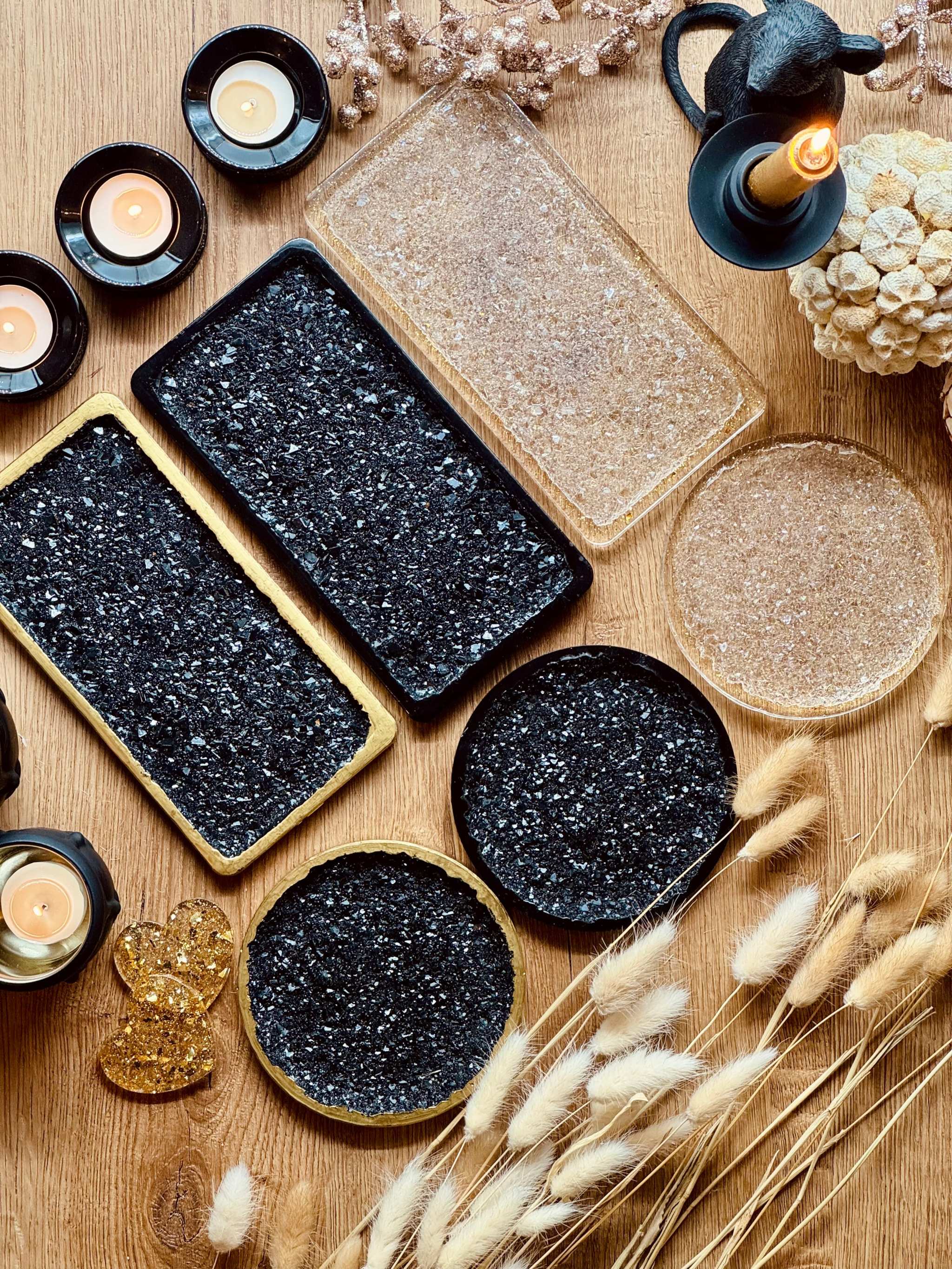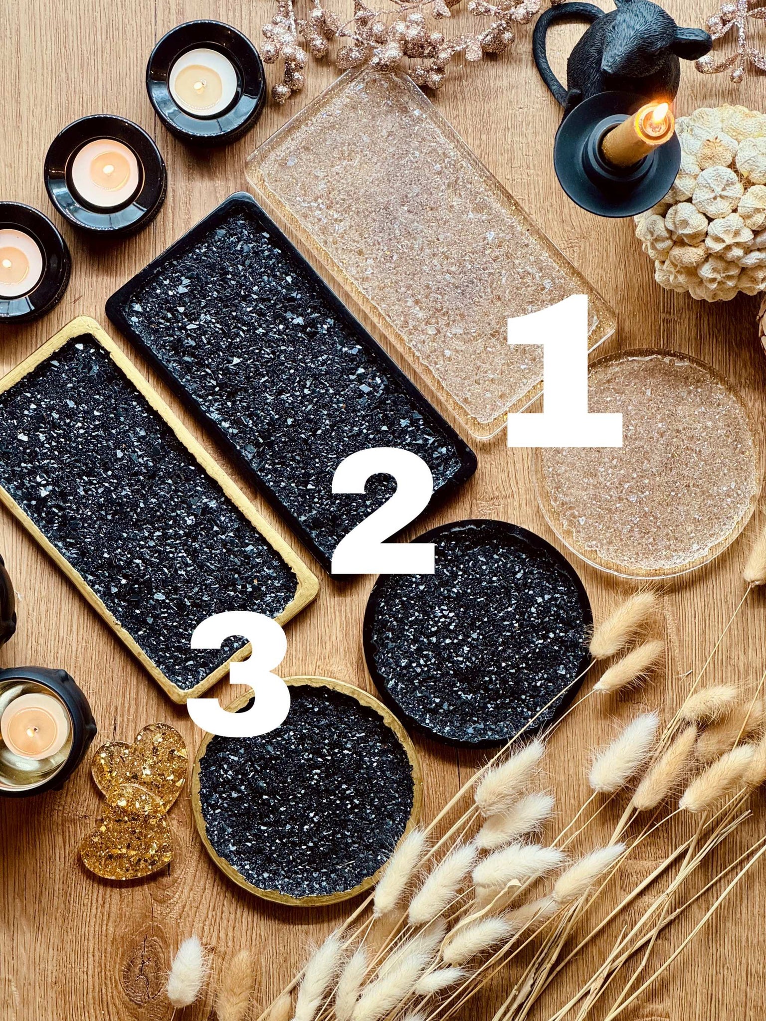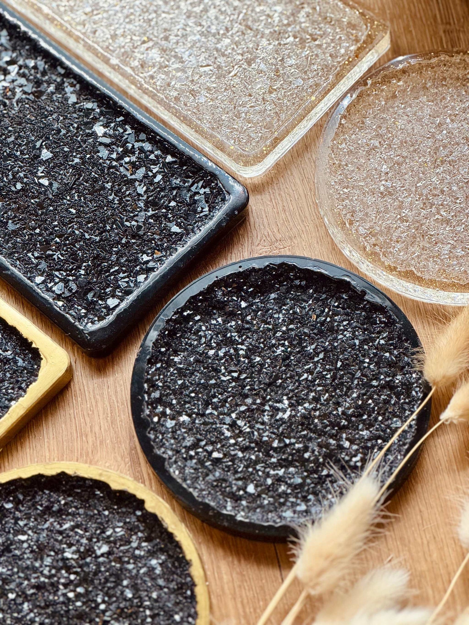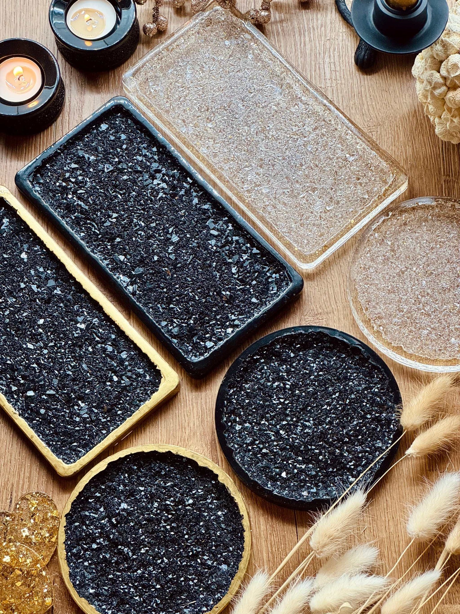 Handgemachte Tabletts im 2er Set aus Resin mit druzy Oberfläche. Alle meine Artikel sind einzigartige Unikate. Tabletts sind die perfekte Dekoration auf jedem Tisch oder Möbelstück und ein individuelles Geschenk für deine Liebsten.