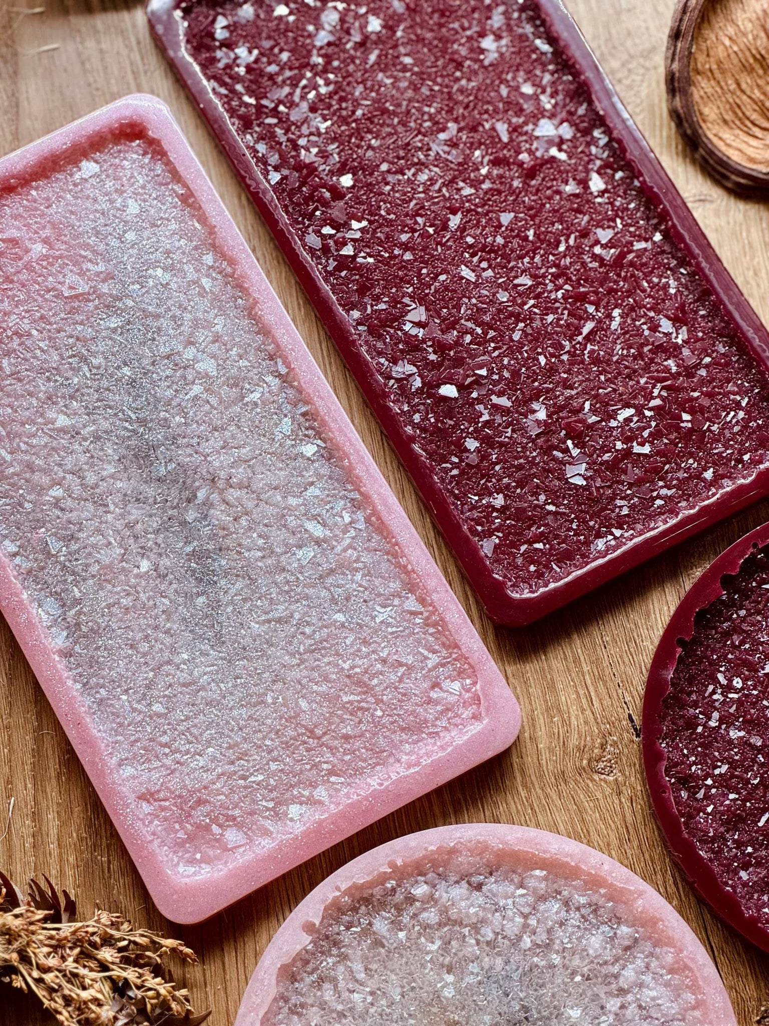 Handgemachte Tabletts im 2er Set aus Resin mit druzy Oberfläche. Alle meine Artikel sind einzigartige Unikate. Tabletts sind die perfekte Dekoration auf jedem Tisch oder Möbelstück und ein individuelles Geschenk für deine Liebsten.