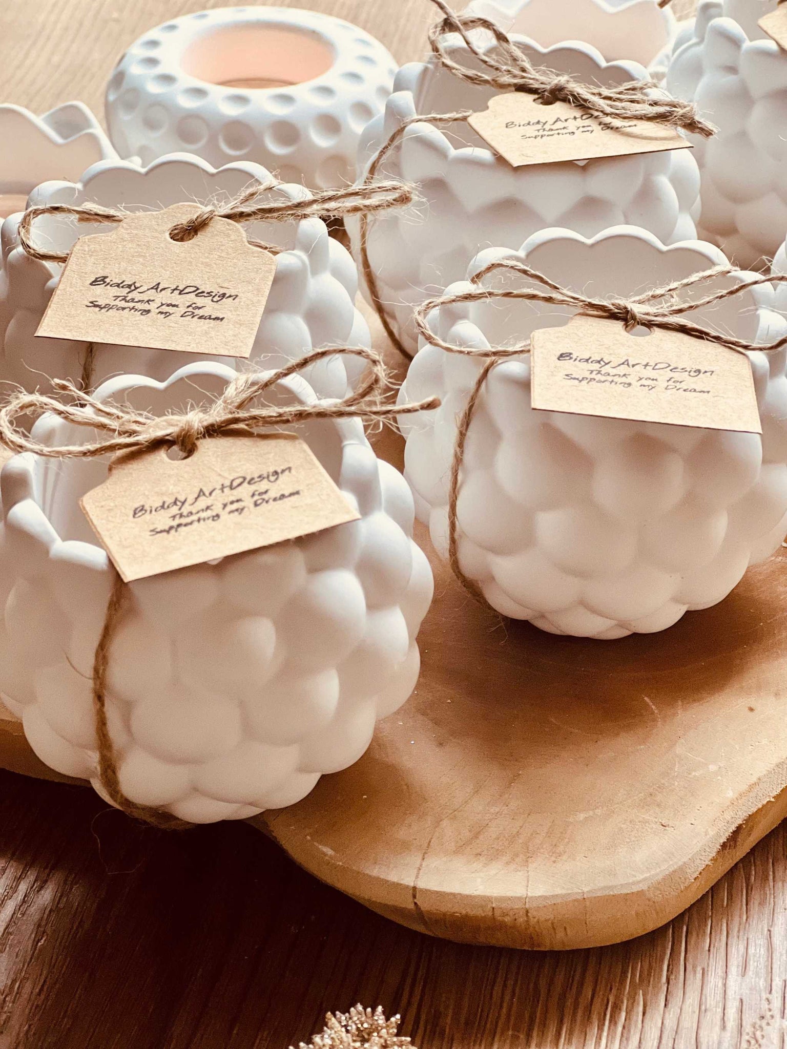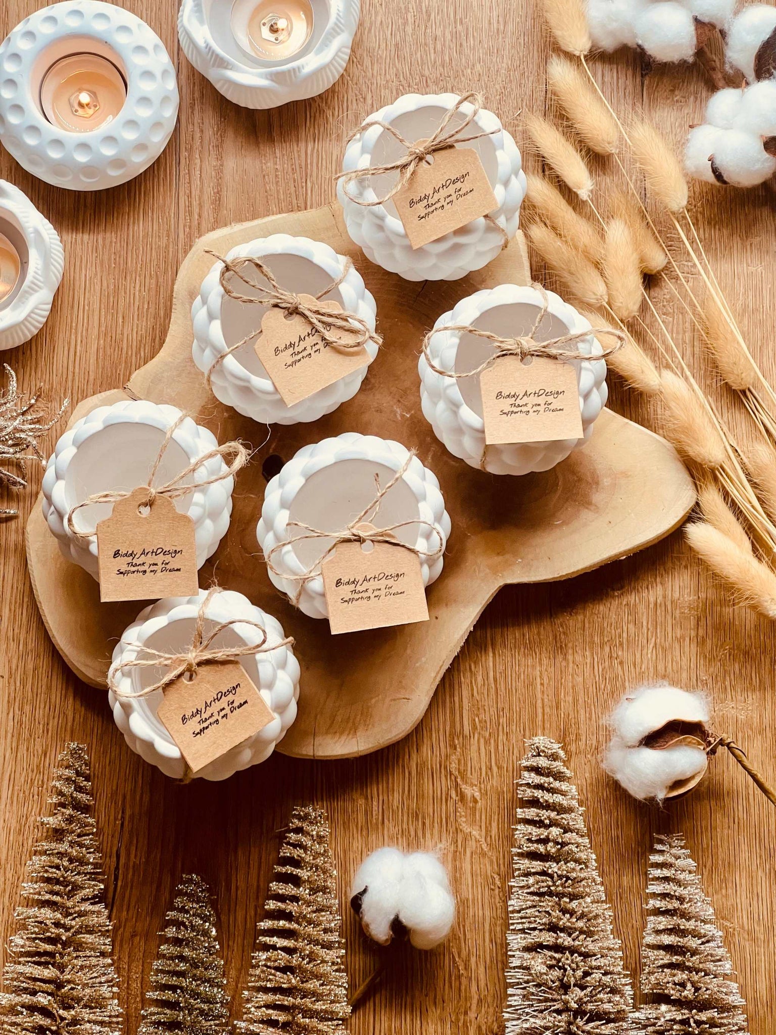 Gießkeramik Teelichthalter im minimalistischen Design "Funny Dots"