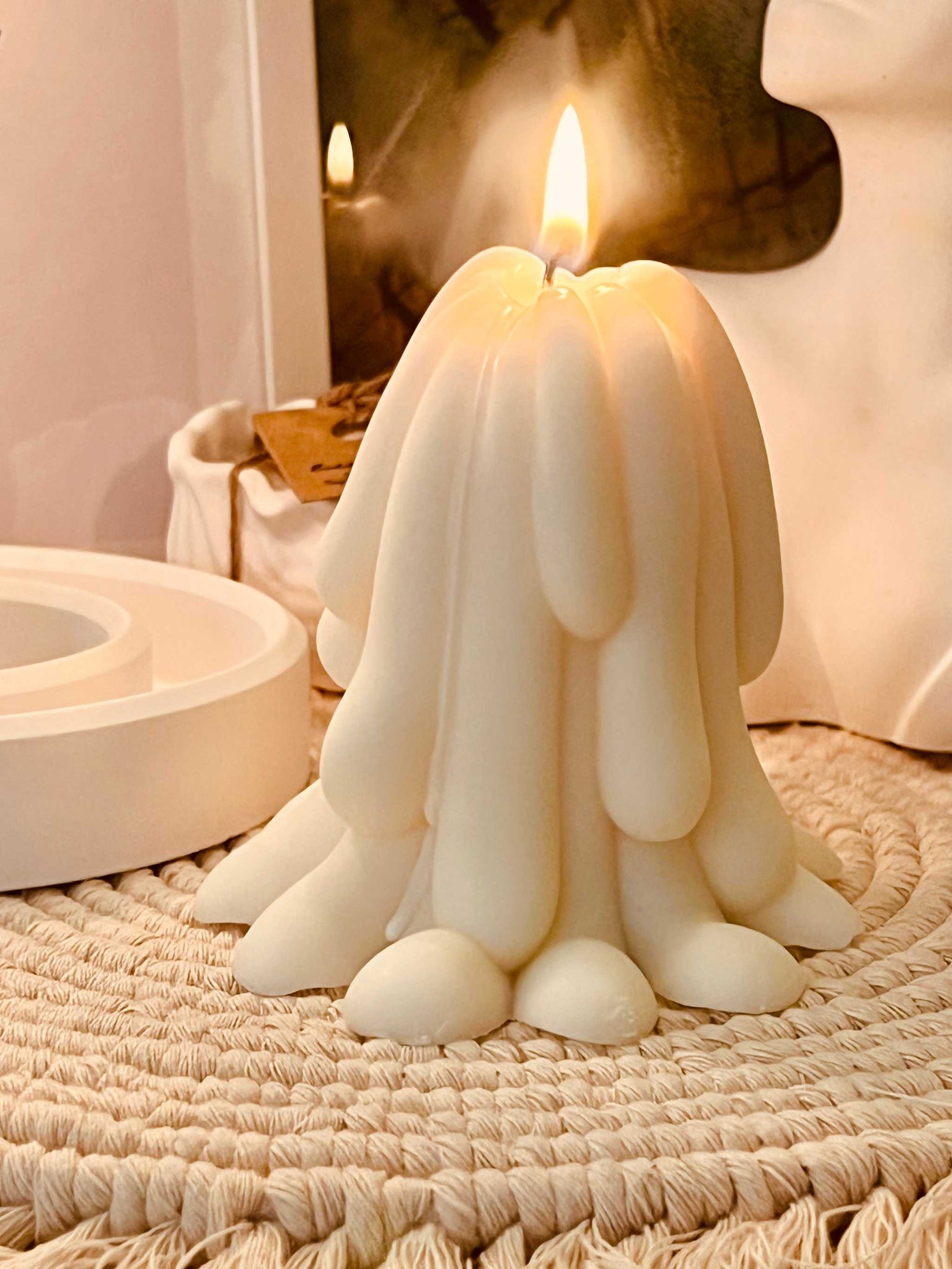 Rapswachskerze in ausgefallenem Design, handgemacht und perfekt als nachhaltiges Geschenk oder Deko-Akzent.