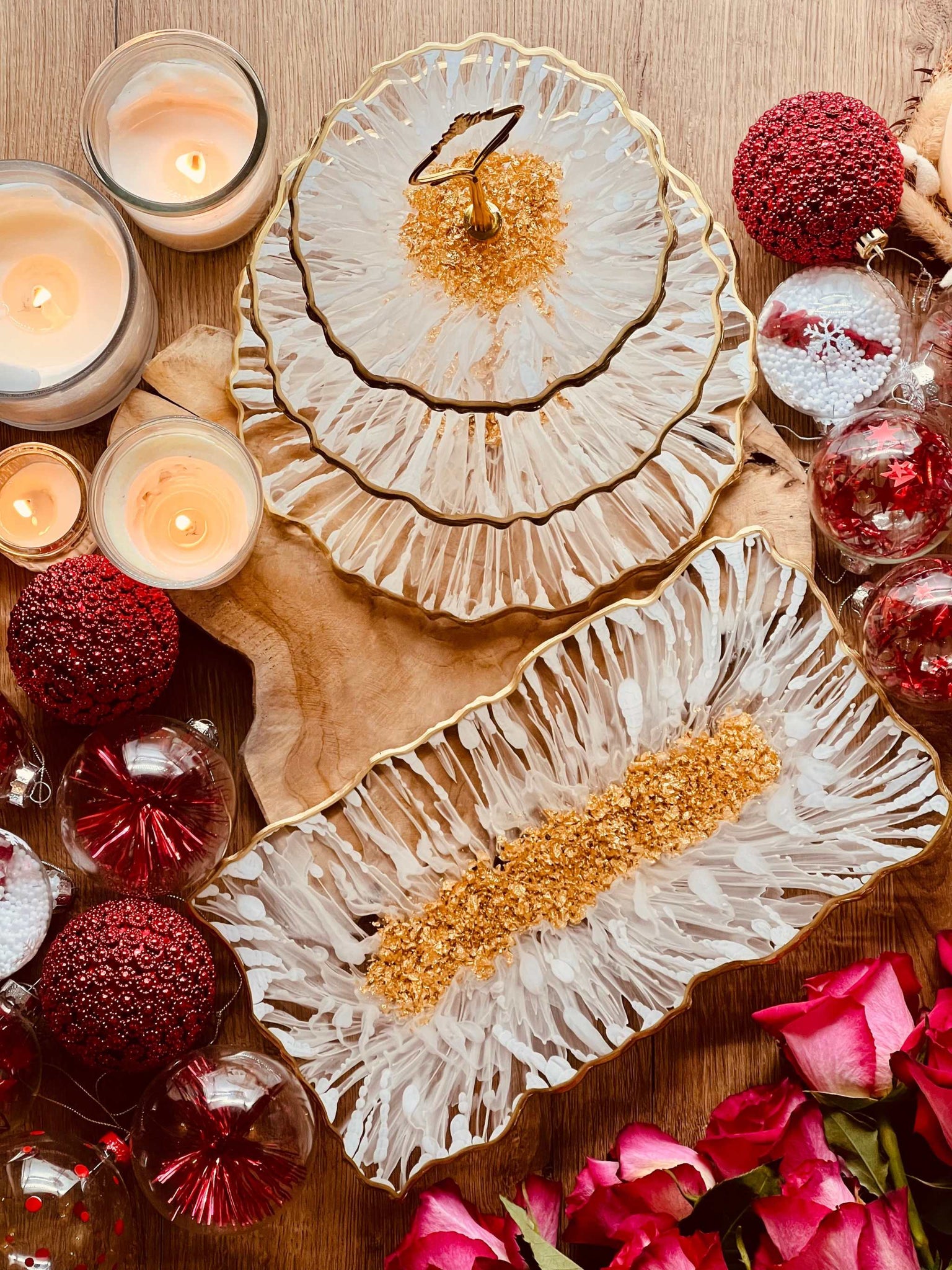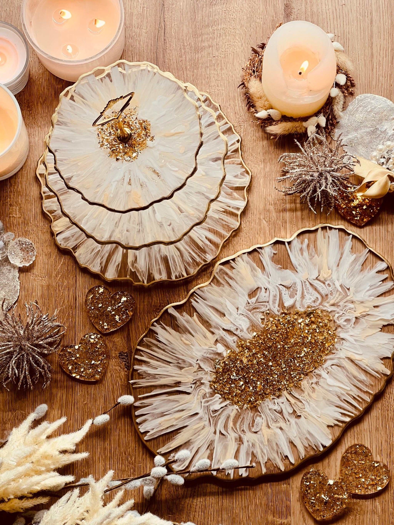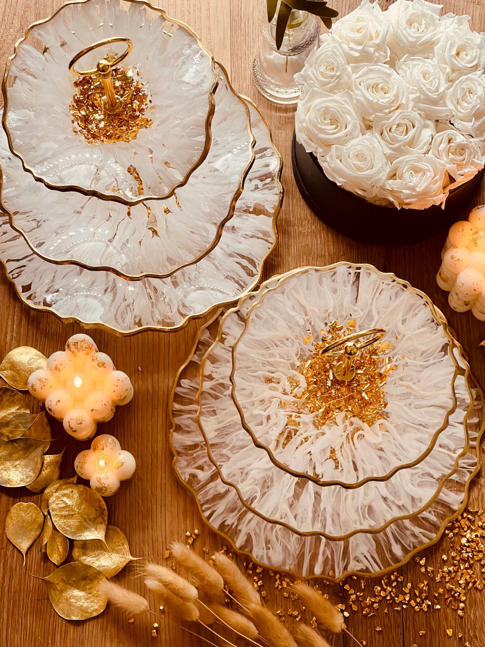 Eleganz in Weiß und Gold – Das handgefertigte Deko Set aus Epoxidharz