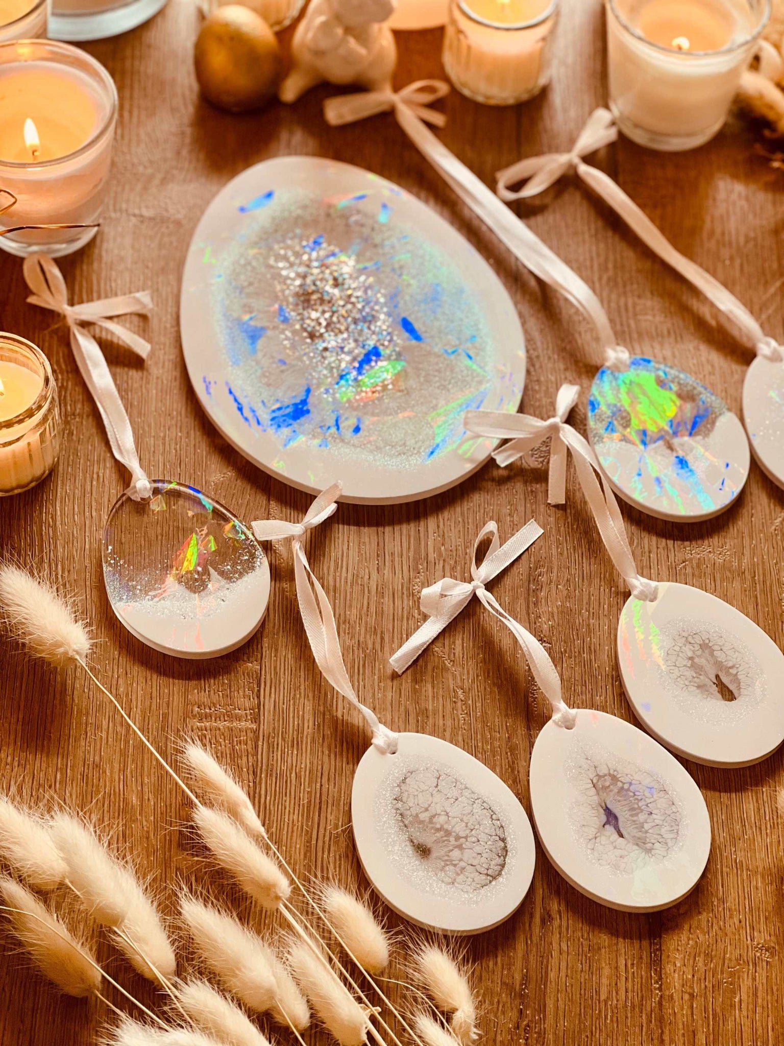 ✔ Handgemachte Unikate – Jedes Osterei ist einzigartig durch das Silberfinish und den holographischen Glanz.