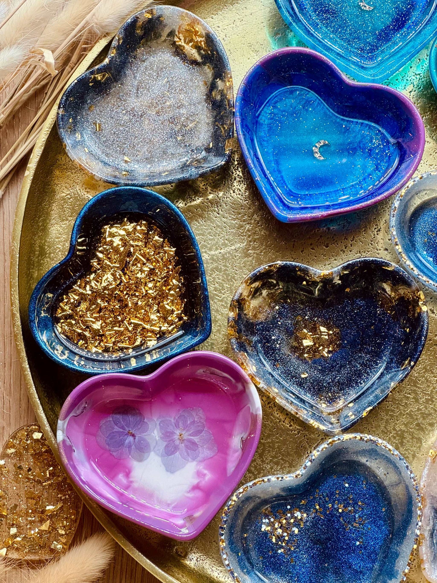 Schmuckschalen aus Resin in bunt mit Goldenen Details