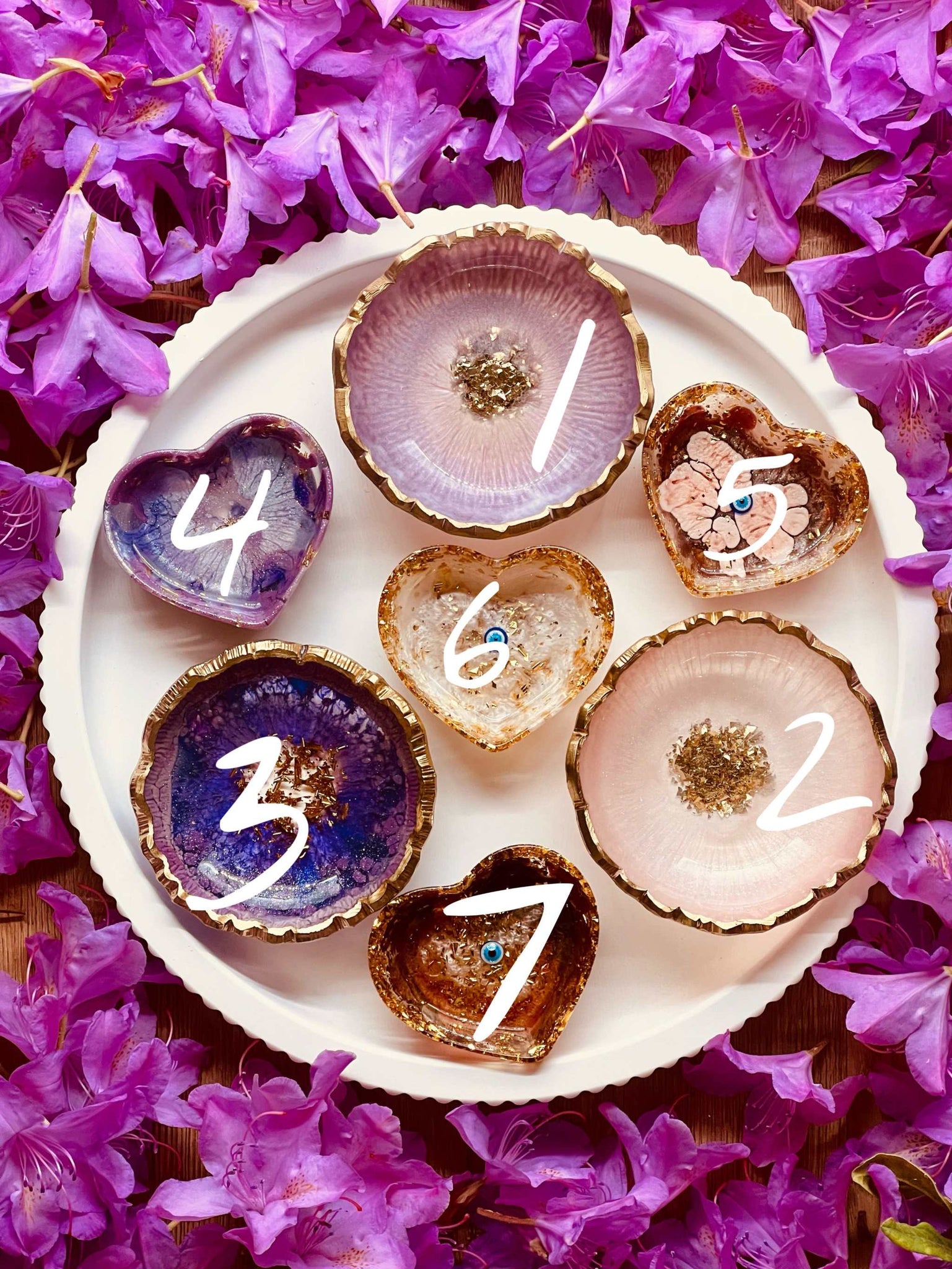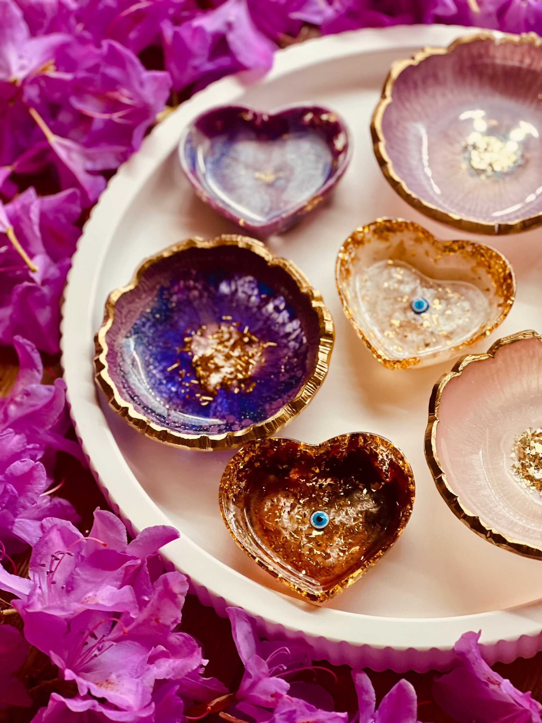 Schmuckschalen aus Resin in Beerentönen mit Goldenen Details