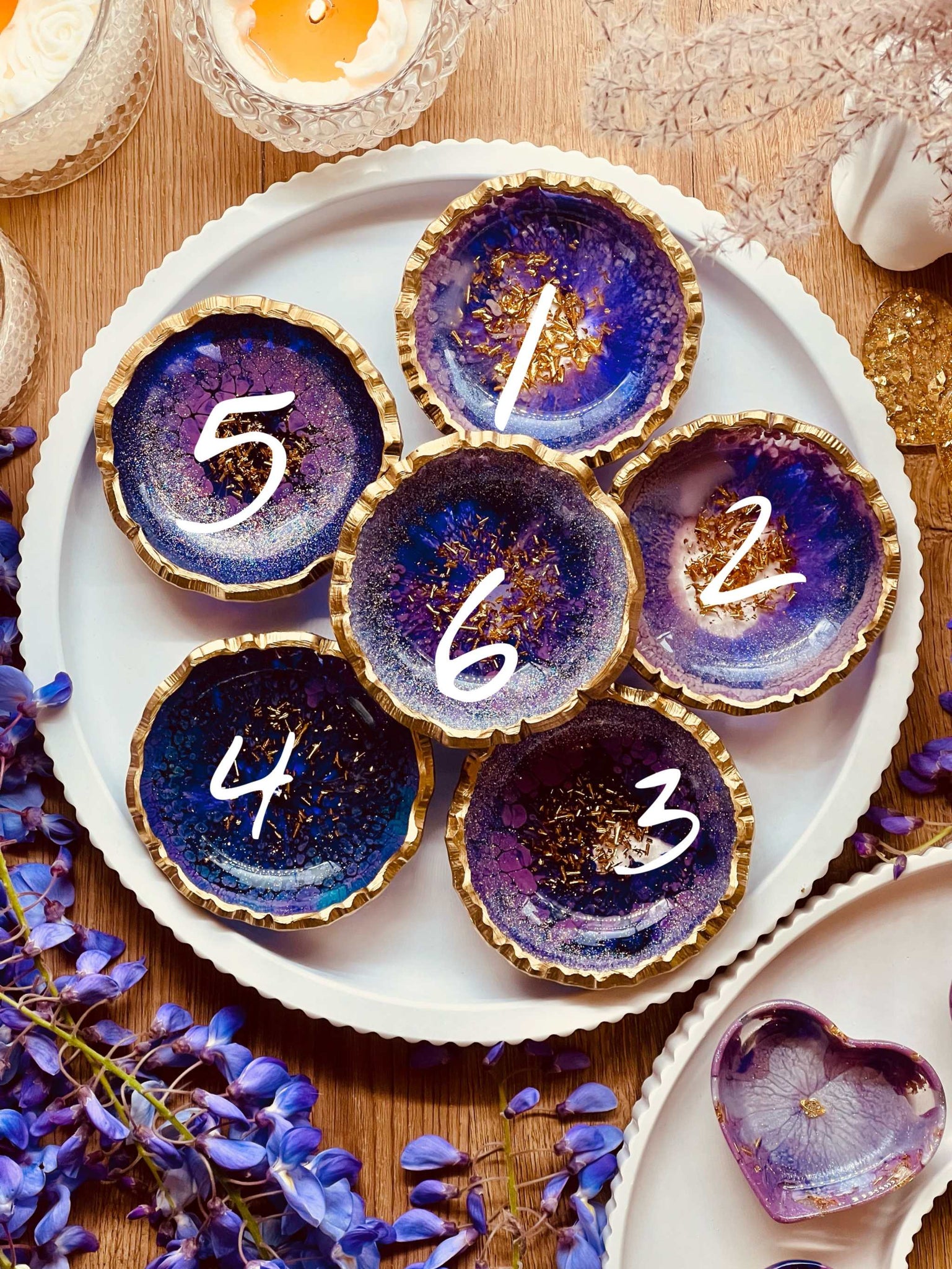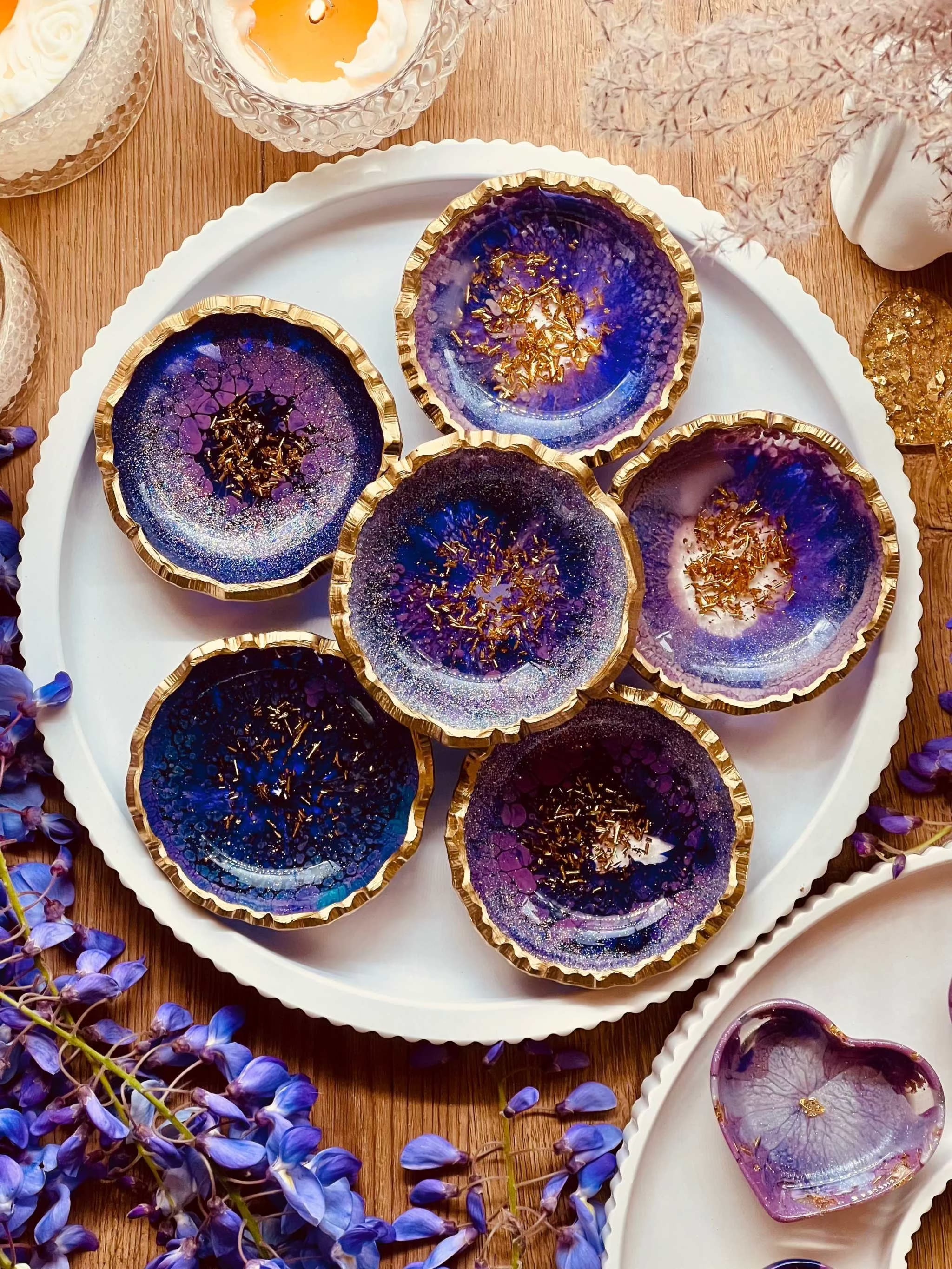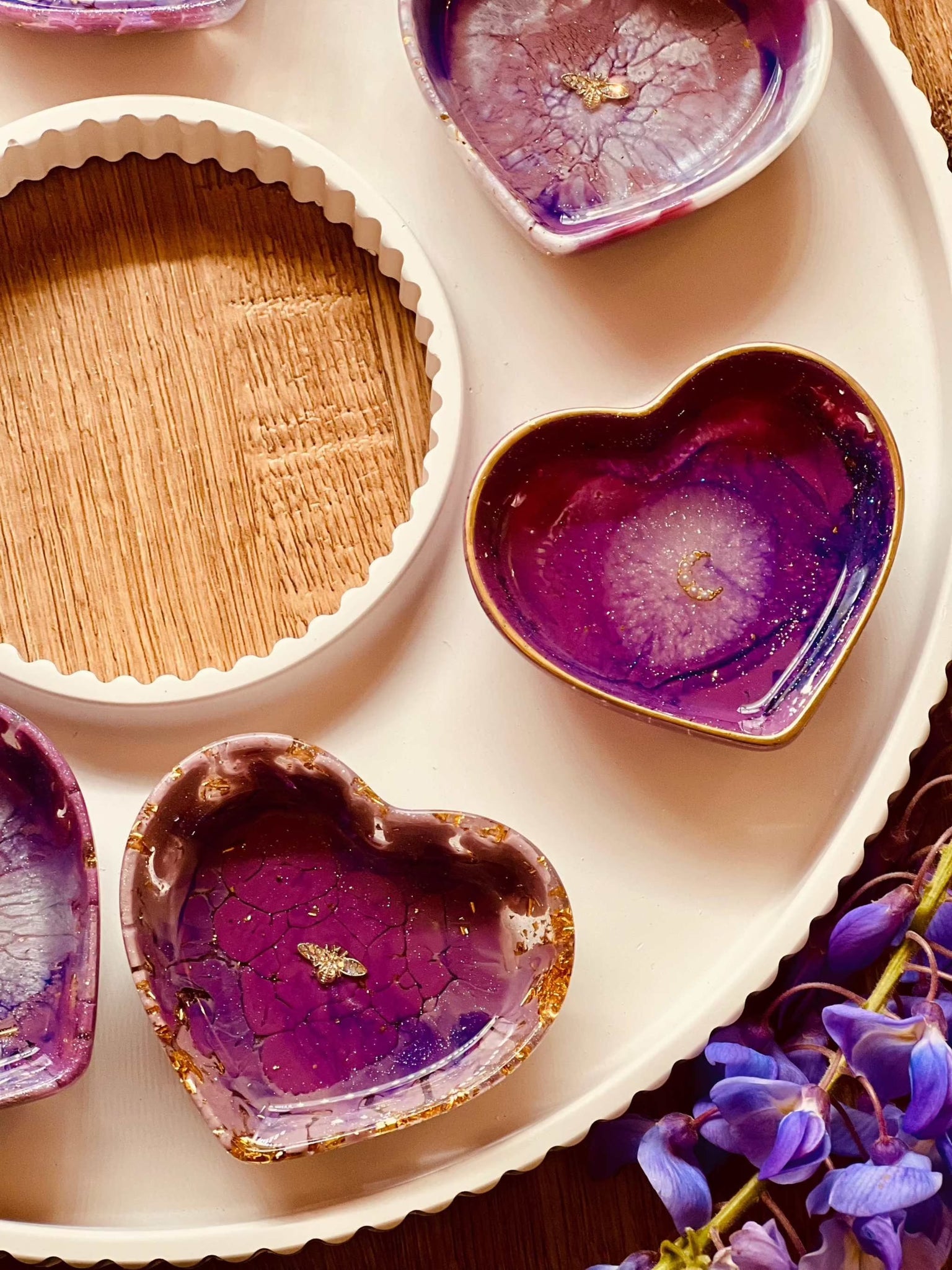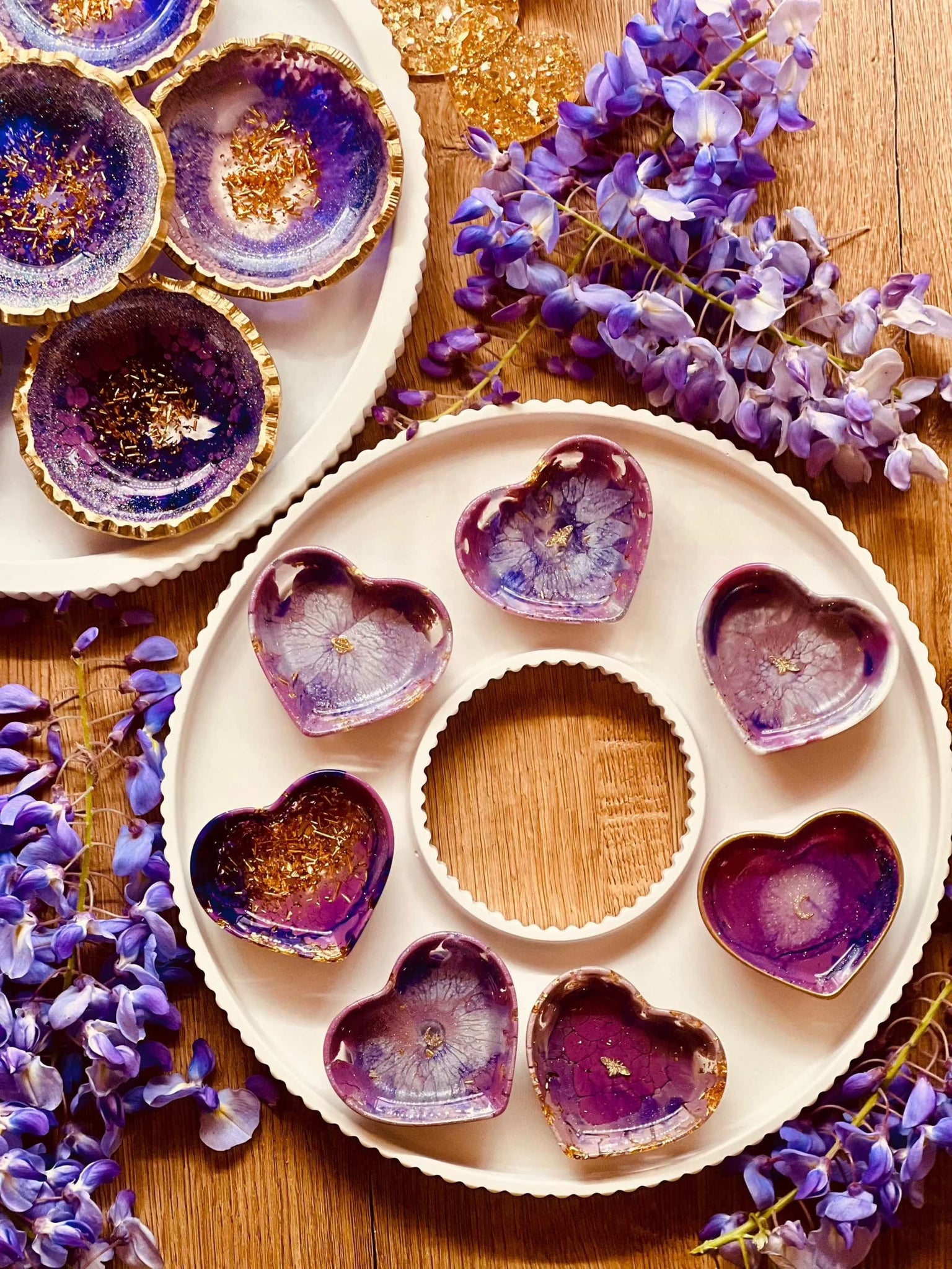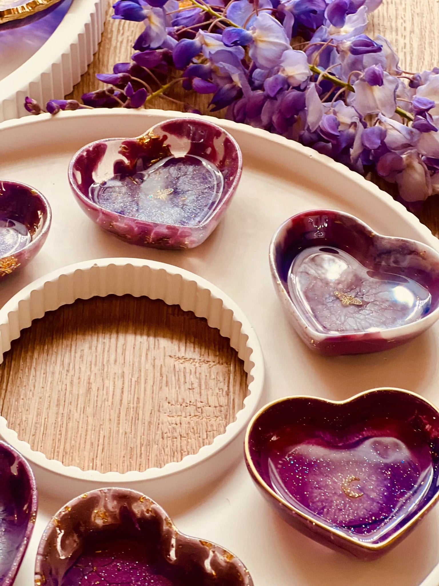 Schmuckschalen aus Resin in Lila mit Goldenen Details
