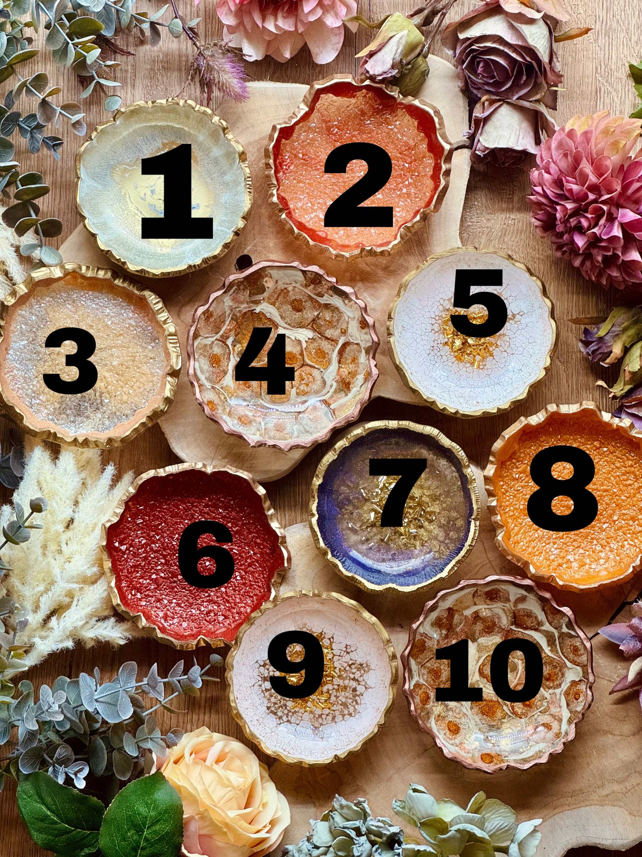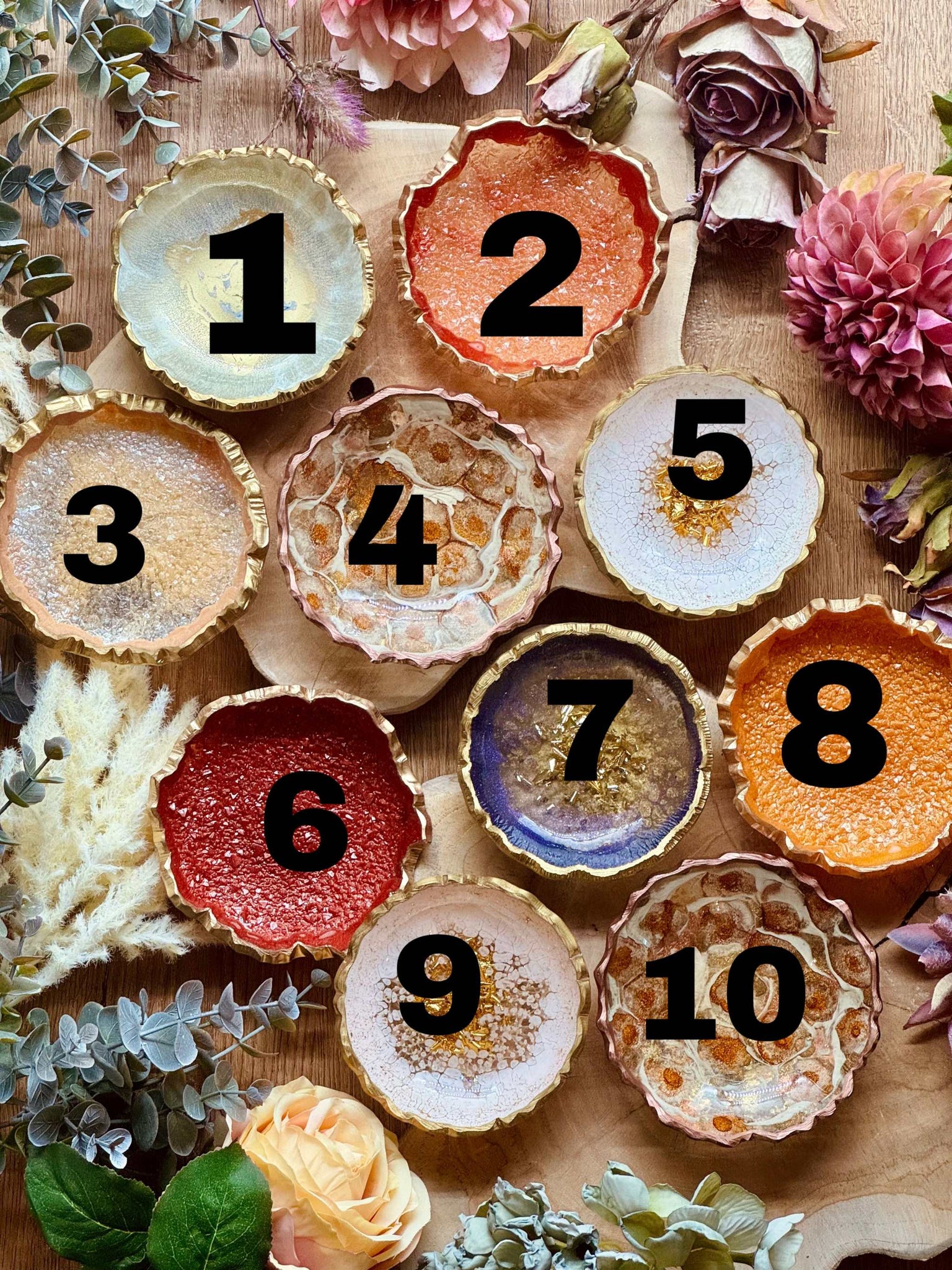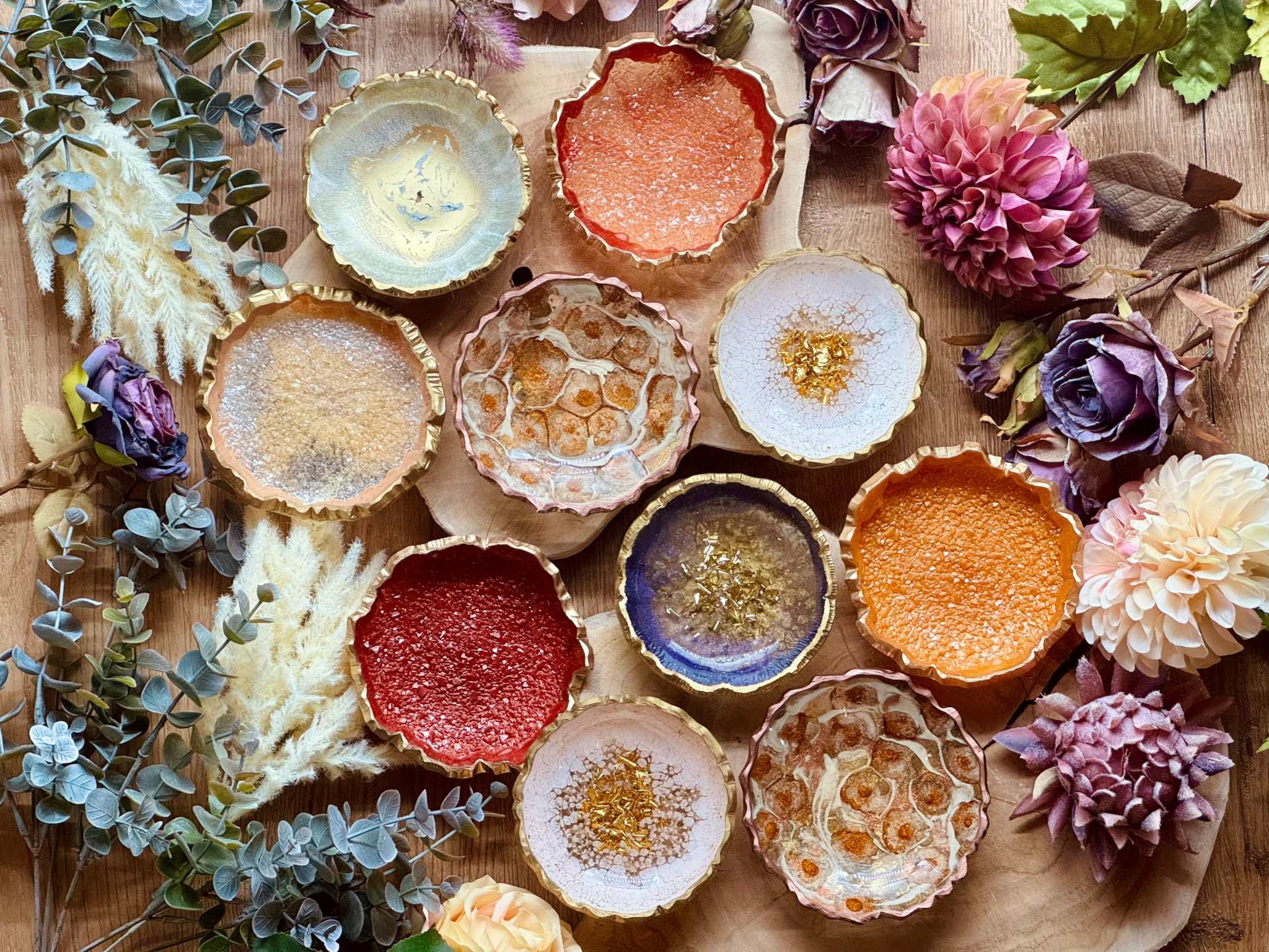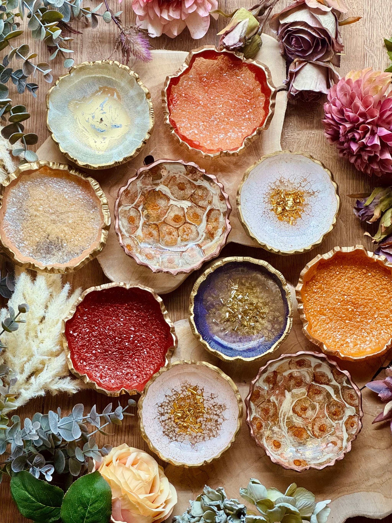 Schmuckschalen aus Resin in verschiedenen Farben mit Gold