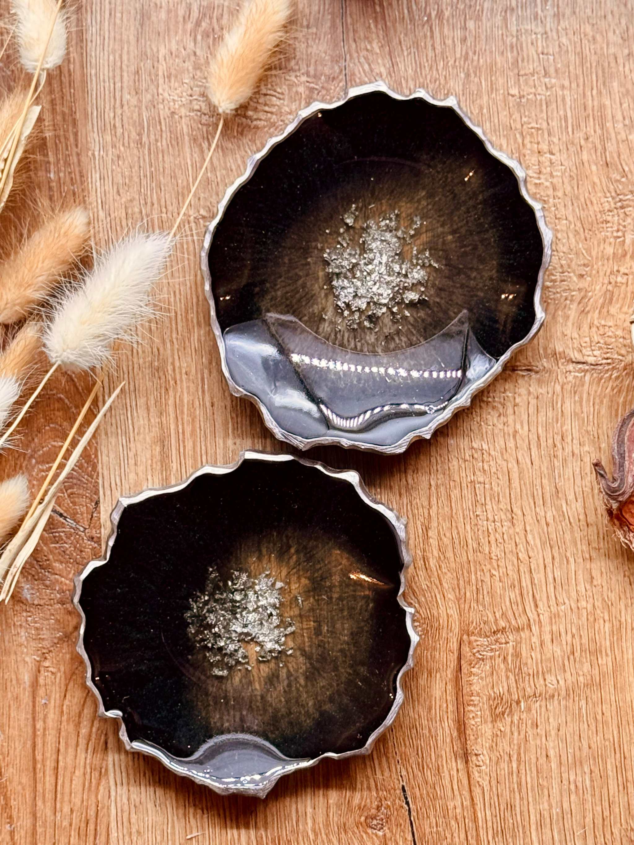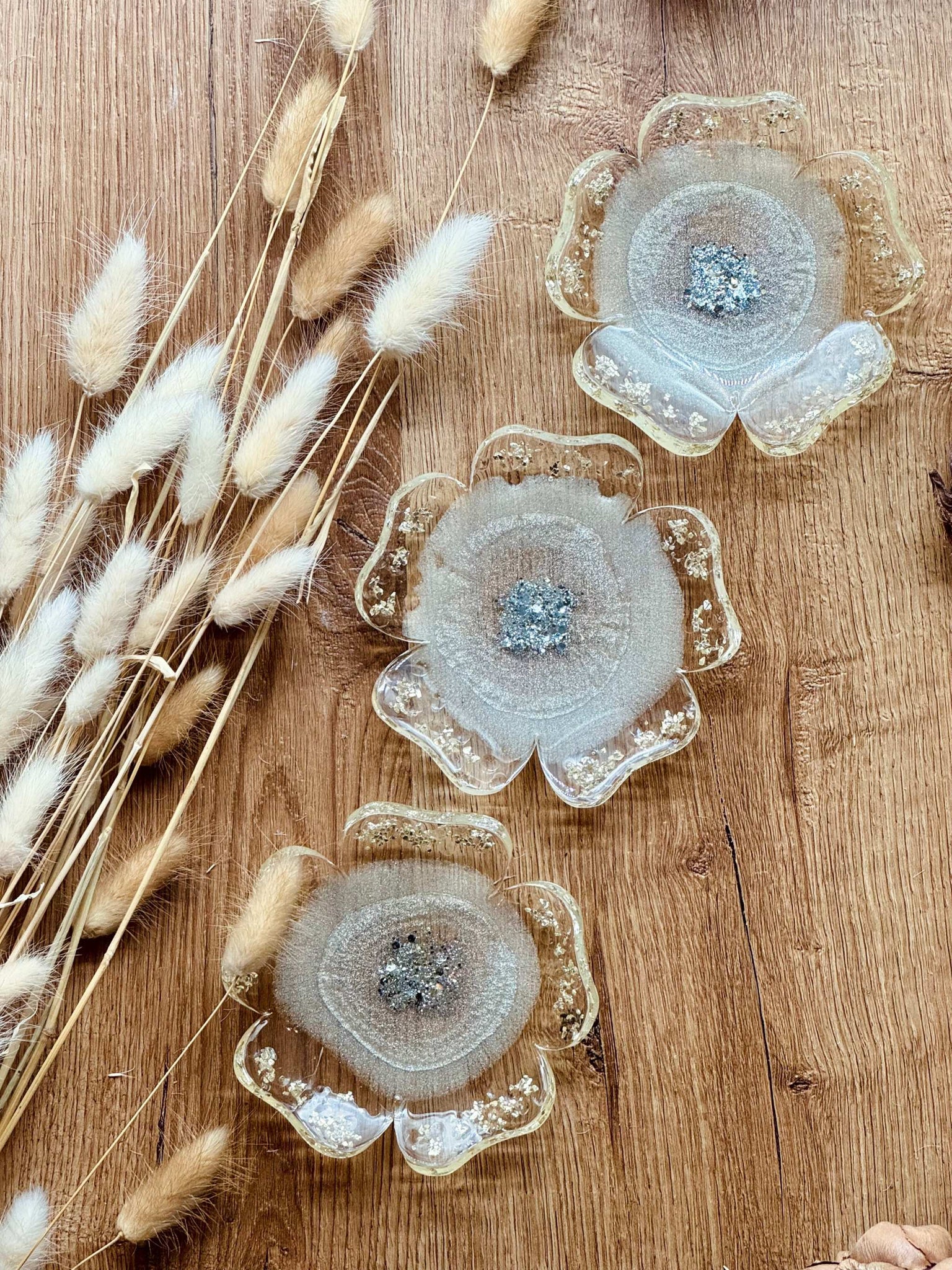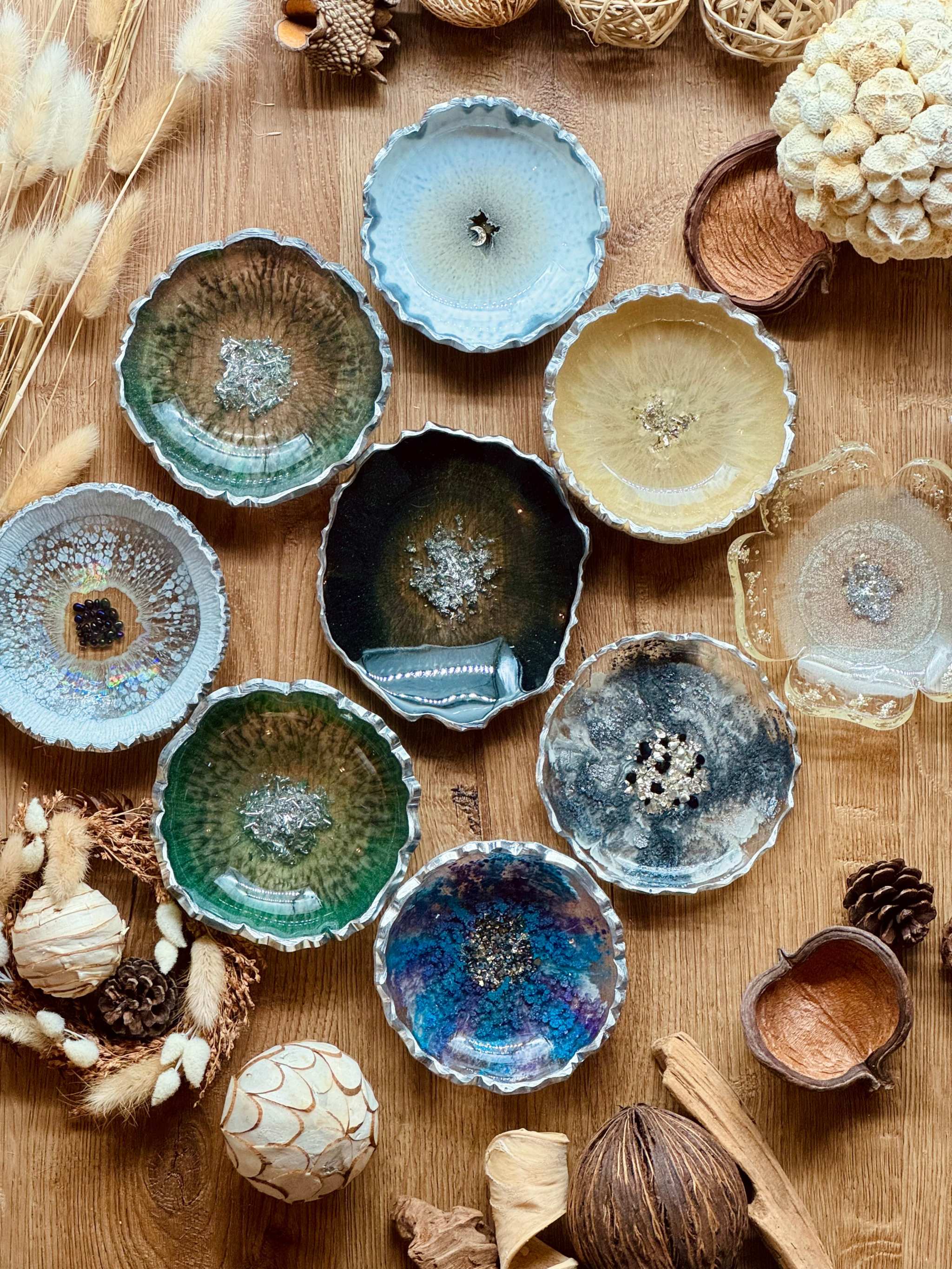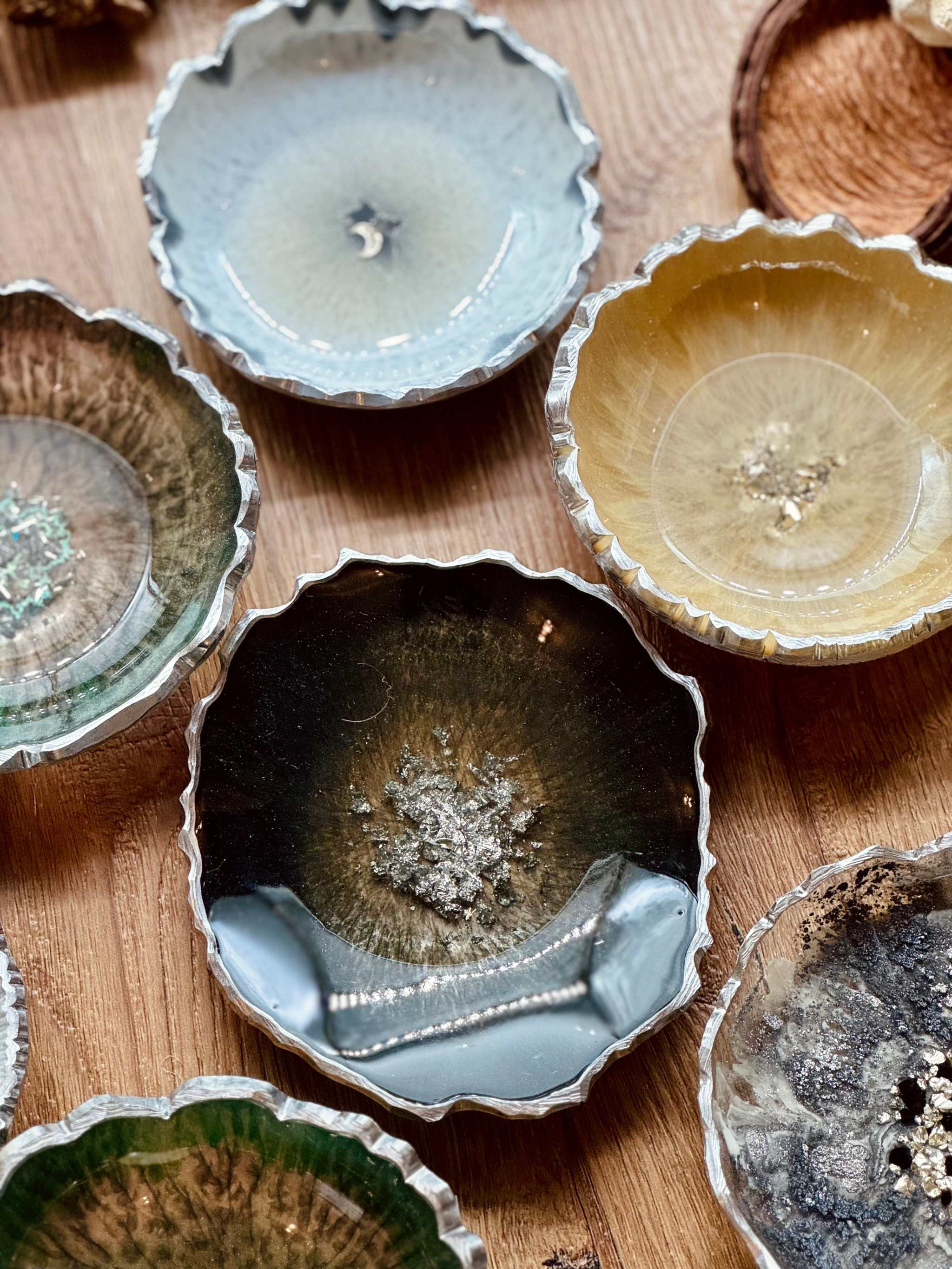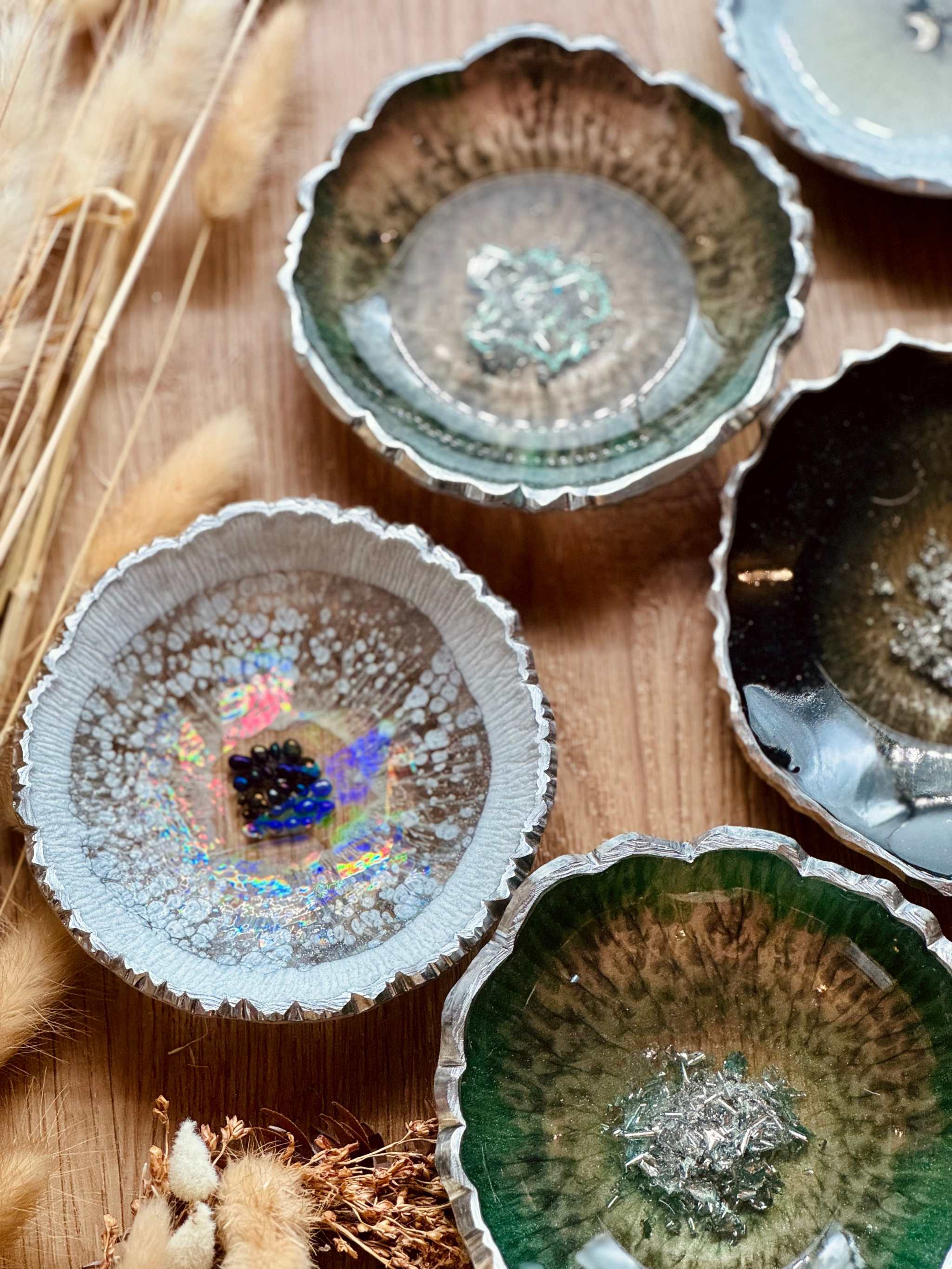 Schmuckschalen aus Resin in verschiedenen Farben mit Silber