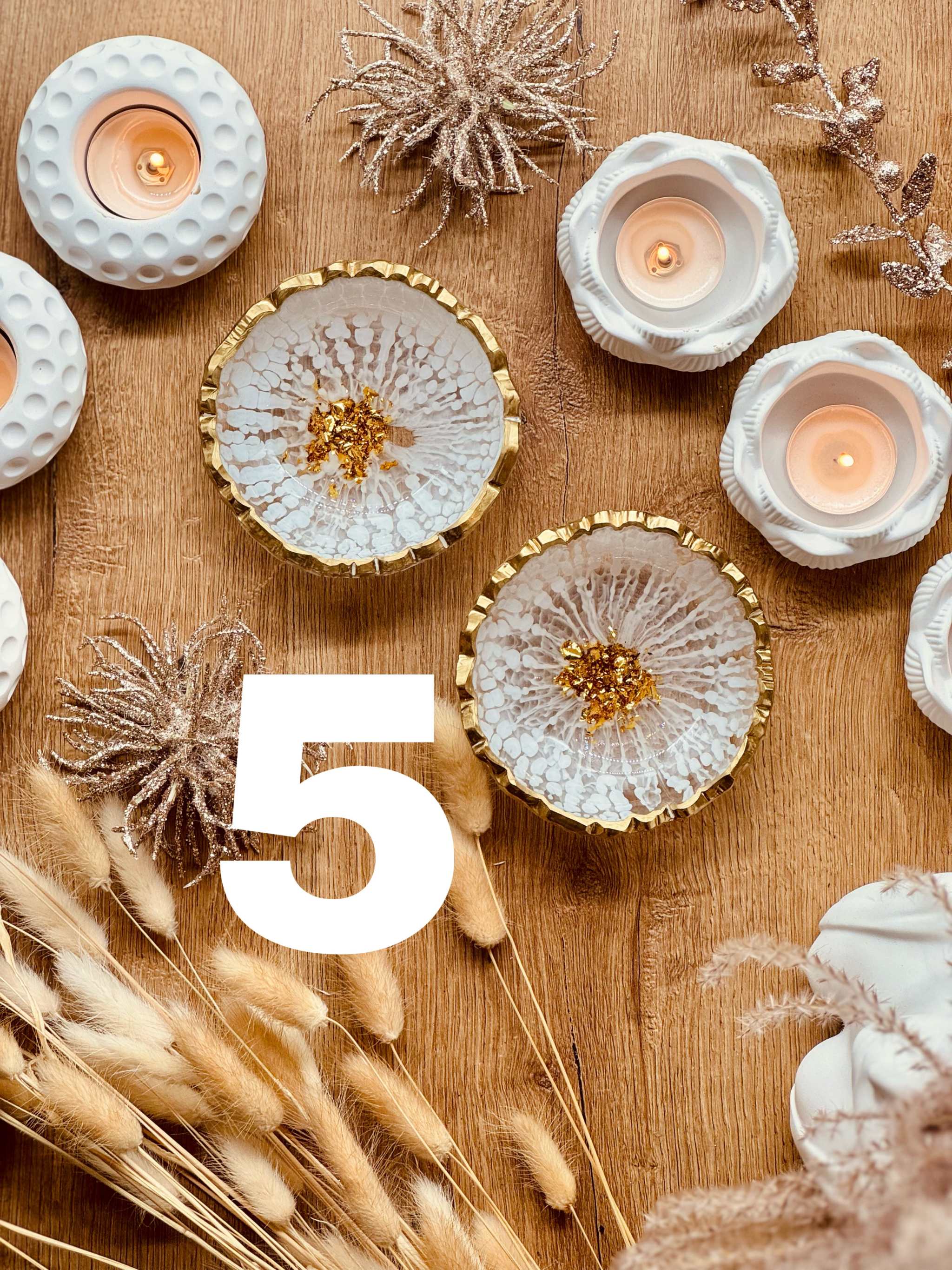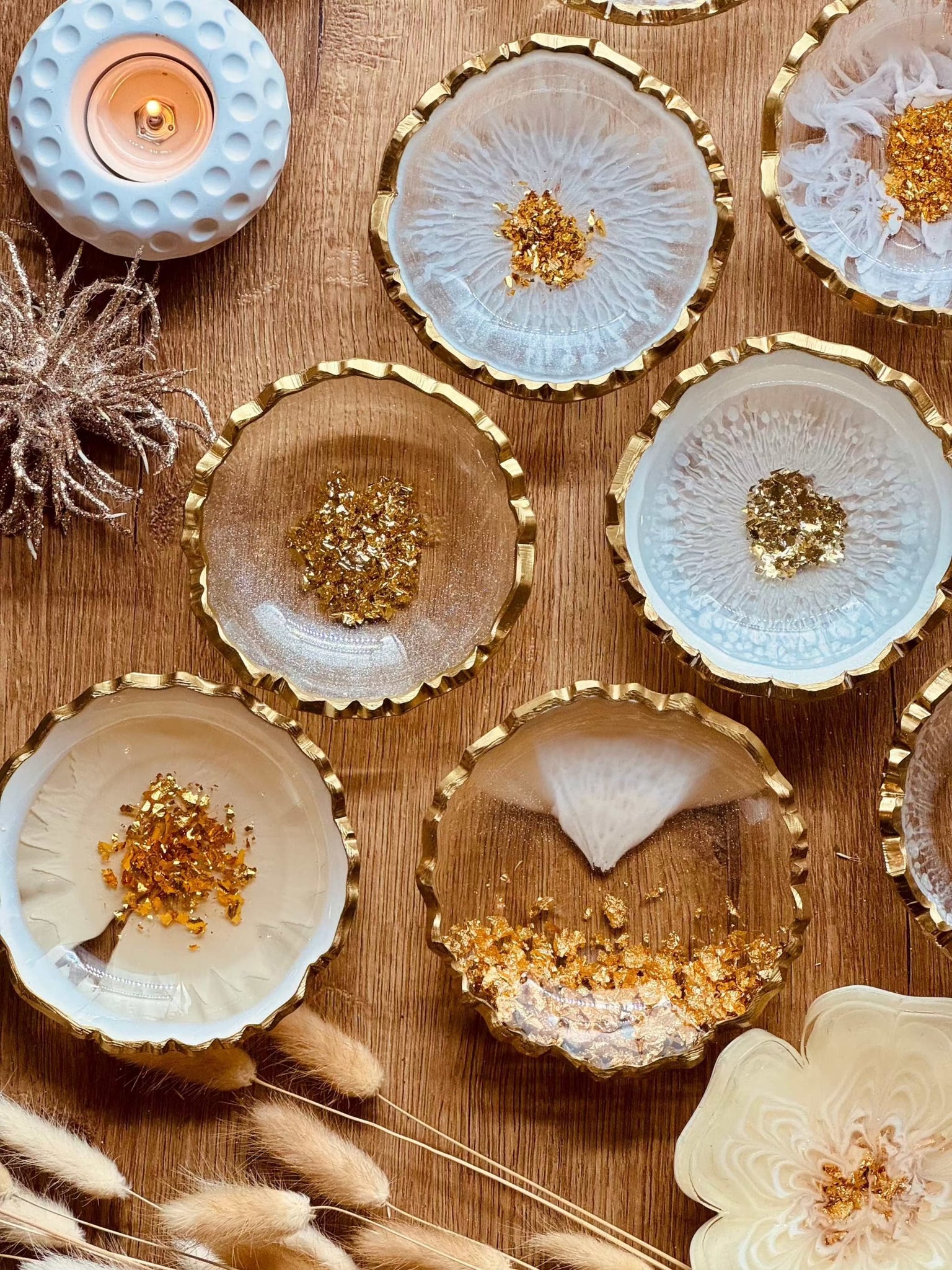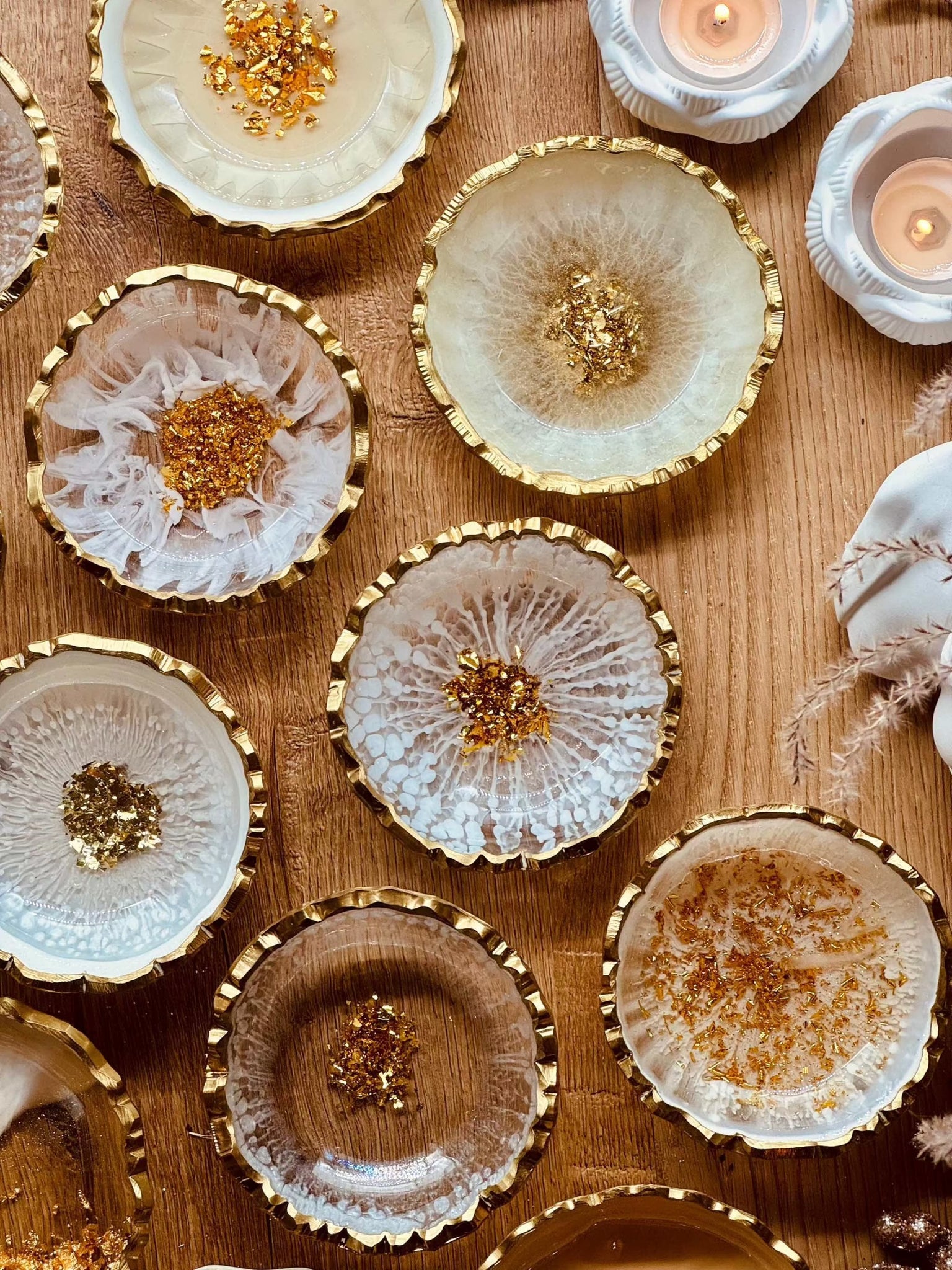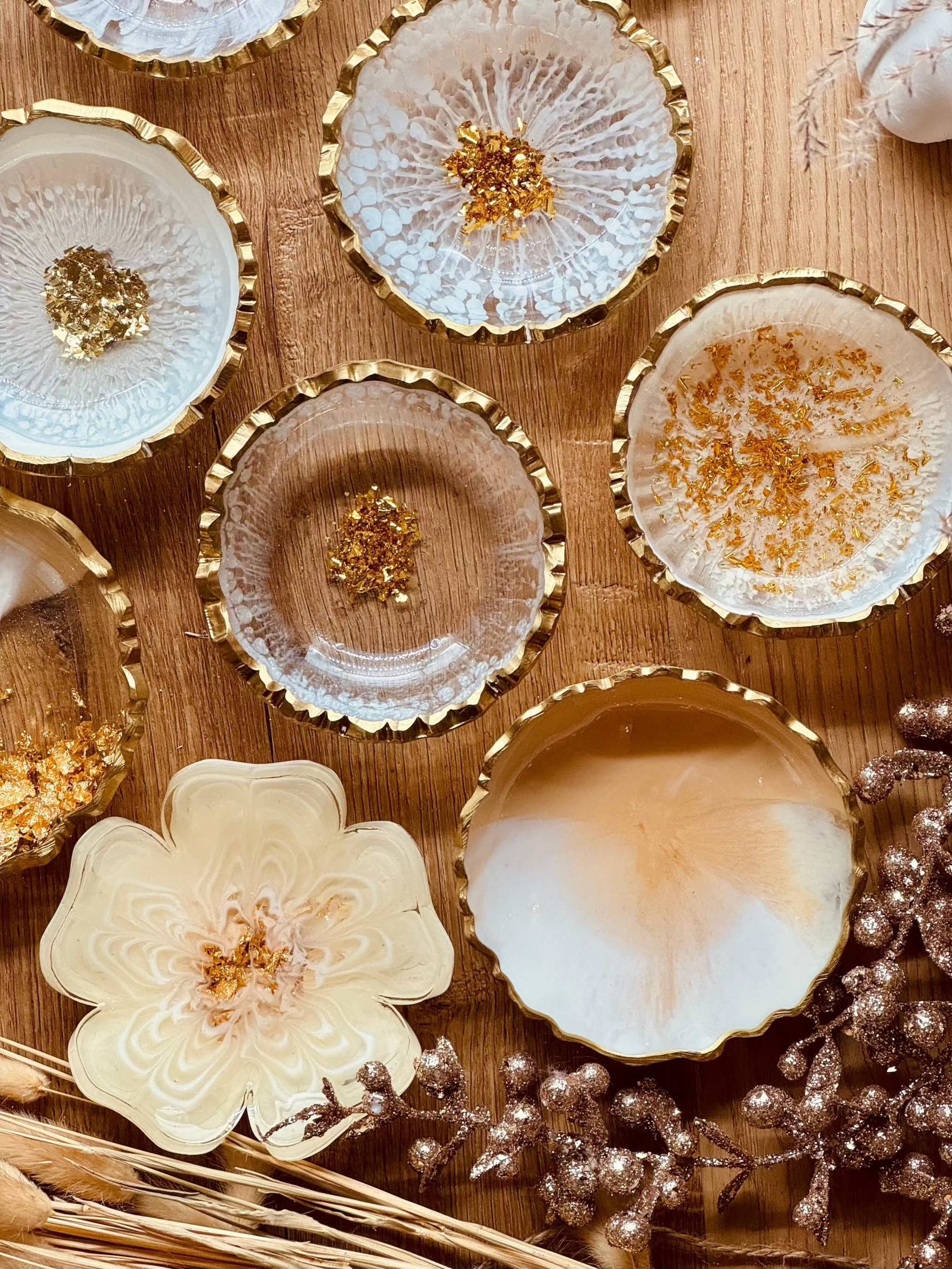 Schmuckschalen aus Resin in Weiß mit Gold