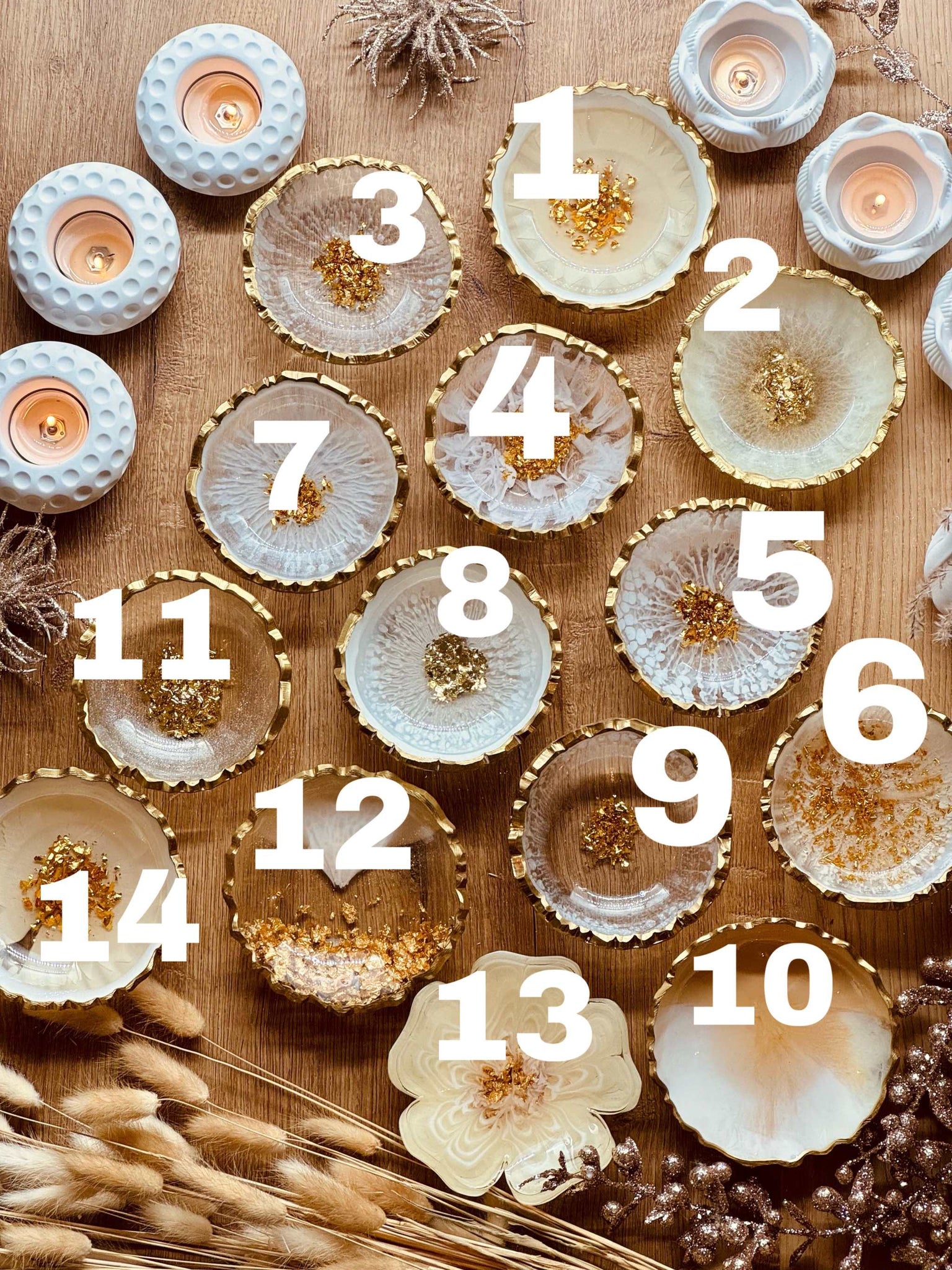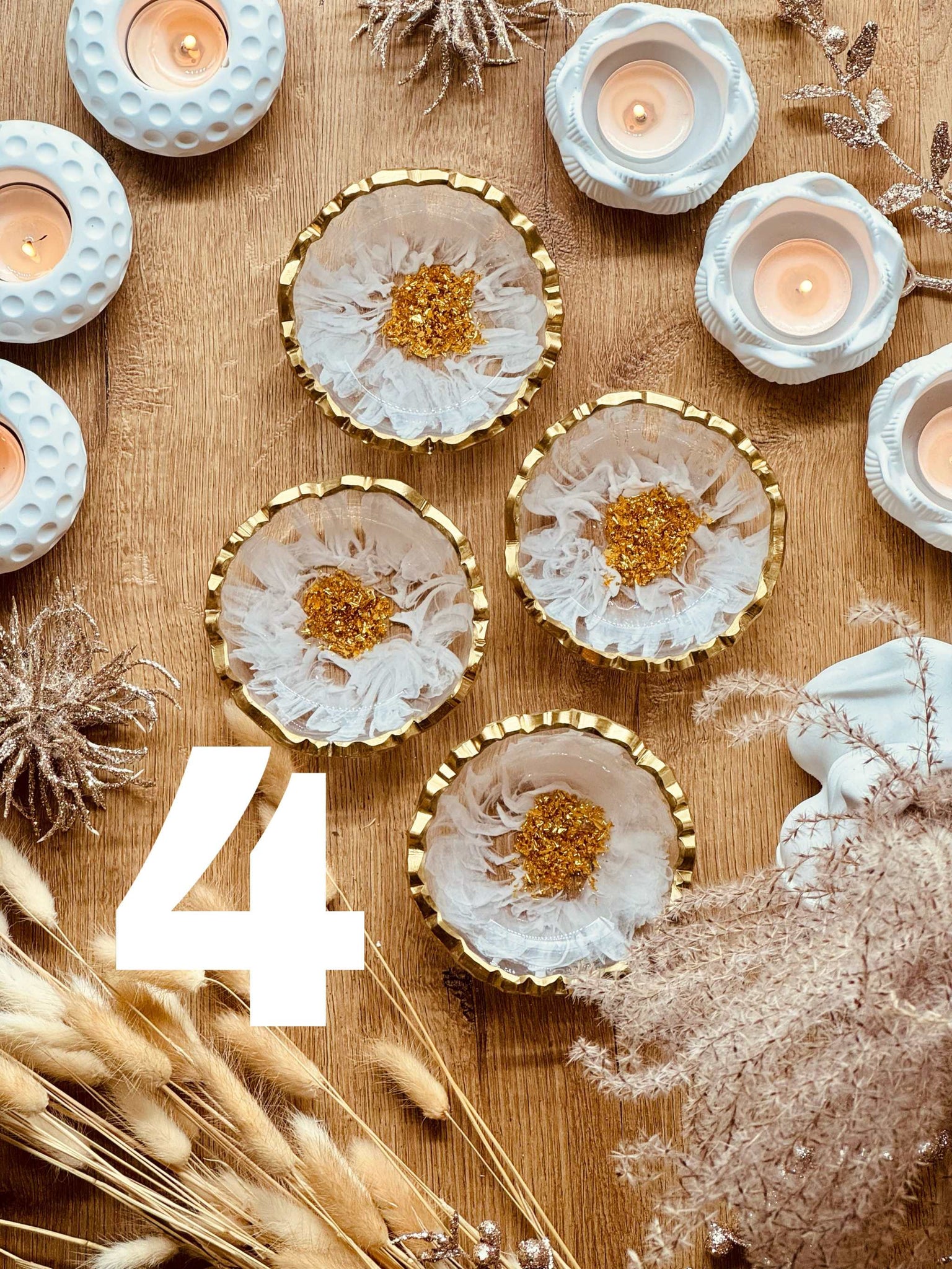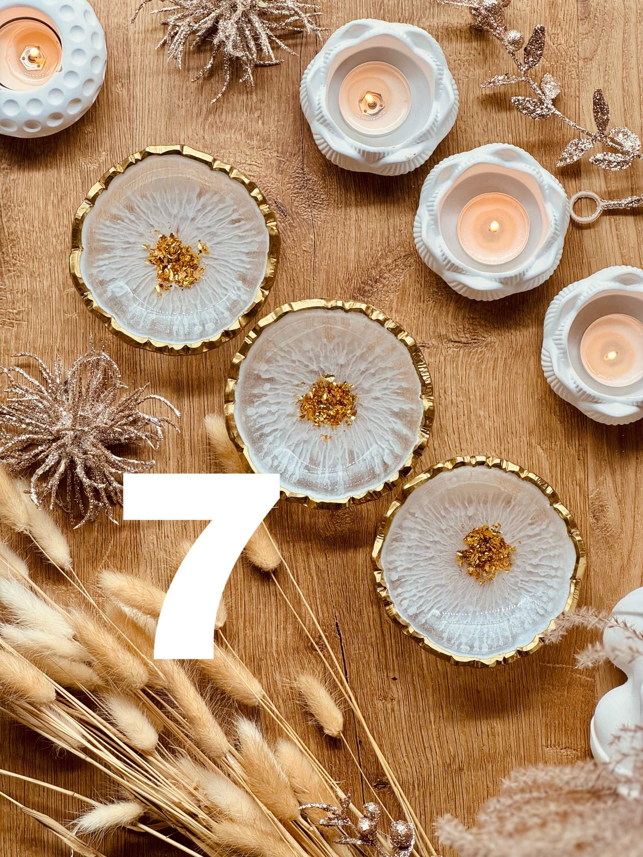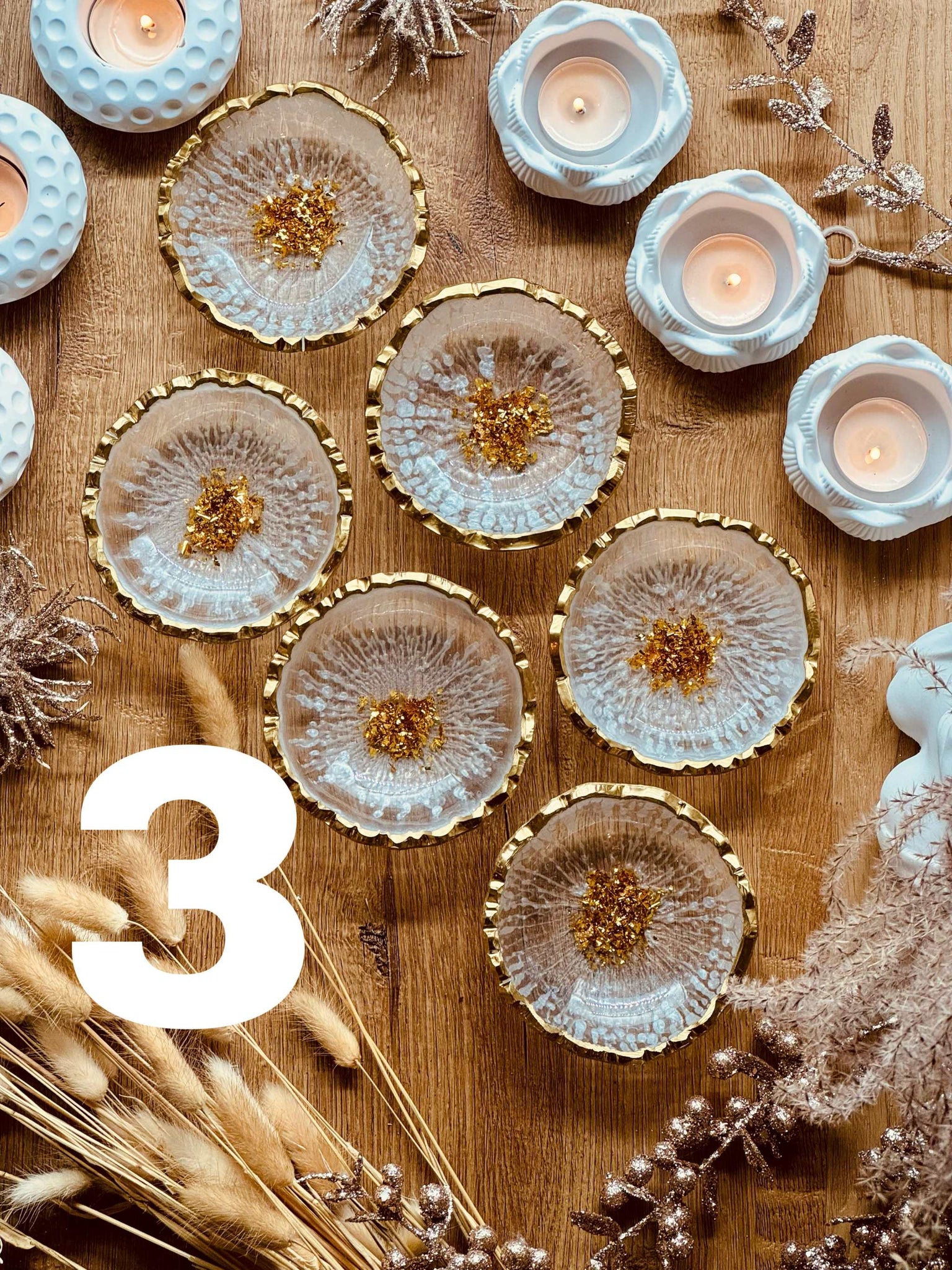 Schmuckschalen aus Resin in Weiß mit Gold