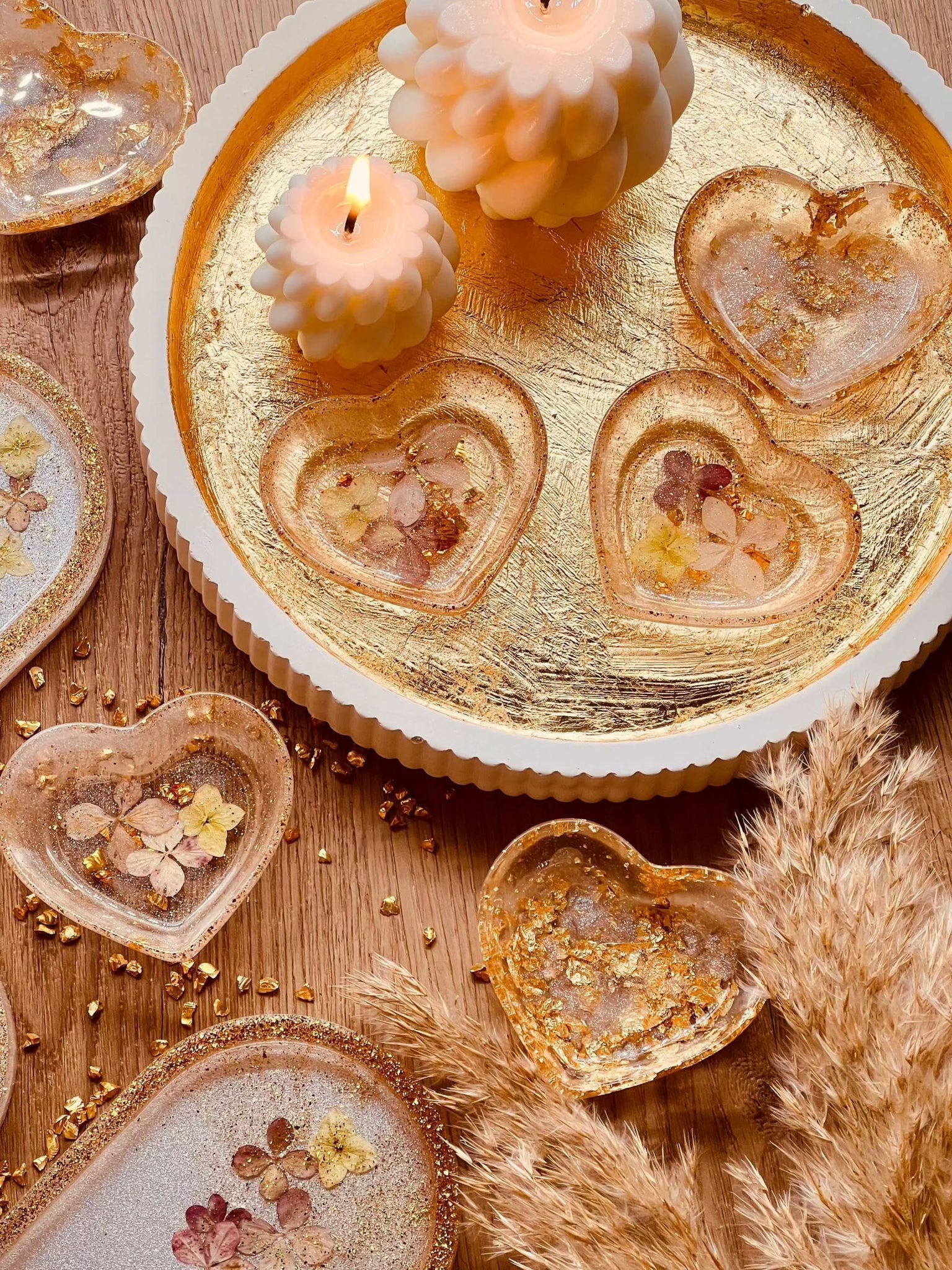 Schmuckschalen aus Resin in Weiß mit Gold und Blumen
