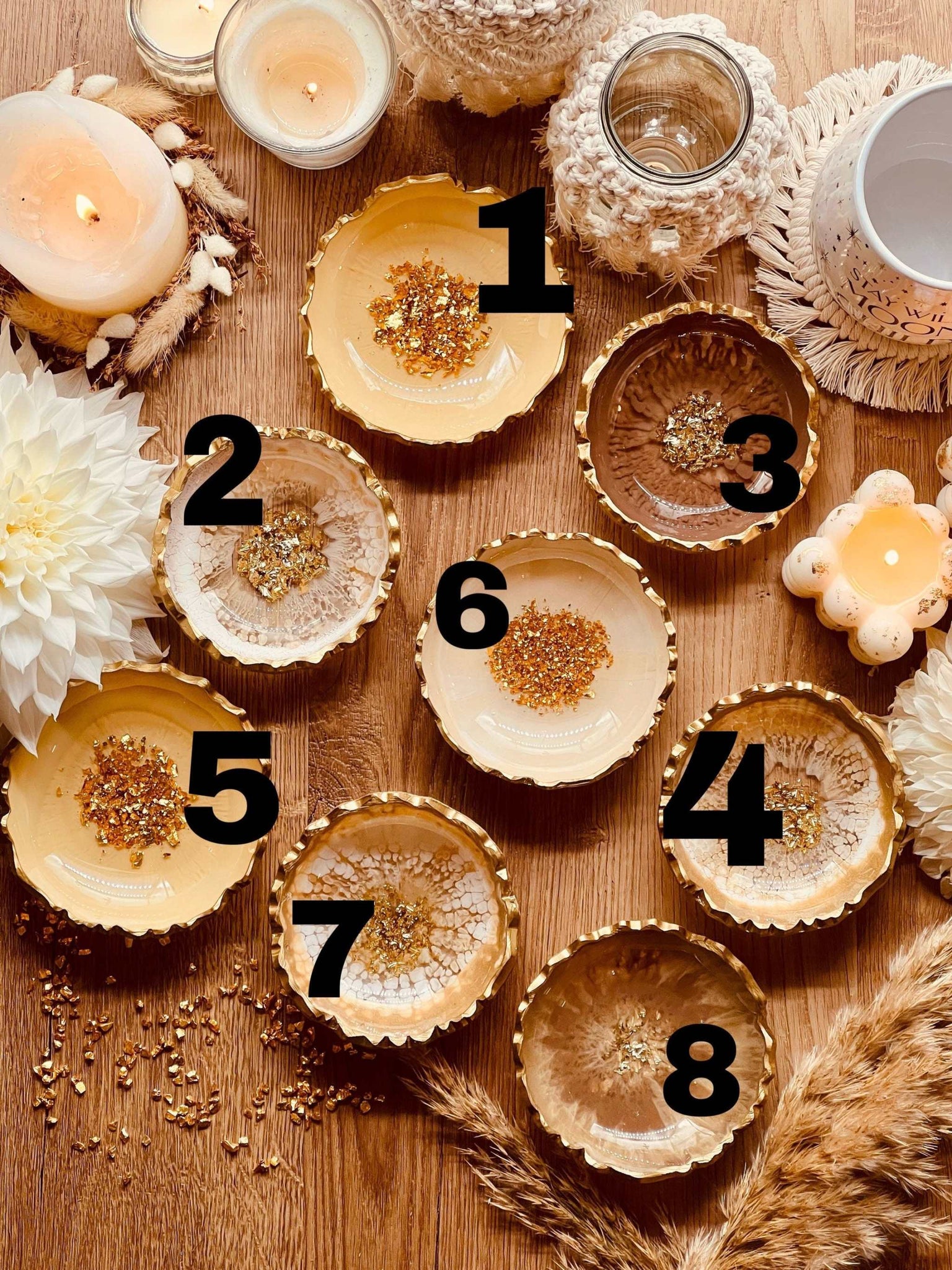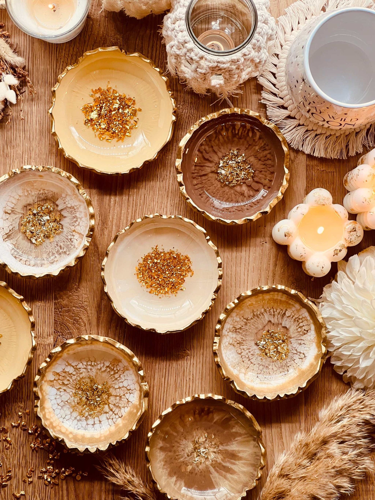 Schmuckschalen aus Resin in Beige mit Gold