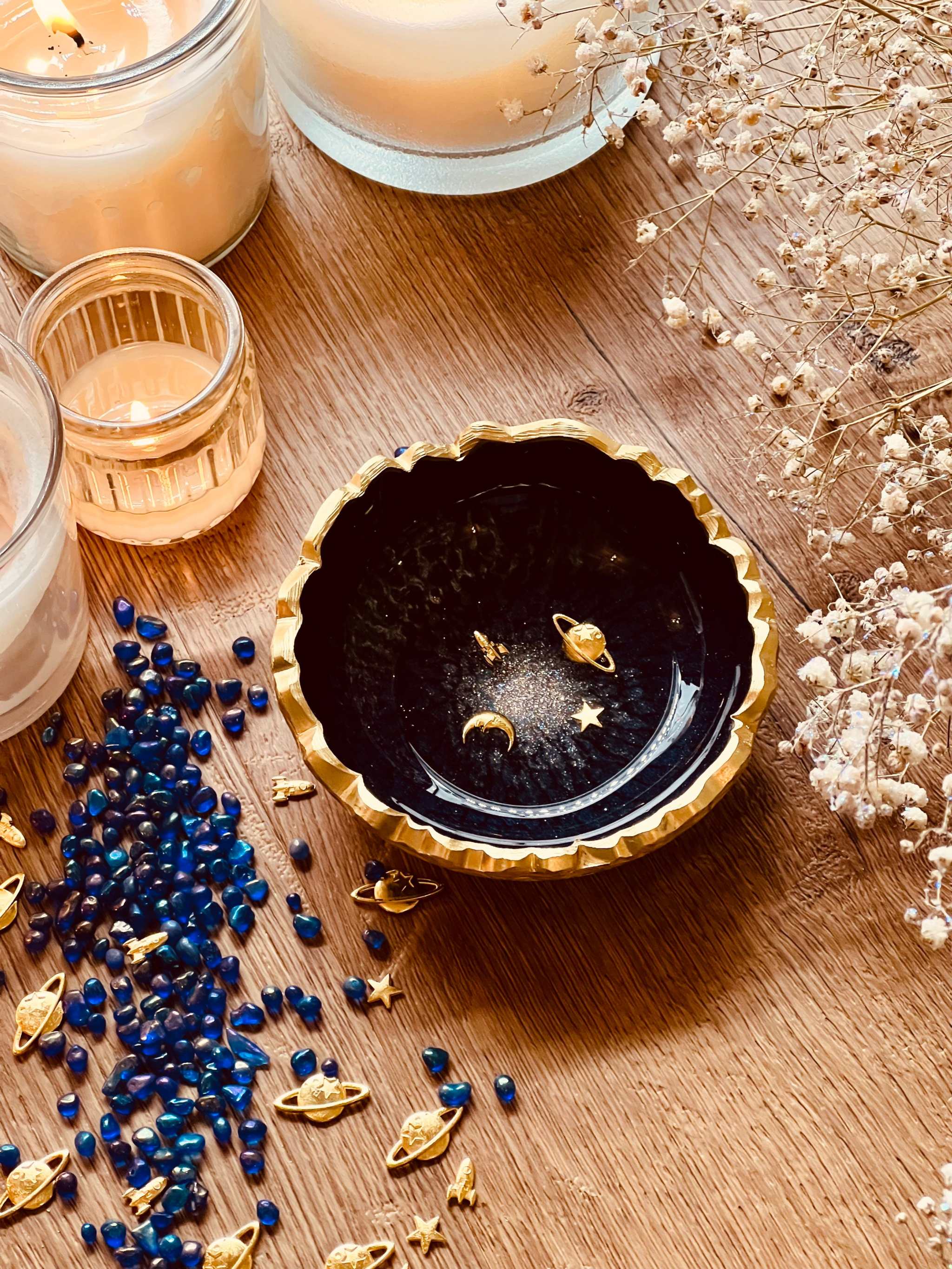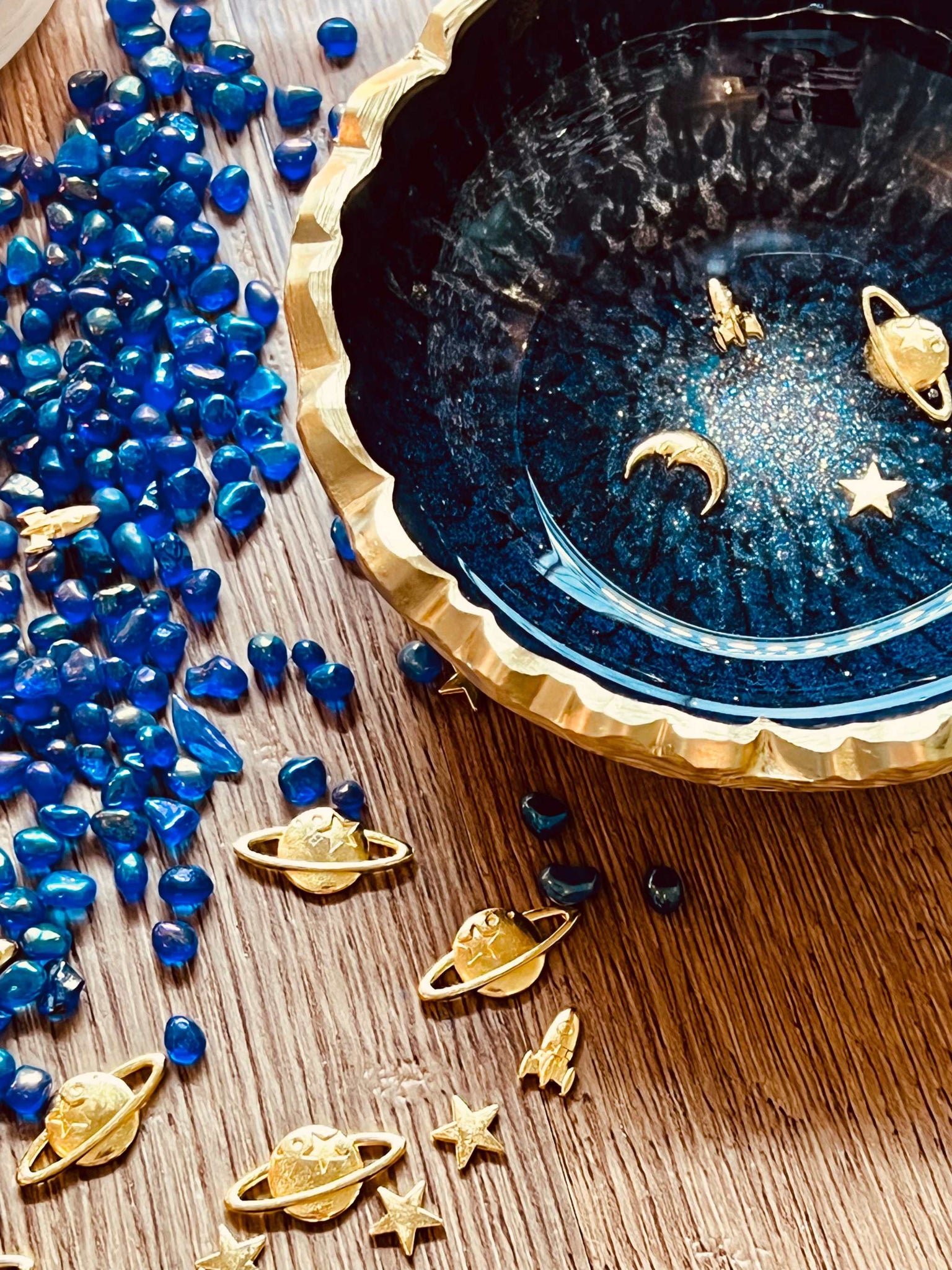 Schmuckschalen aus Resin in Dunkelblau mit Gold im Galaxy Design