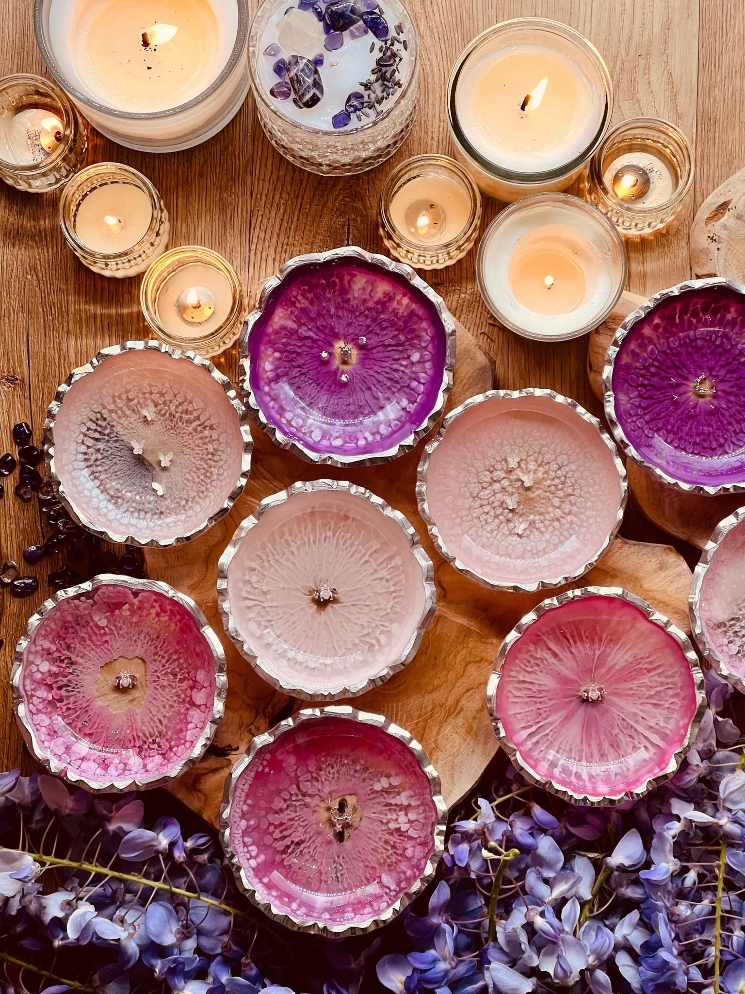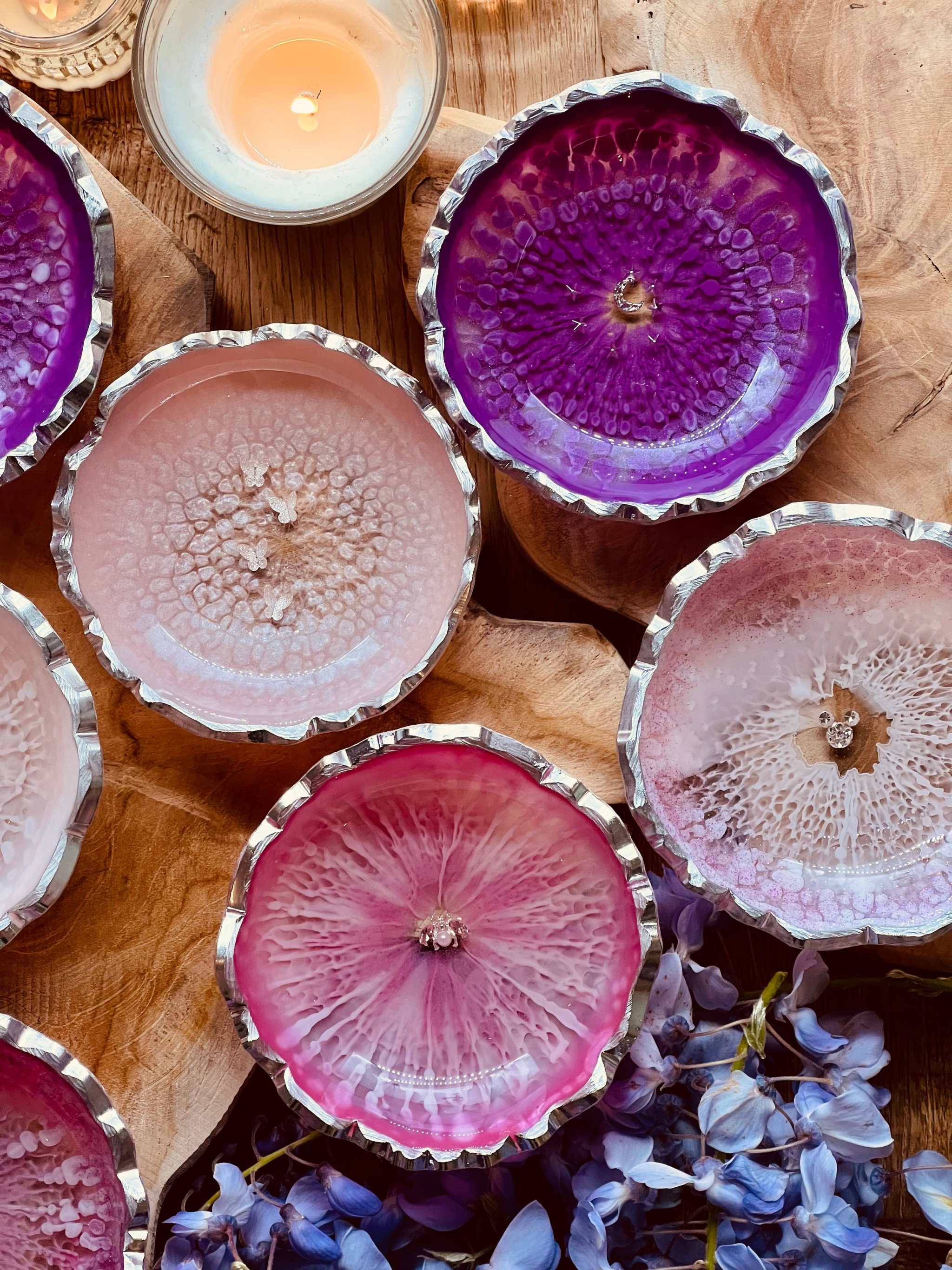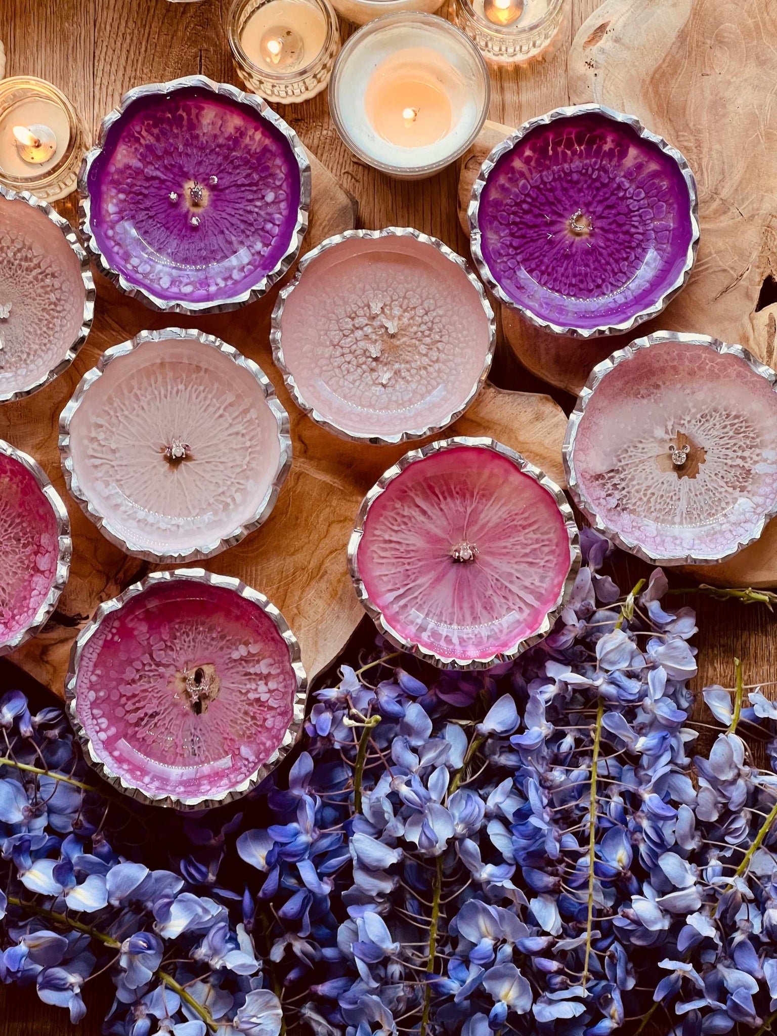 Schmuckschalen aus Resin in Pinktönen mit Silber