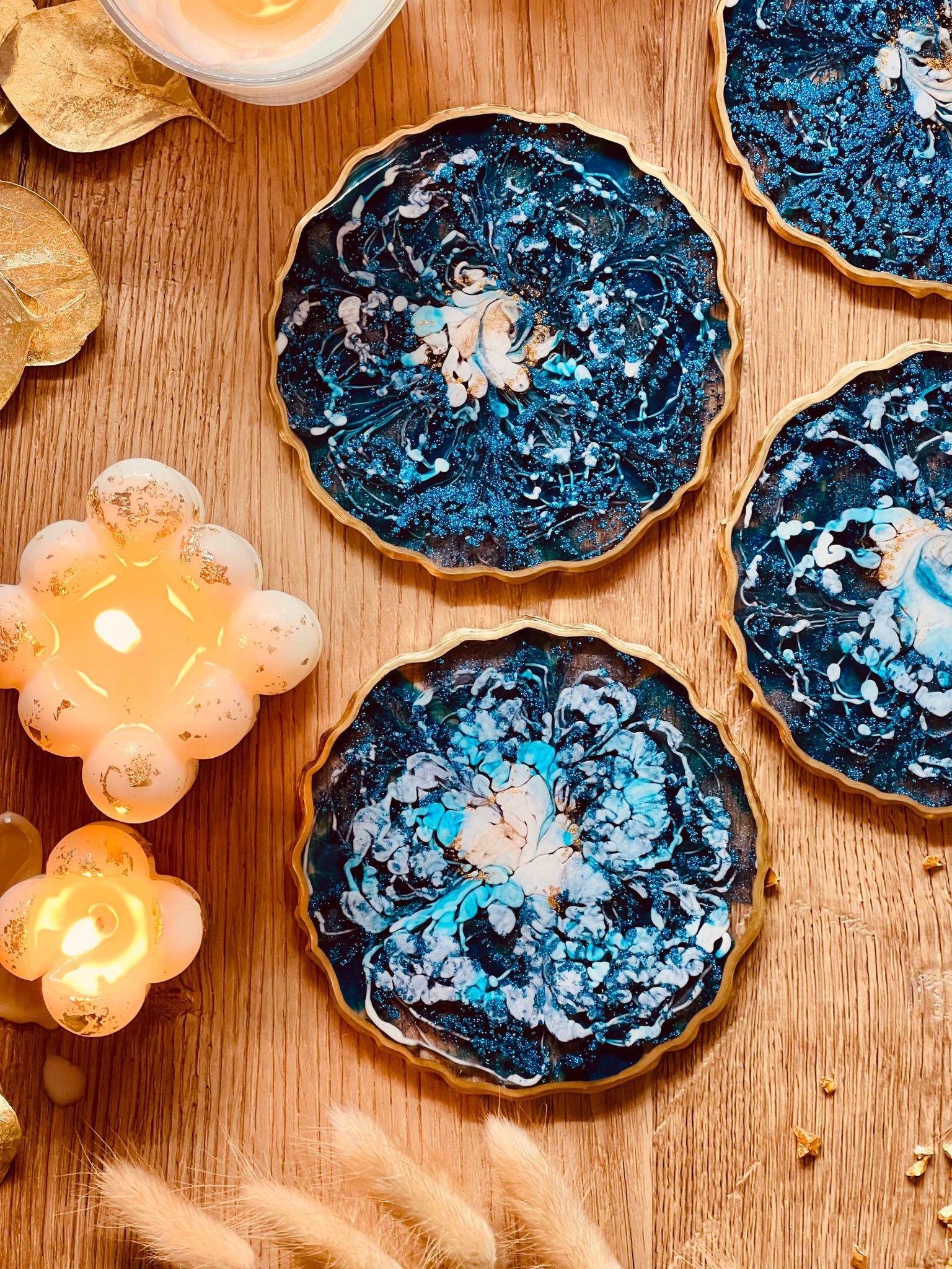 4 Untersetzer aus Resin in Blau mit Gold
