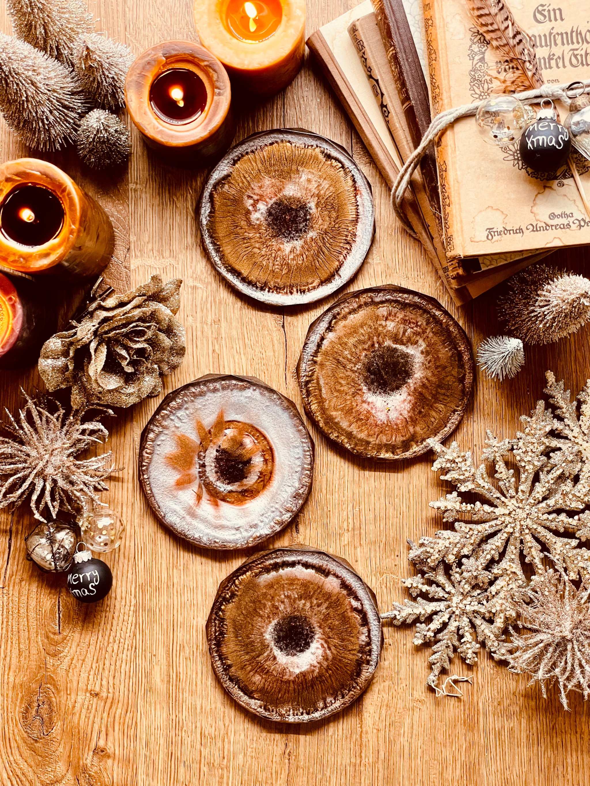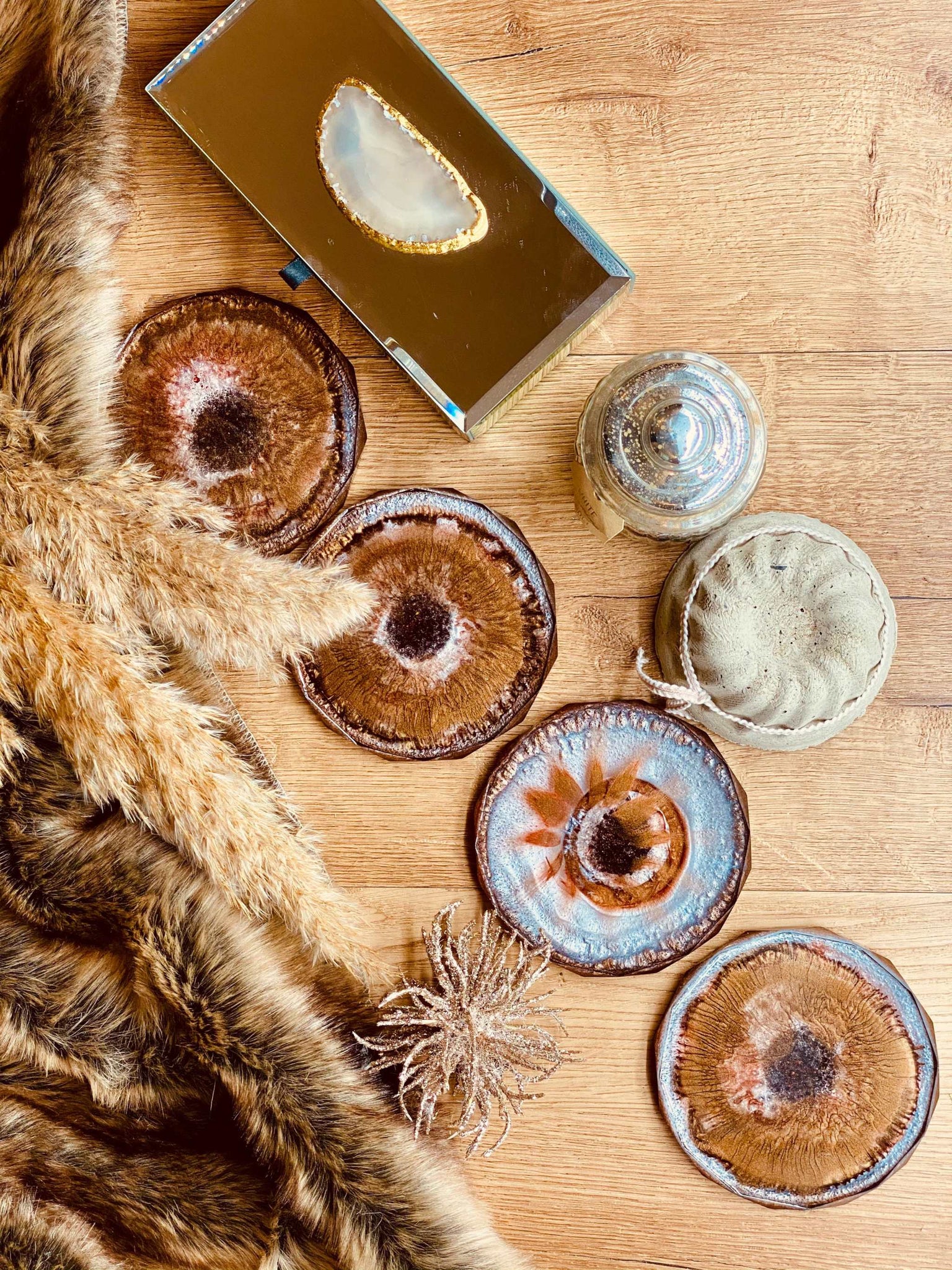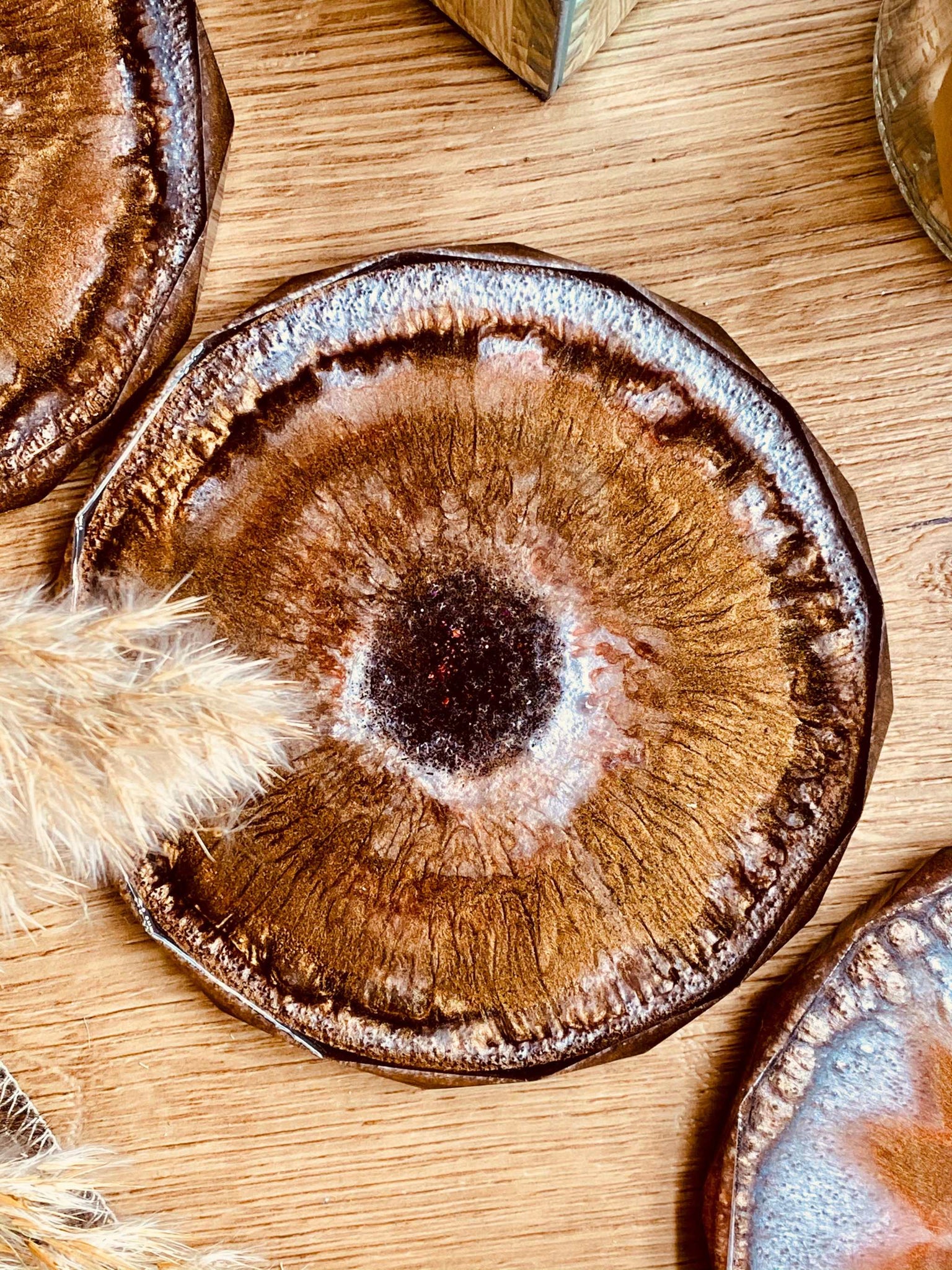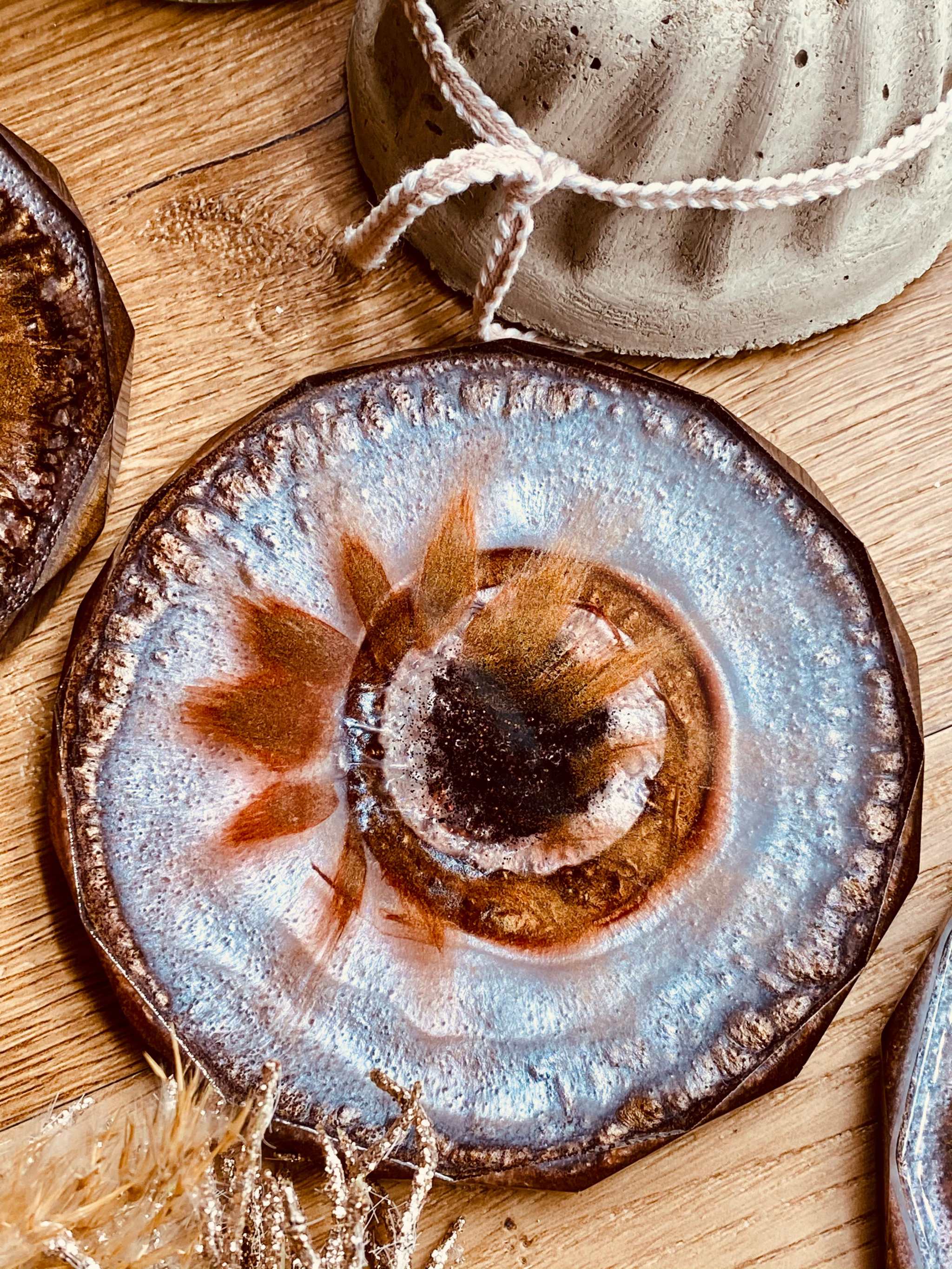 Handgemachte Untersetzer aus Resin in Erdtönen im 4-teiligen Set. Alle meine Artikel sind einzigartige Unikate. Diese Untersetzer sind die perfekte Dekoration auf jedem Tisch und ein individuelles Geschenk für deine Liebsten. Maße: Durchmesser ca. 12cm.