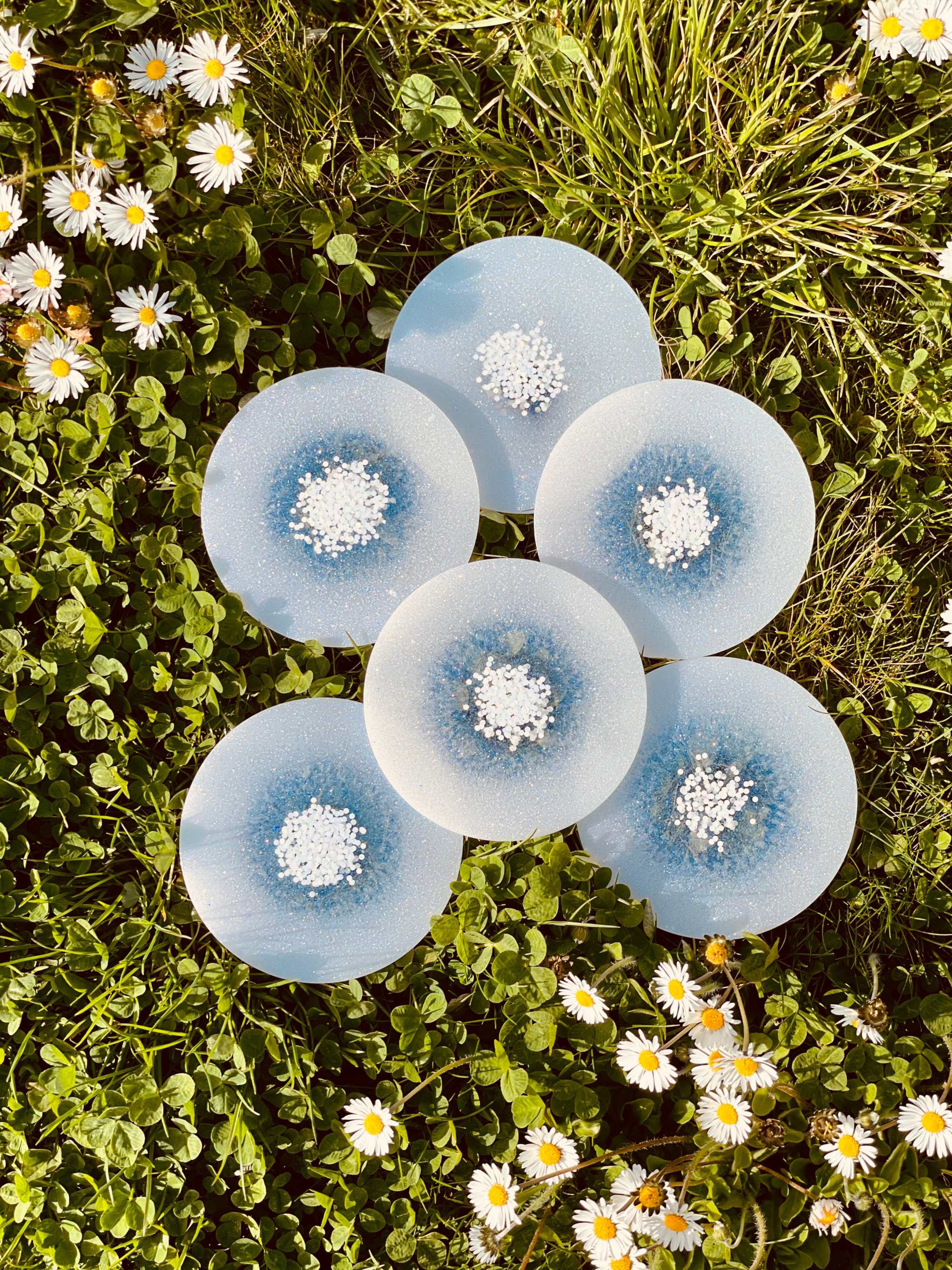 6 Untersetzer aus Resin in Weiss mit Glitzer