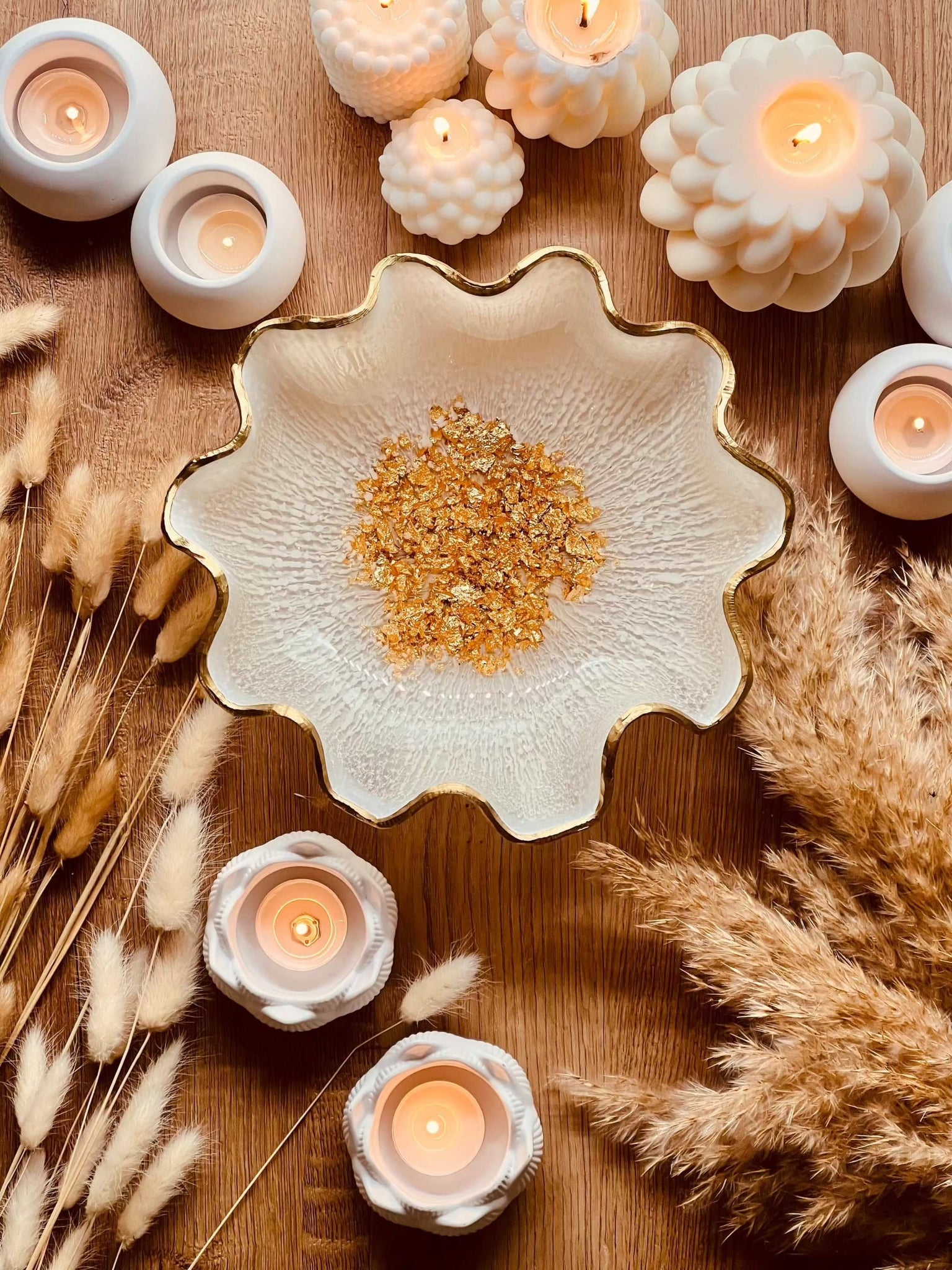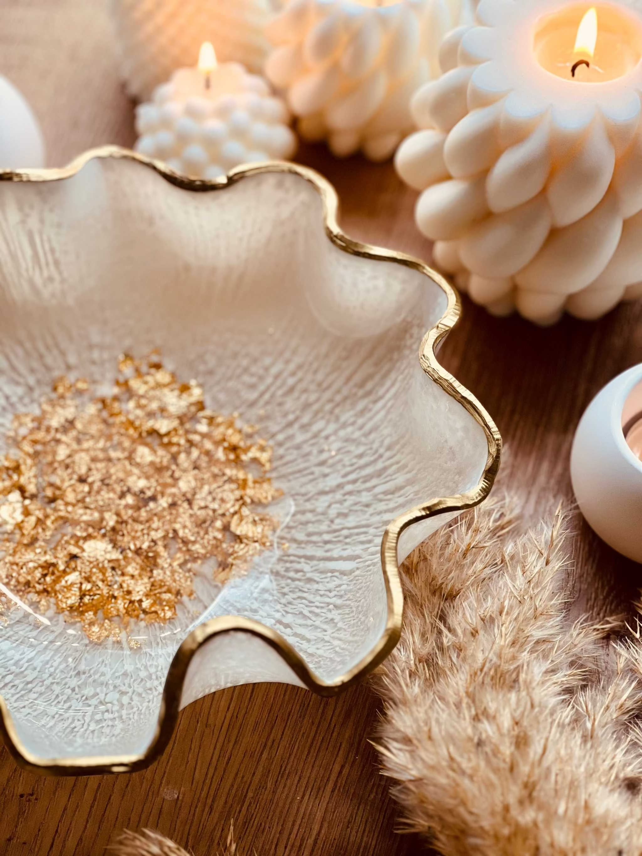 Handmade resin bowls in white with golden details. All of my items are one-of-a-kind. Bowls are the perfect decoration in every living and dining room and an individual gift for your loved ones. Dimensions: diameter approx. 25-28cm.