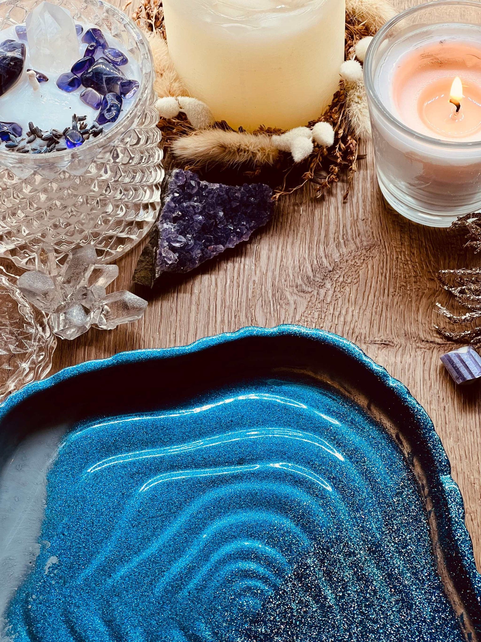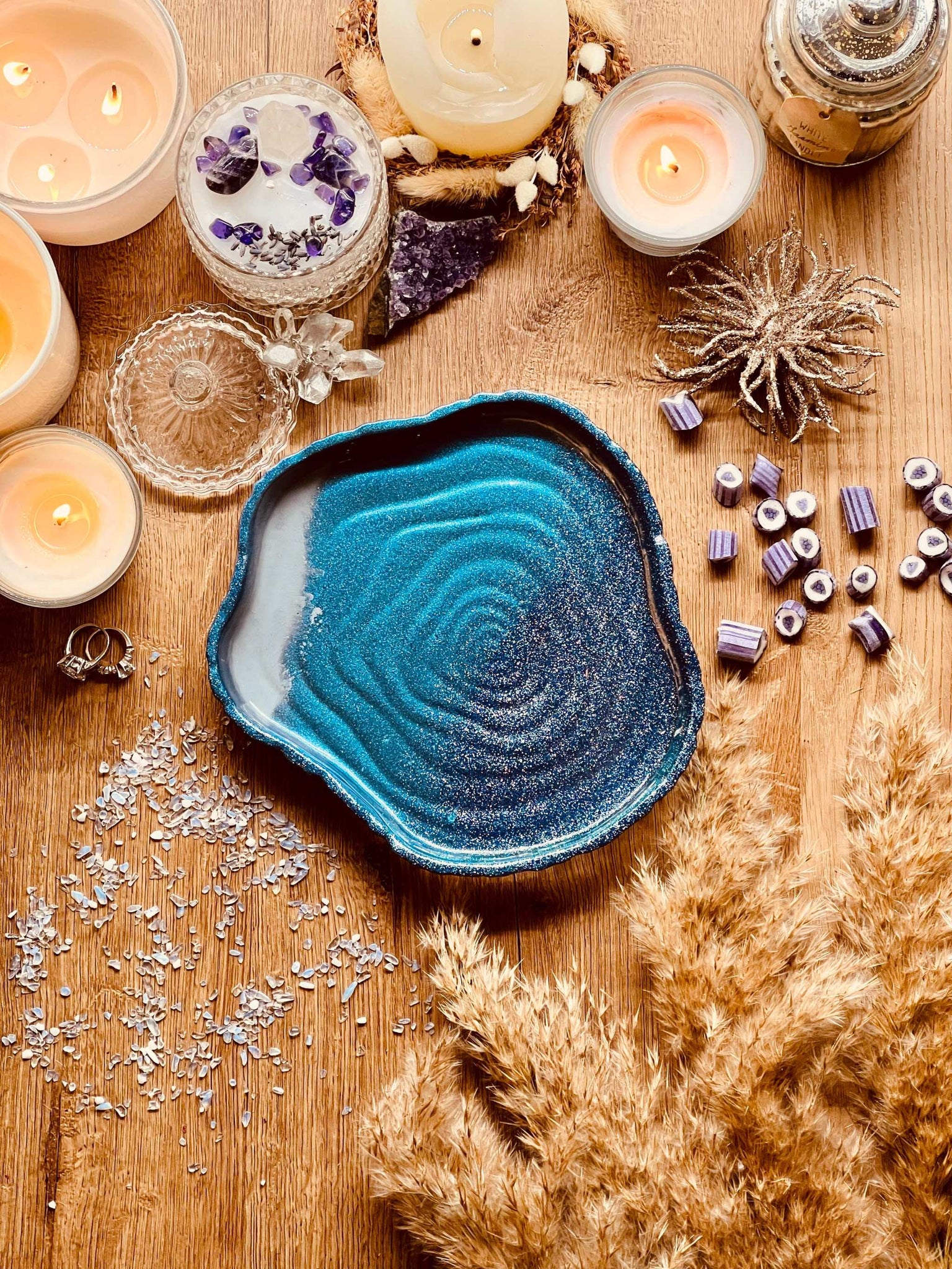 Handmade resin bowl in shades of blue. All of my items are one-of-a-kind. Bowls are the perfect decoration in every living and dining room and an individual gift for your loved ones. Dimensions: diameter approx. 20x18cm.