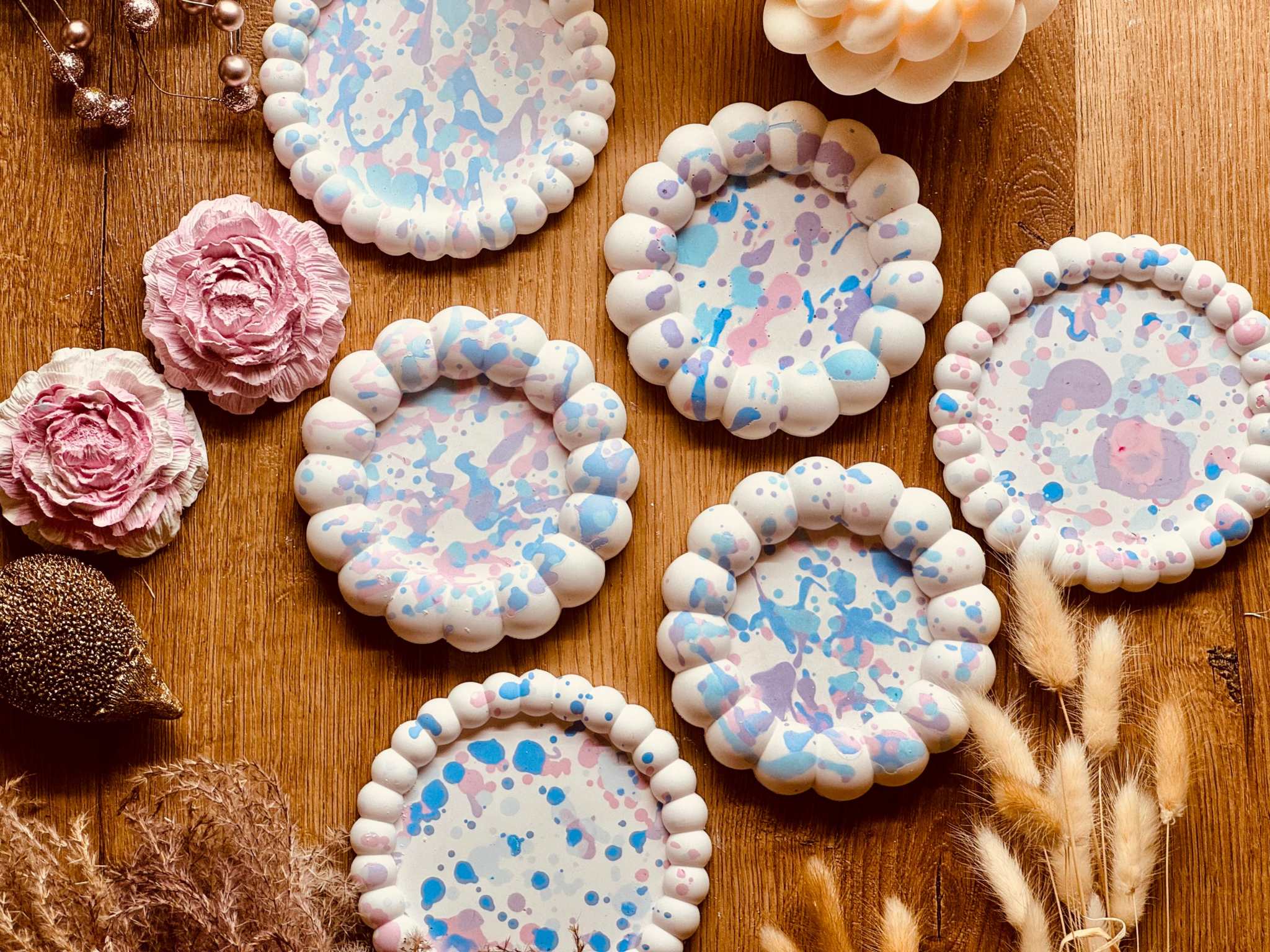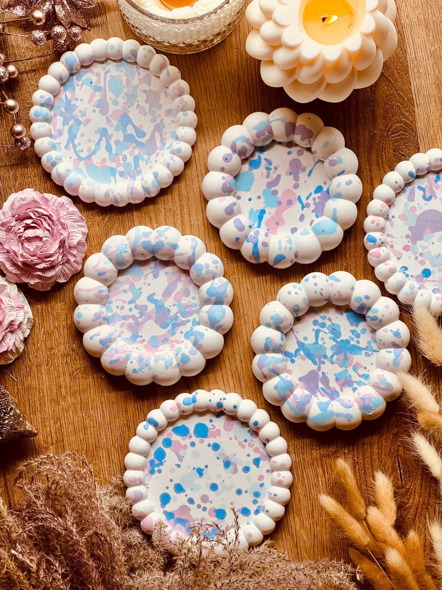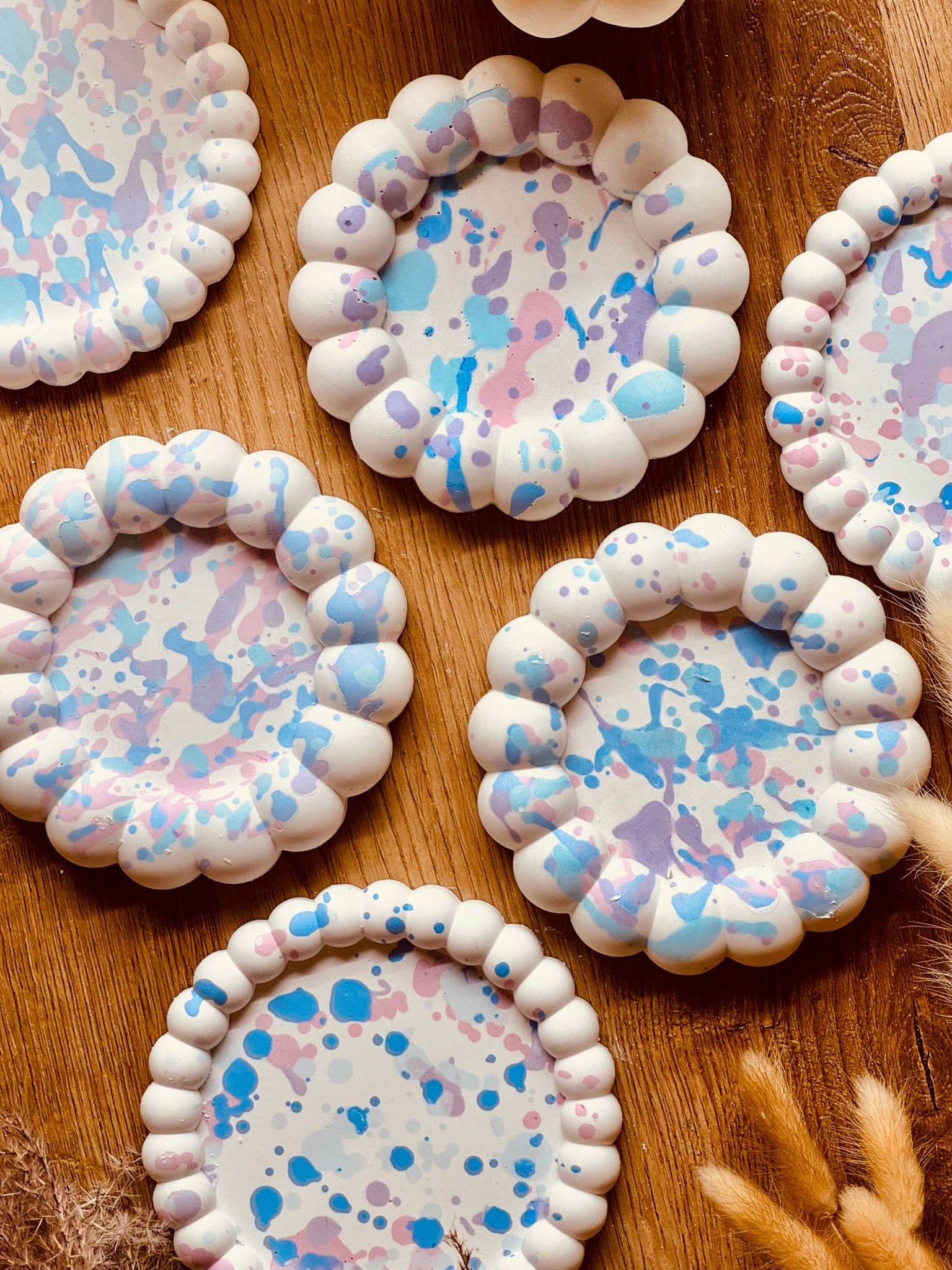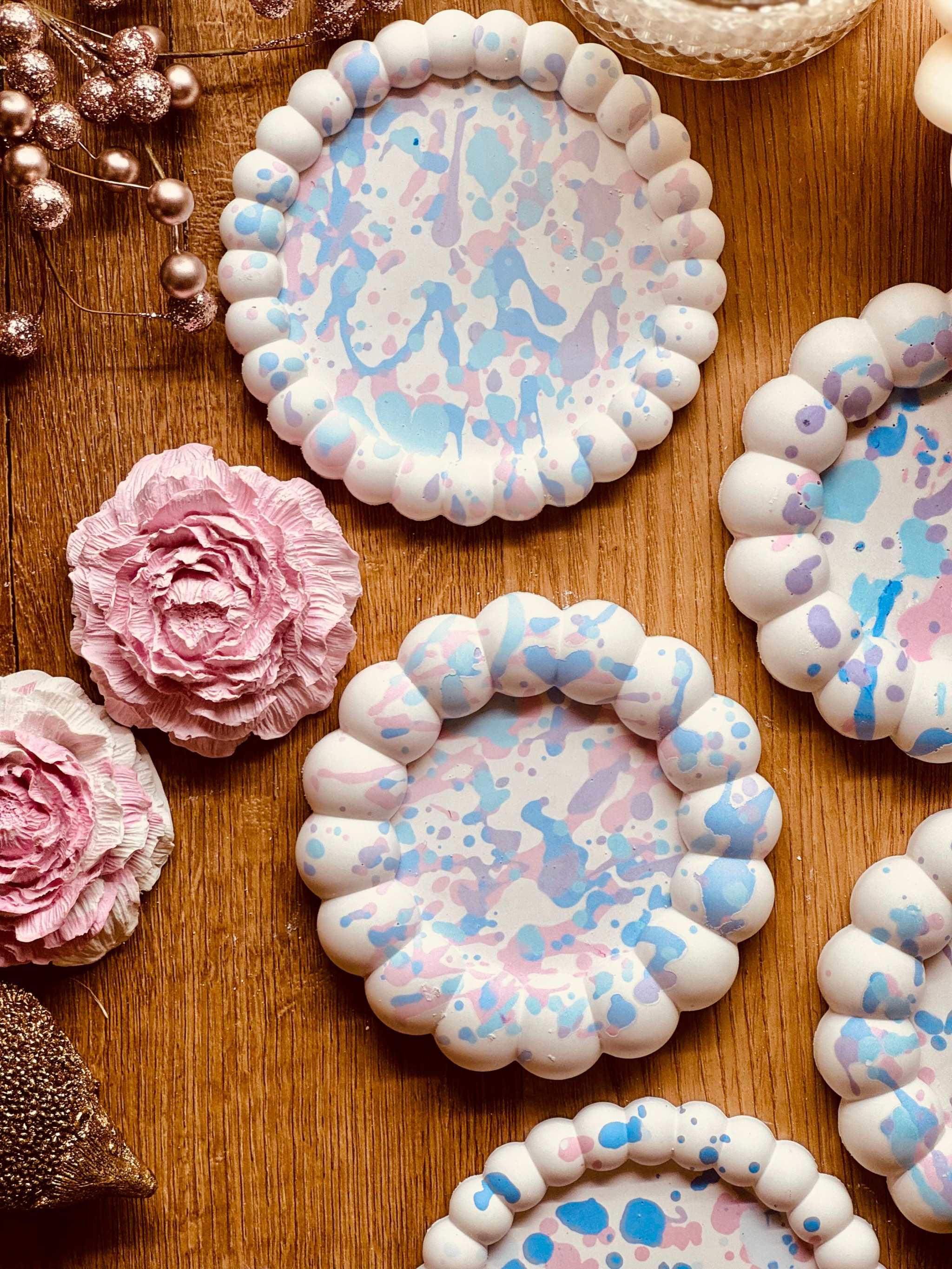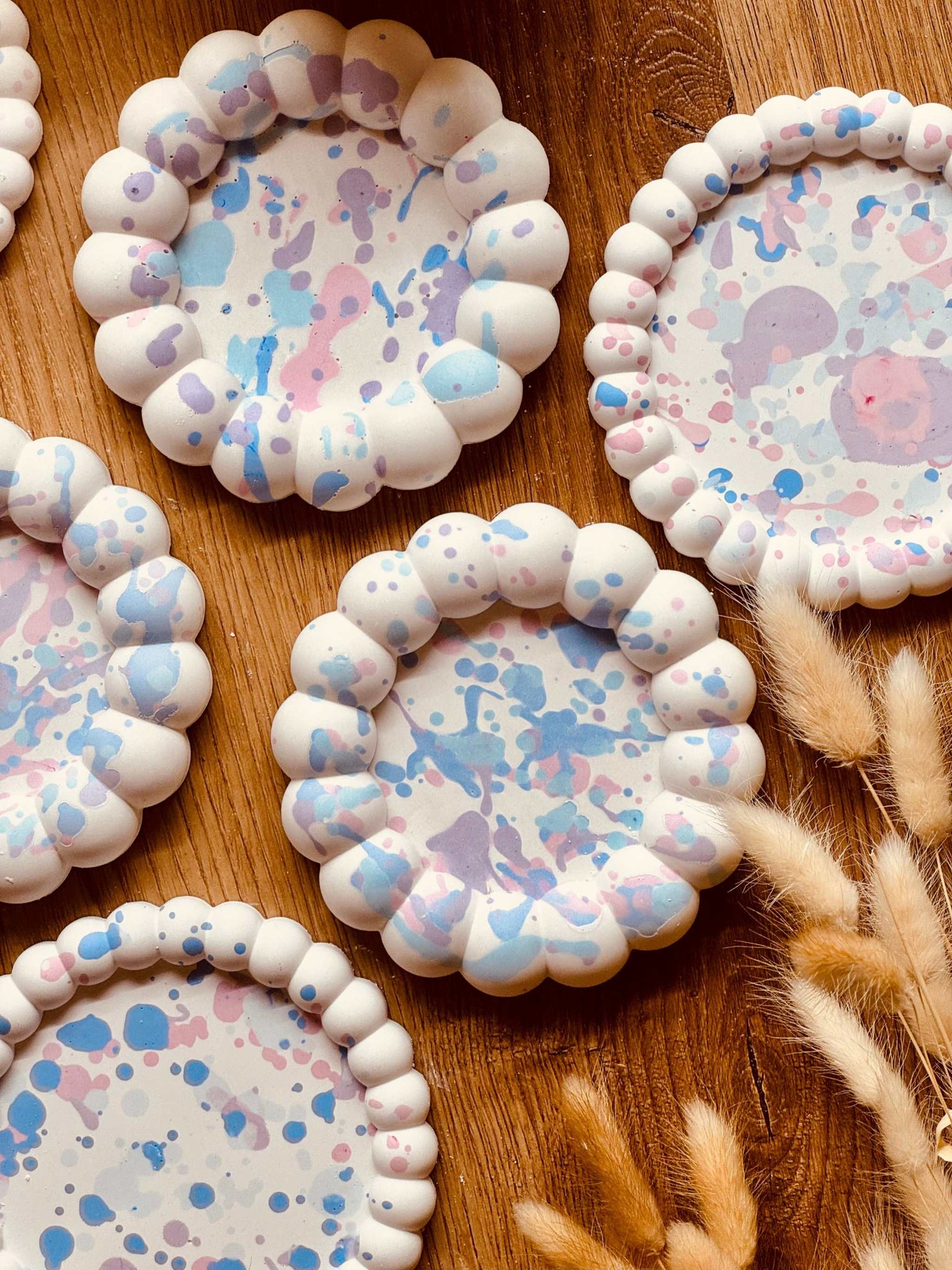 Cast ceramic coaster or candle tray Bubbles Pastel Dots
