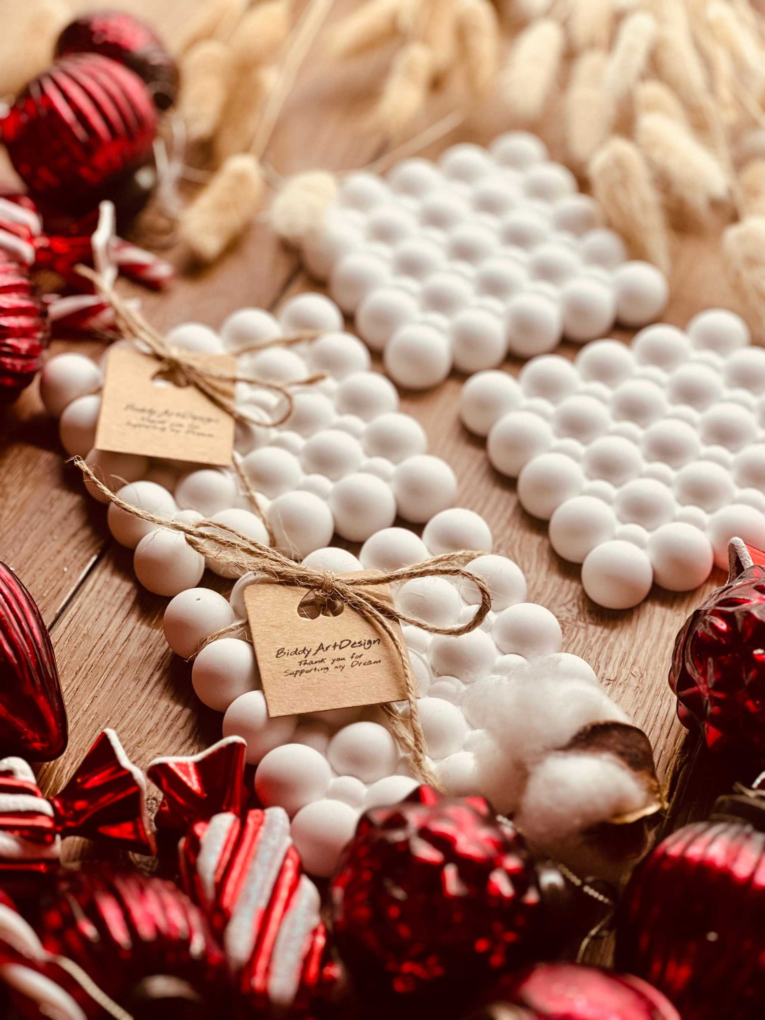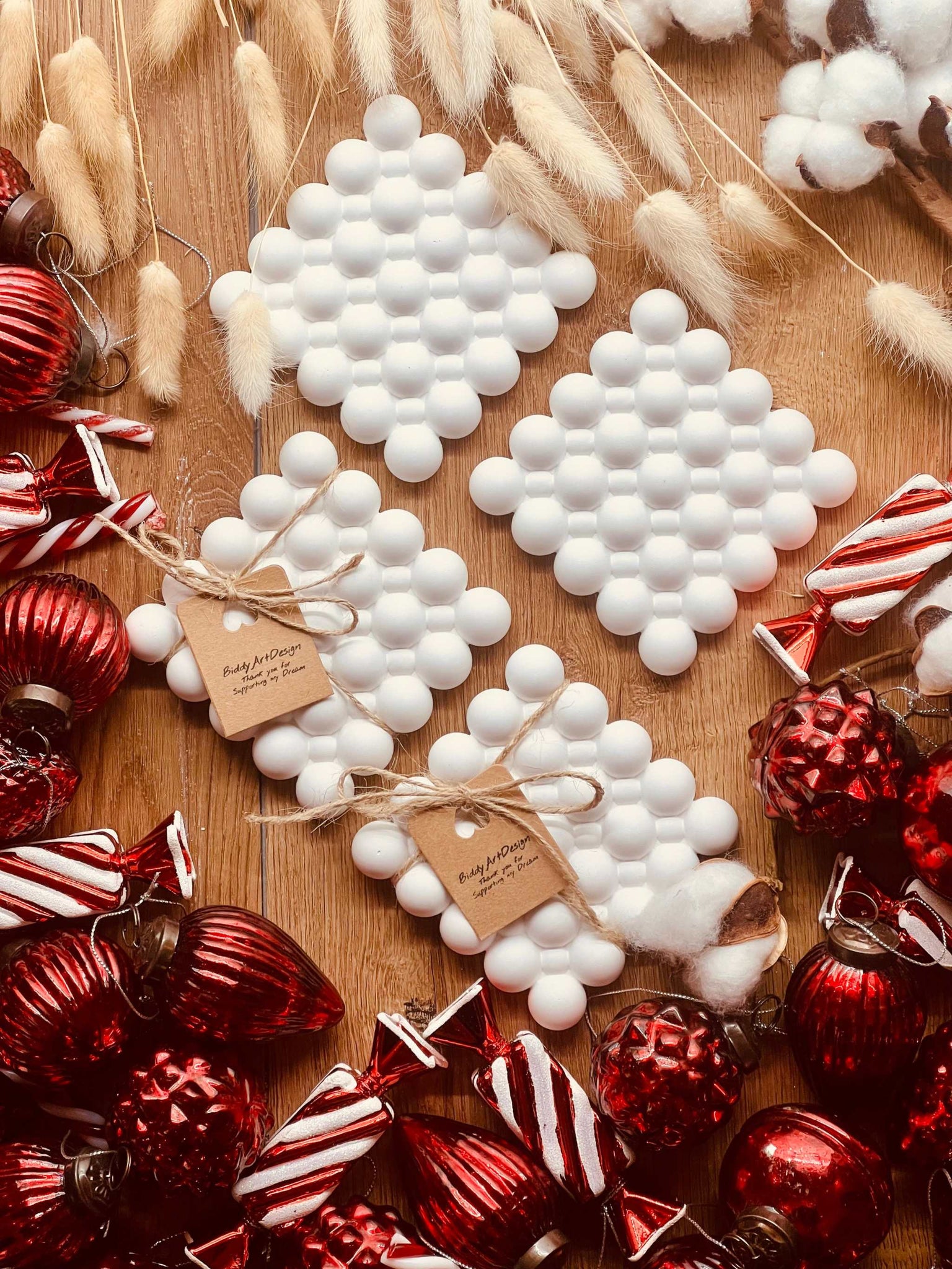 The handmade cast ceramic coaster "Square Bubbles" impresses with its modern bubble design and versatility. Made from environmentally friendly cast ceramic, it is ideal as a candle tray or stylish coaster for drinks. The unique pattern gives any room a modern touch. With dimensions of approx. 10 cm x 10 cm, this cast ceramic coaster is both functional and decorative. Each piece is handmade and unique, which means slight variations in color and pattern may occur.