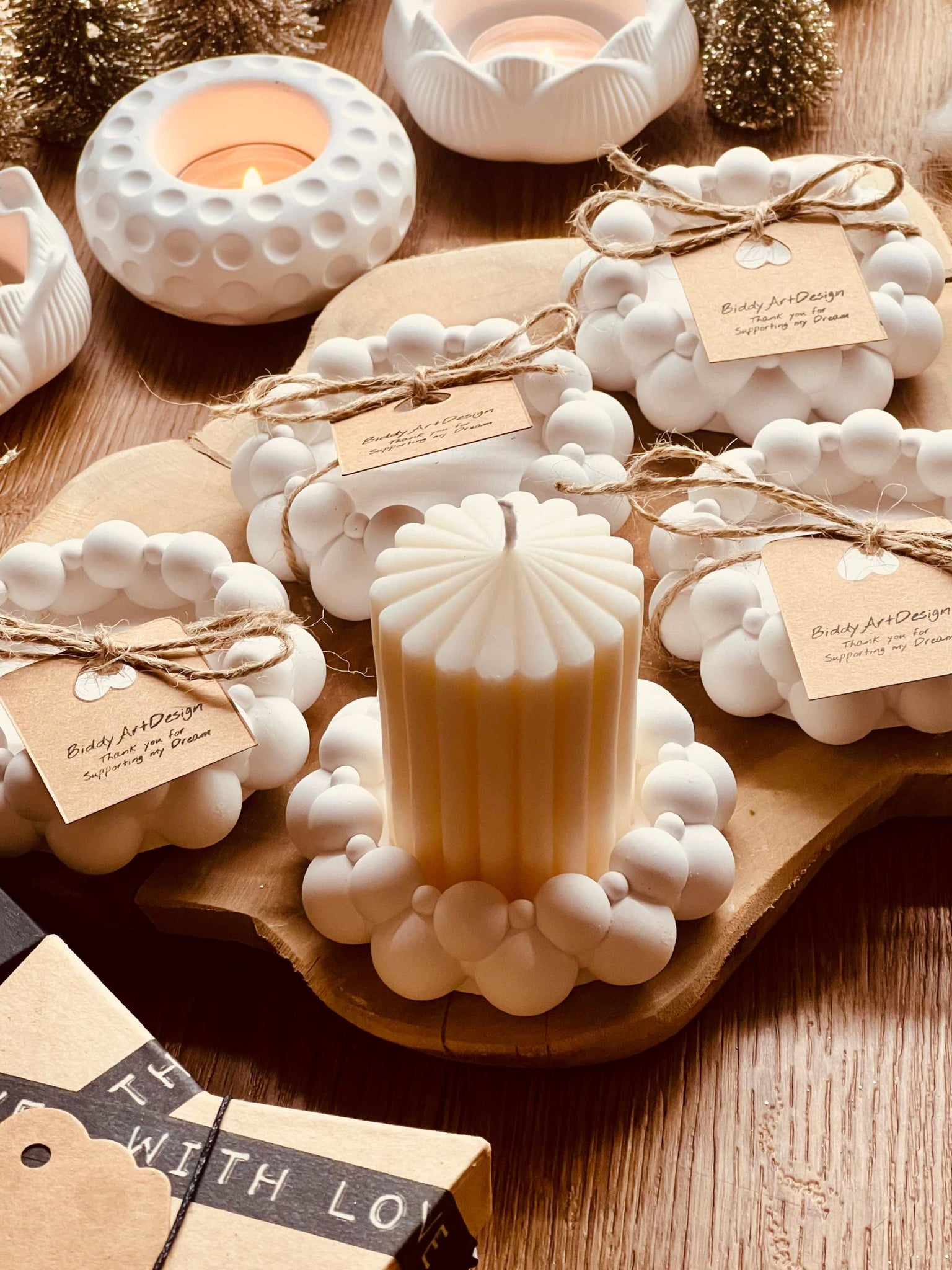 Modern cast ceramic coaster or candle tray "Many Bubbles"