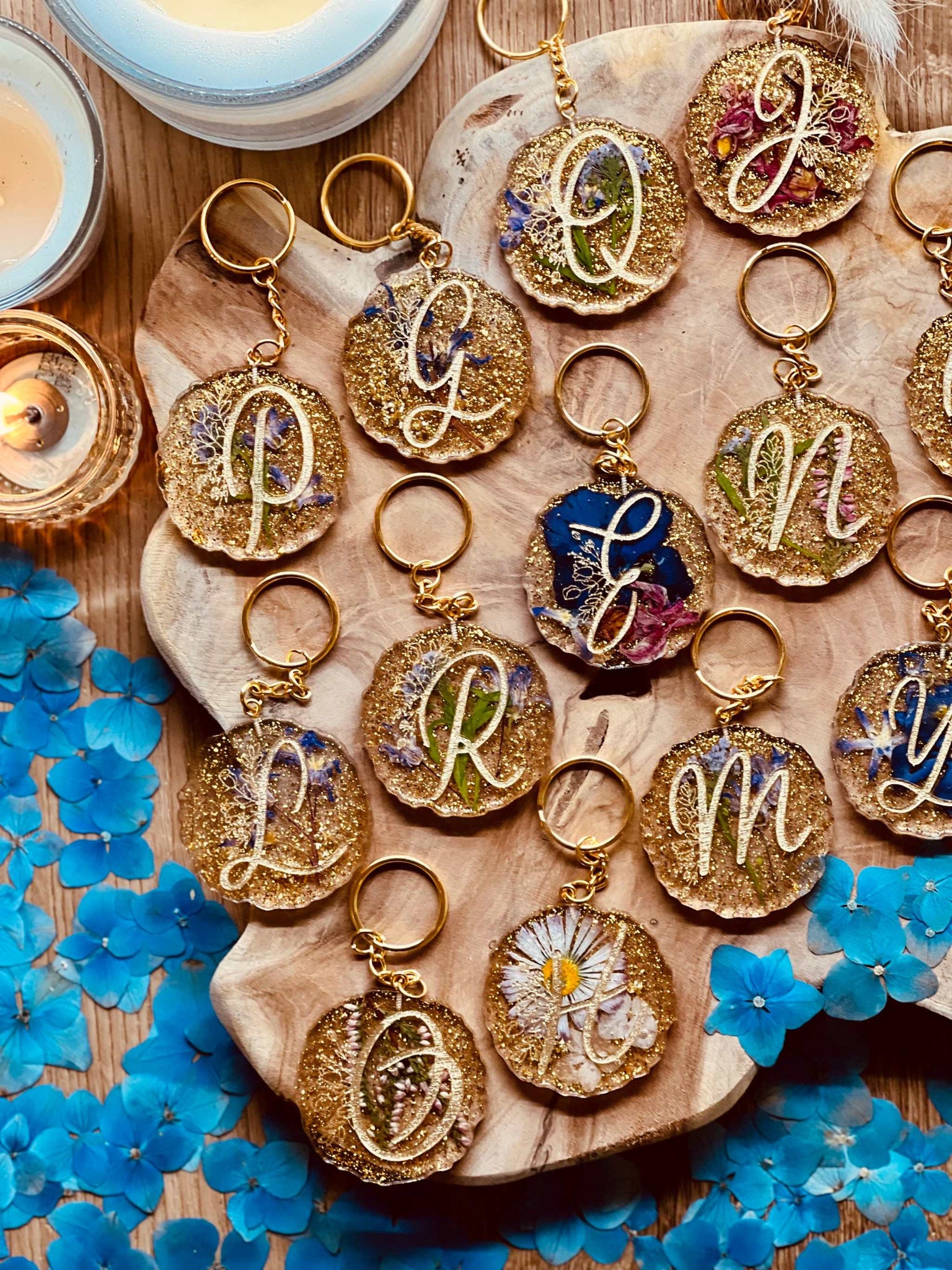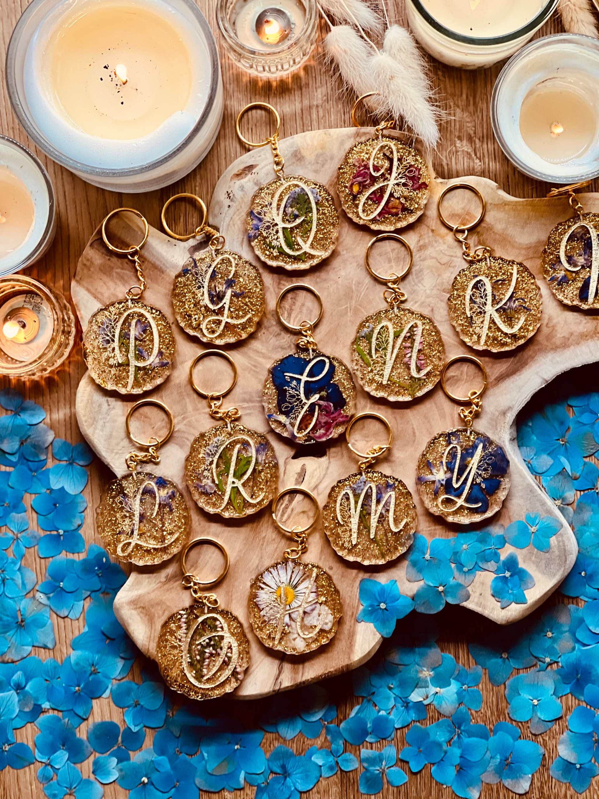 This handmade designer keychain with real flowers is a unique one-of-a-kind and a stylish accessory for nature lovers. The real, self-dried flowers are carefully cast in high-quality resin, which means their natural beauty is permanently preserved. Whether as a personal companion or a special gift idea - this designer keychain impresses with its quality and extraordinary design.