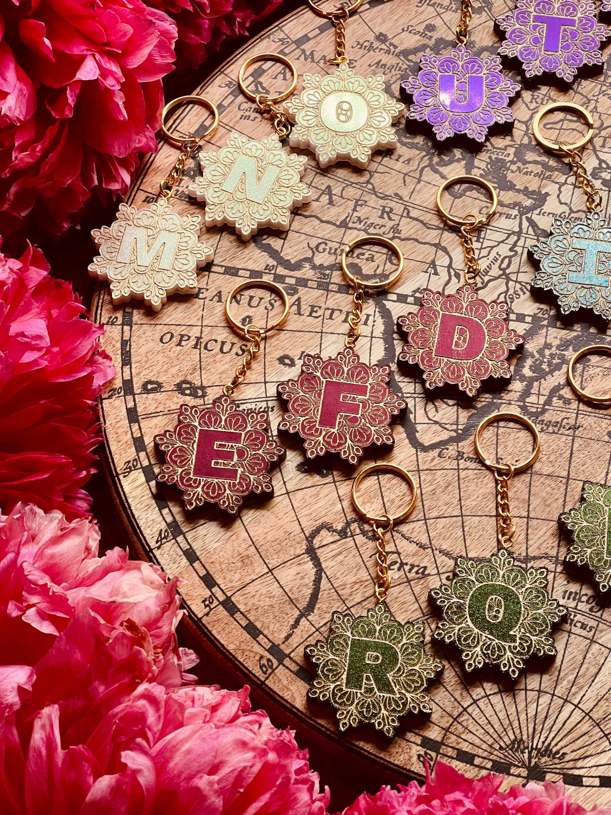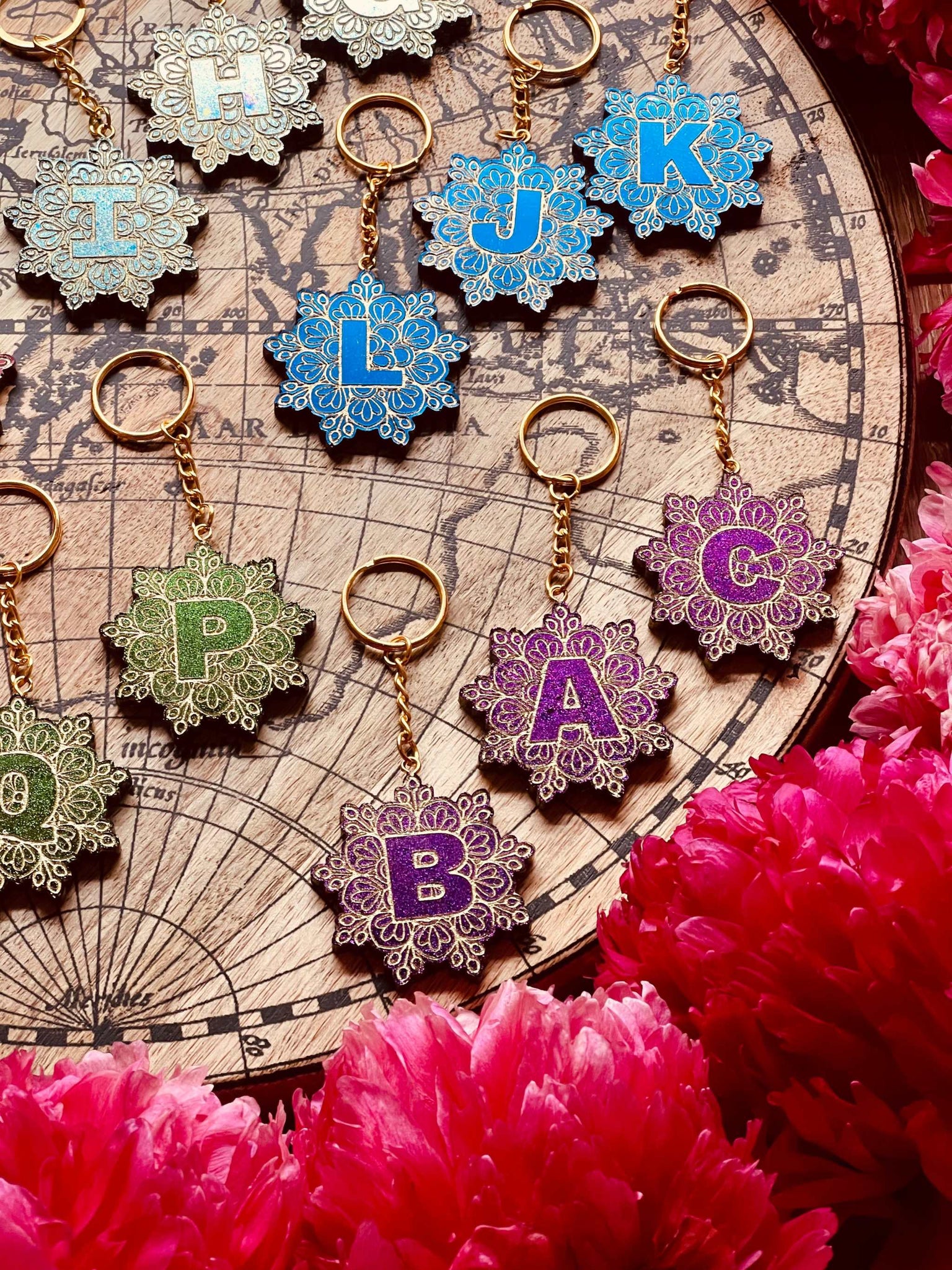 This handmade designer keychain in mandala design impresses with its shimmering chameleon colors, which shine in different nuances depending on the incidence of light. The artistic mandala pattern symbolizes harmony and balance and has been carefully worked into high-quality resin to ensure a long-lasting and aesthetic appearance. Whether as a personal accessory or a special gift idea - this designer keychain impresses with its quality and its extraordinary design.