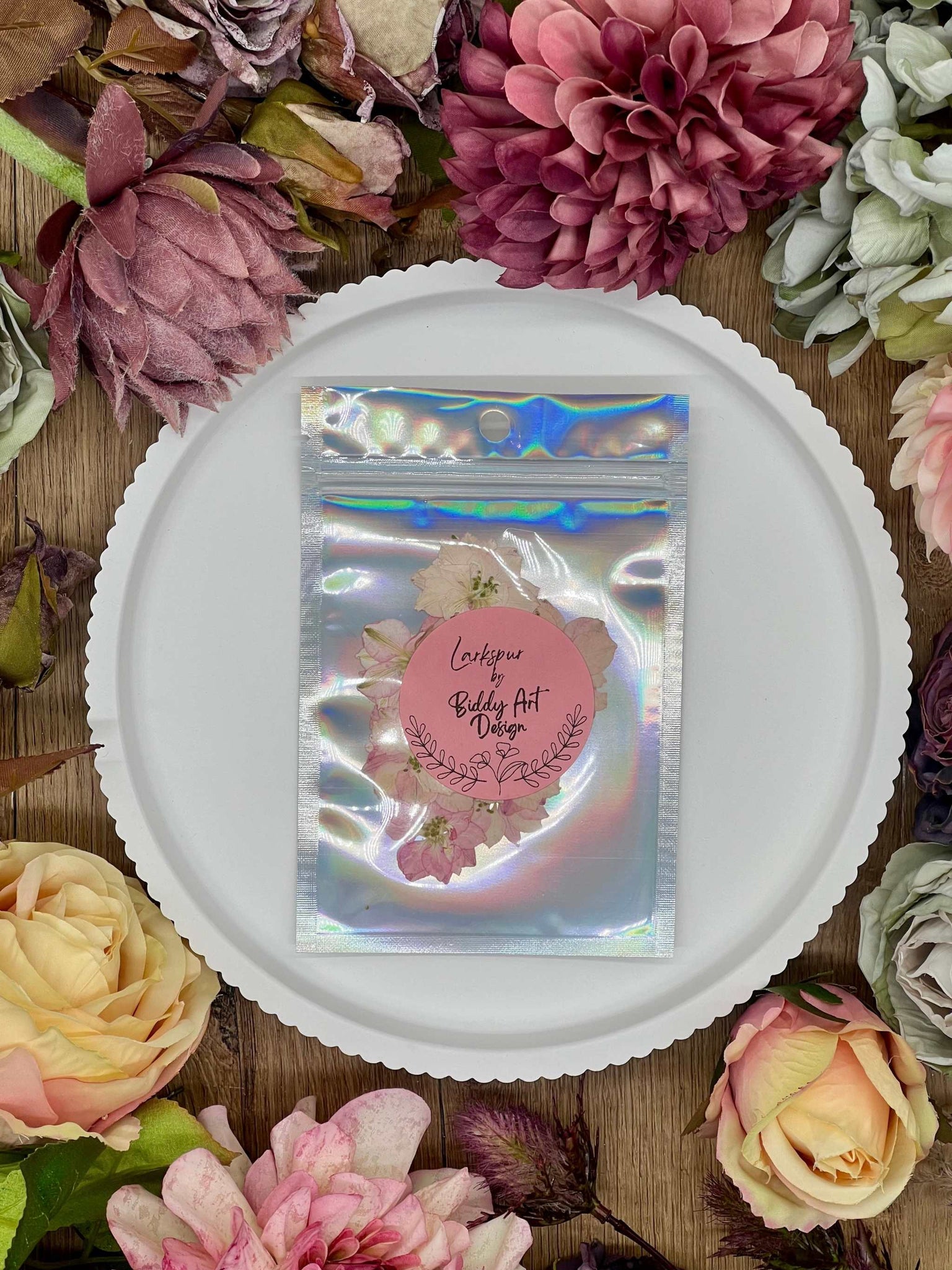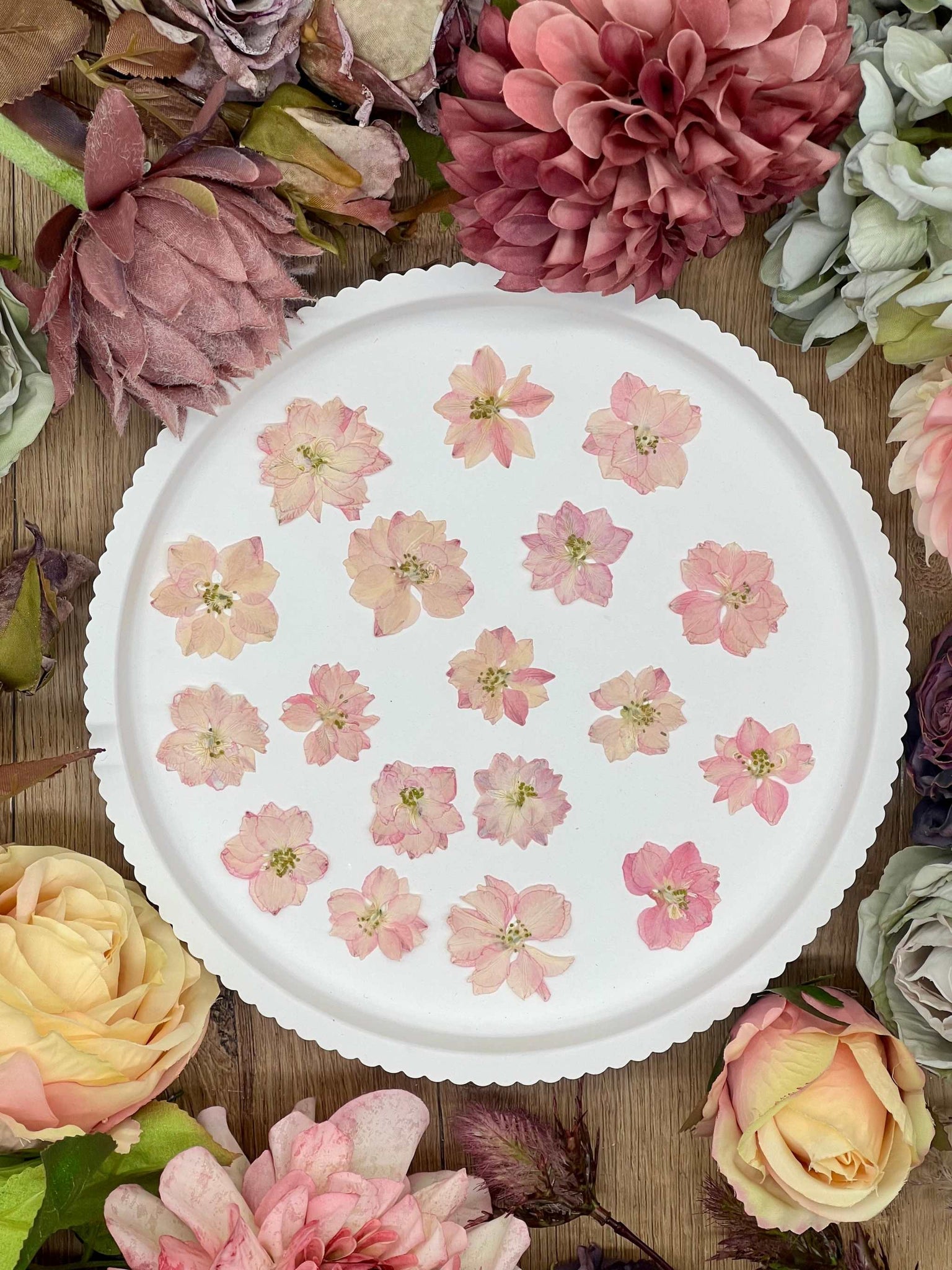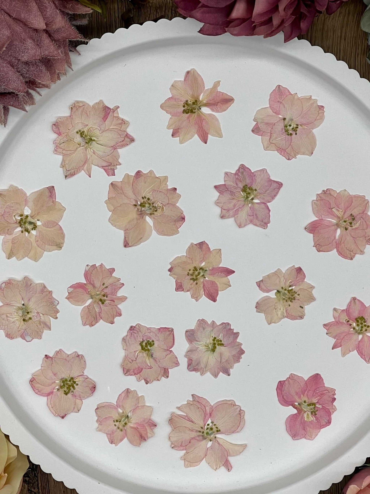 ✔ 12 hand-pressed Larkspur flowers – delicate pink for stylish designs