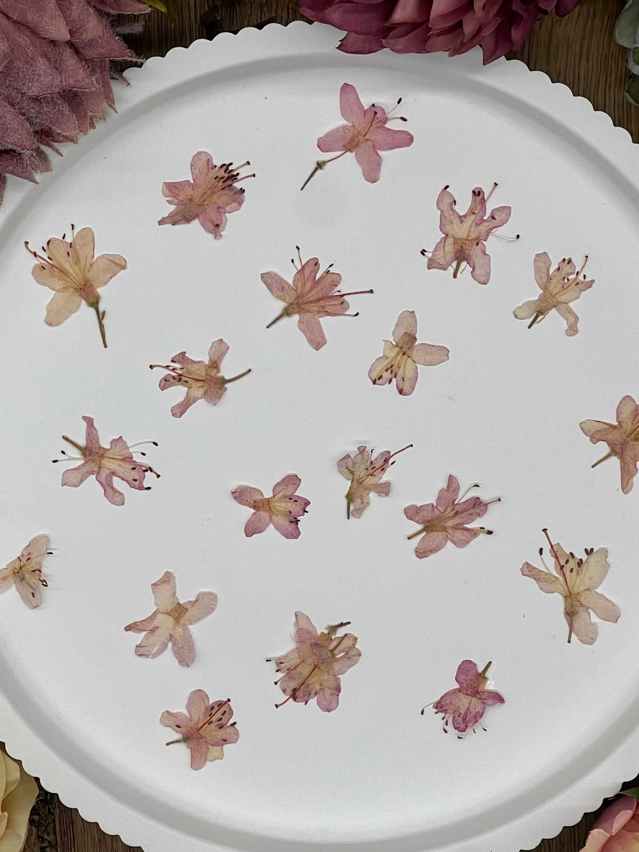✔ 12 hand-pressed rhododendron flowers – delicate pink for stylish designs