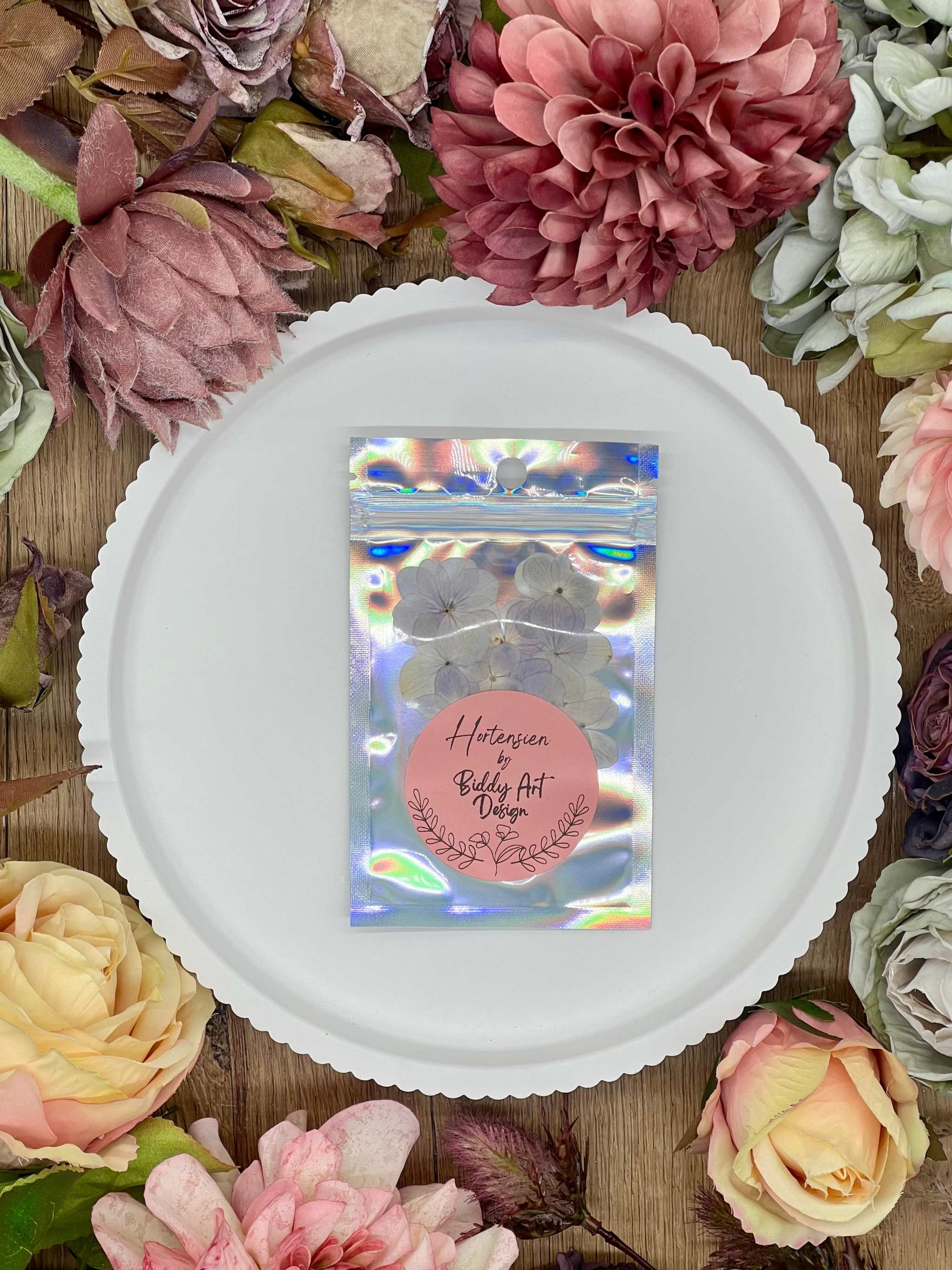 These dried flowers bring stylish elegance to your DIY projects! The 20 hand-pressed hydrangea flowers in purple and beige are perfect for resin art, jewelry, candles or scrapbooking. Their soft color gradient makes them the perfect addition to creative designs with a natural touch.