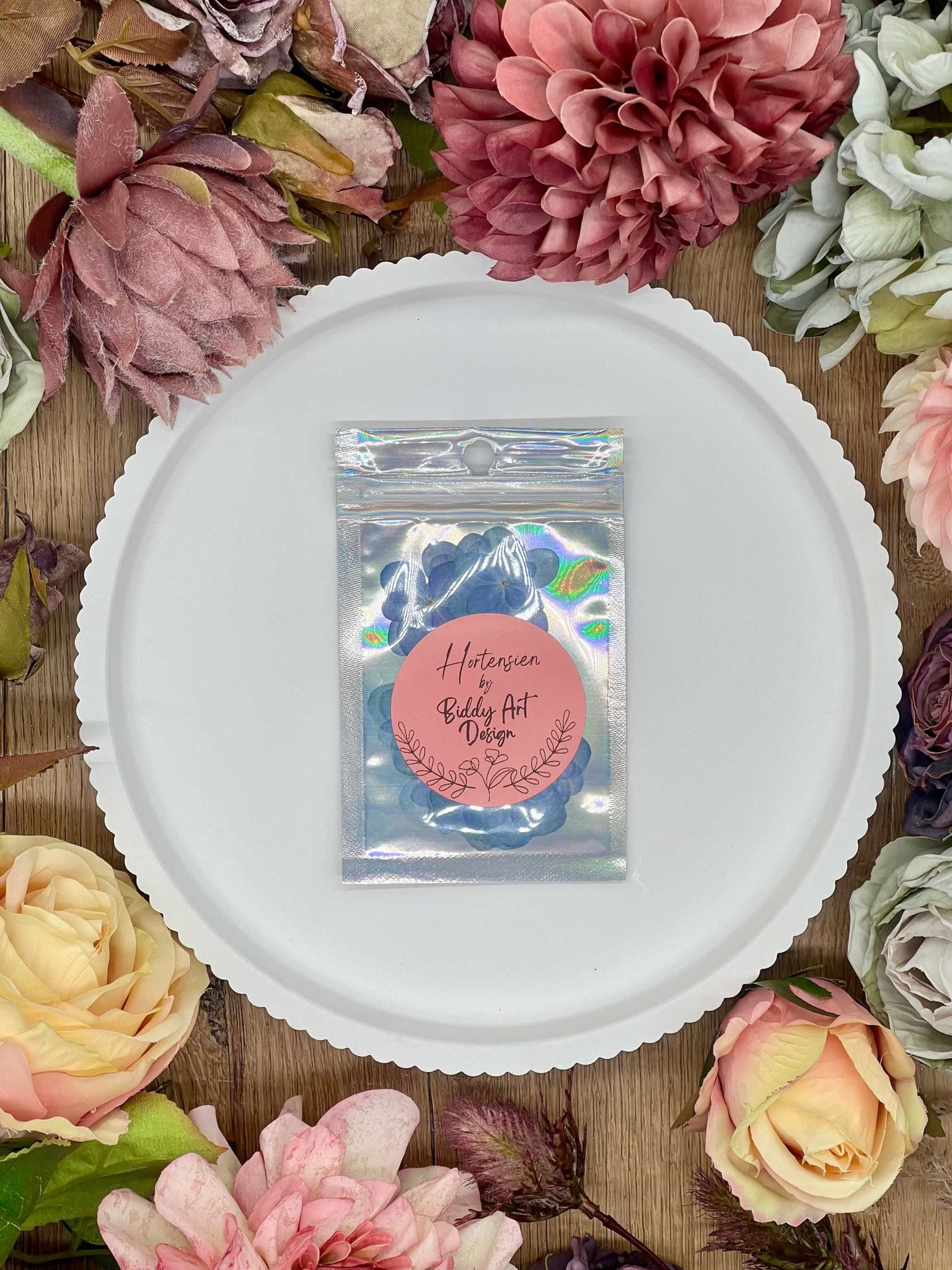 ✔ 20 hand-pressed Lotus hydrangea flowers – bright blue for elegant designs