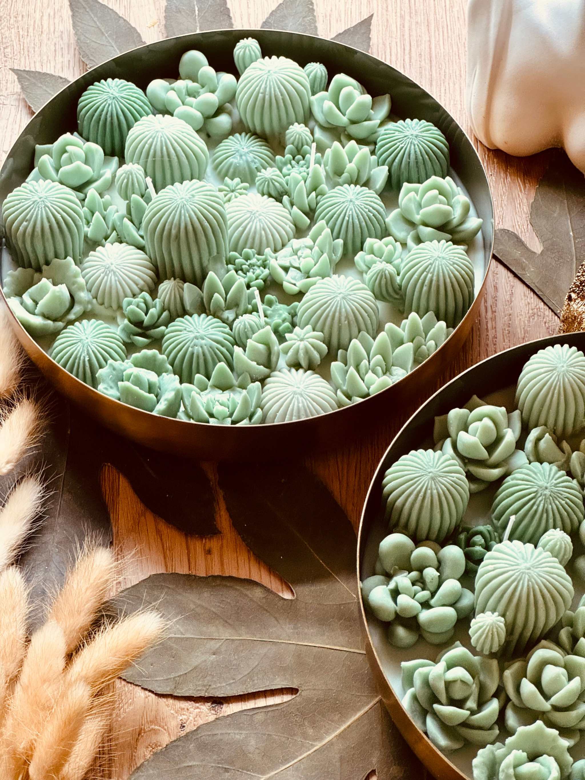 This candle will enchant you with its unique design. On top you will find delicate wax cacti that make the design a unique highlight. And of course all candles are made from environmentally friendly rapeseed wax.