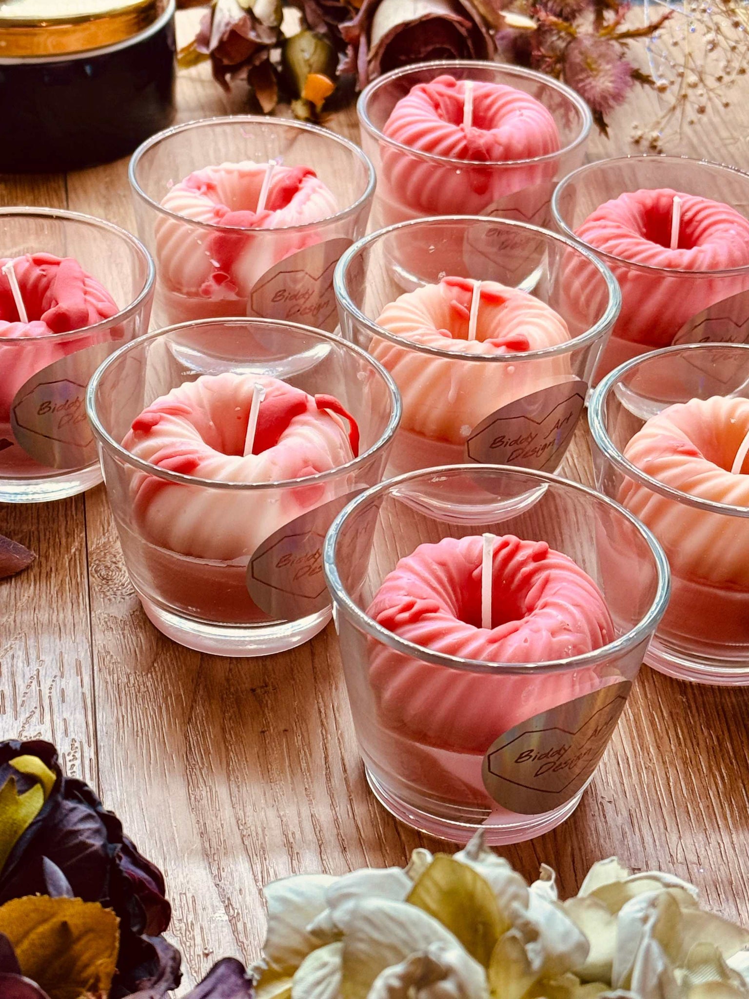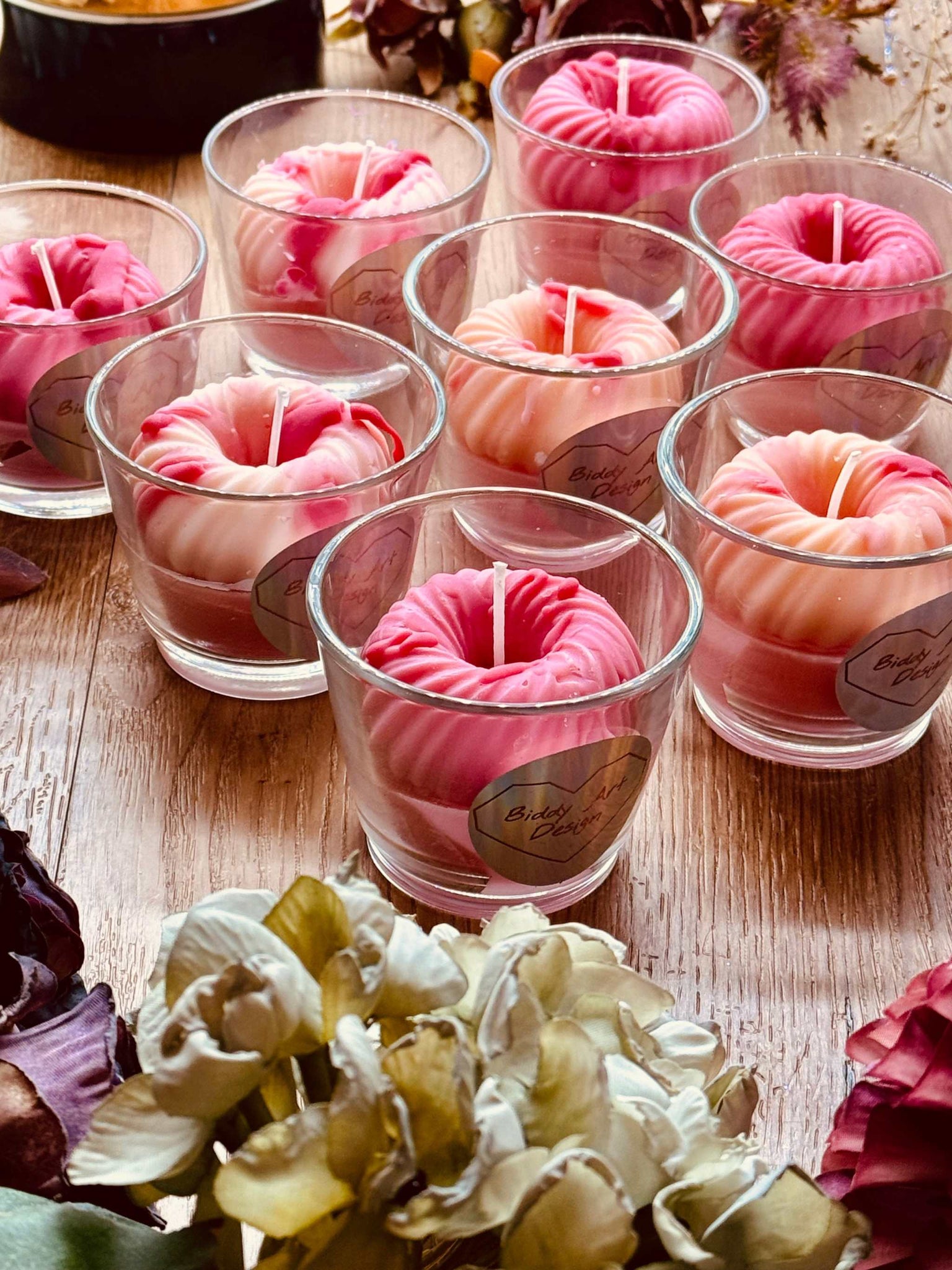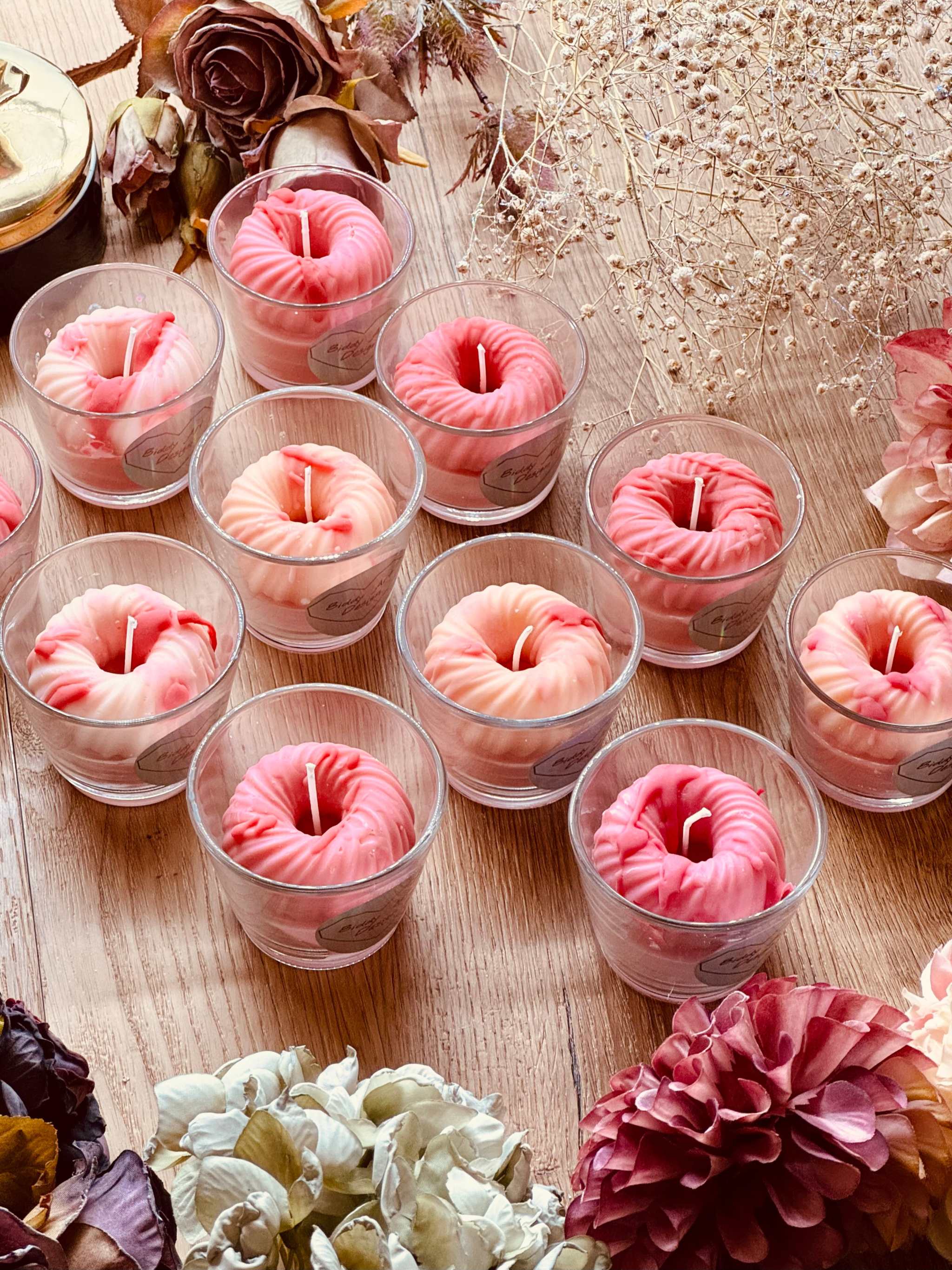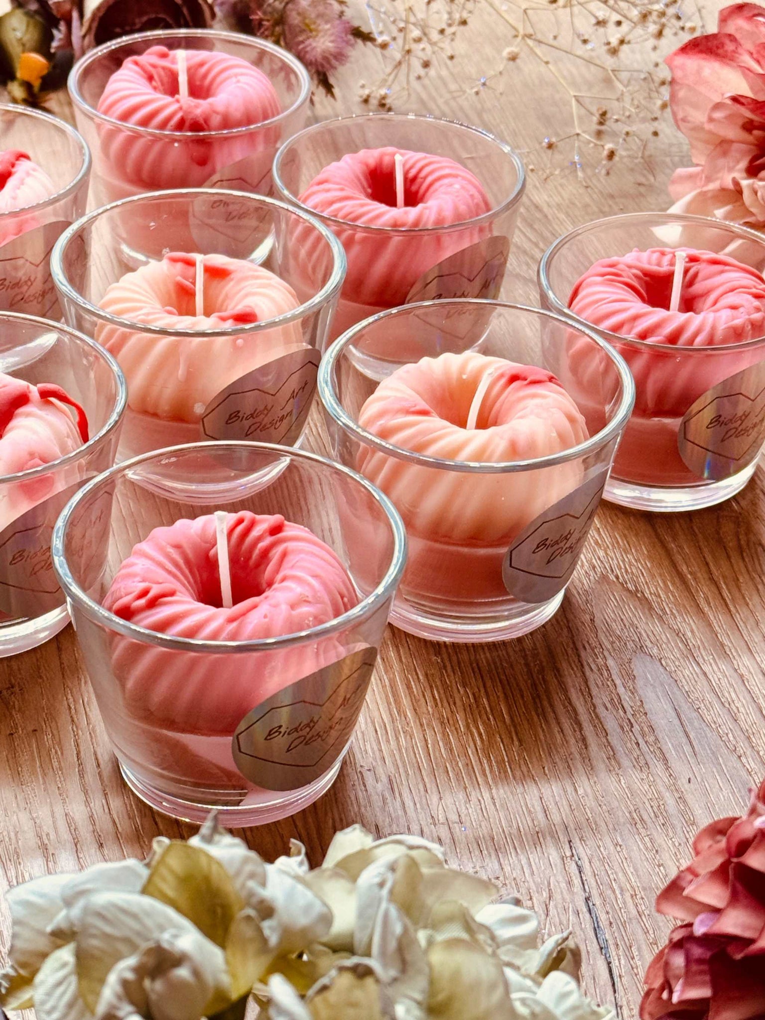 This "Donut" scented candle will enchant you with its unique perfume scent. On top you will find delicate wax donuts that make the design a unique highlight. And of course, all candles are made from environmentally friendly rapeseed wax.