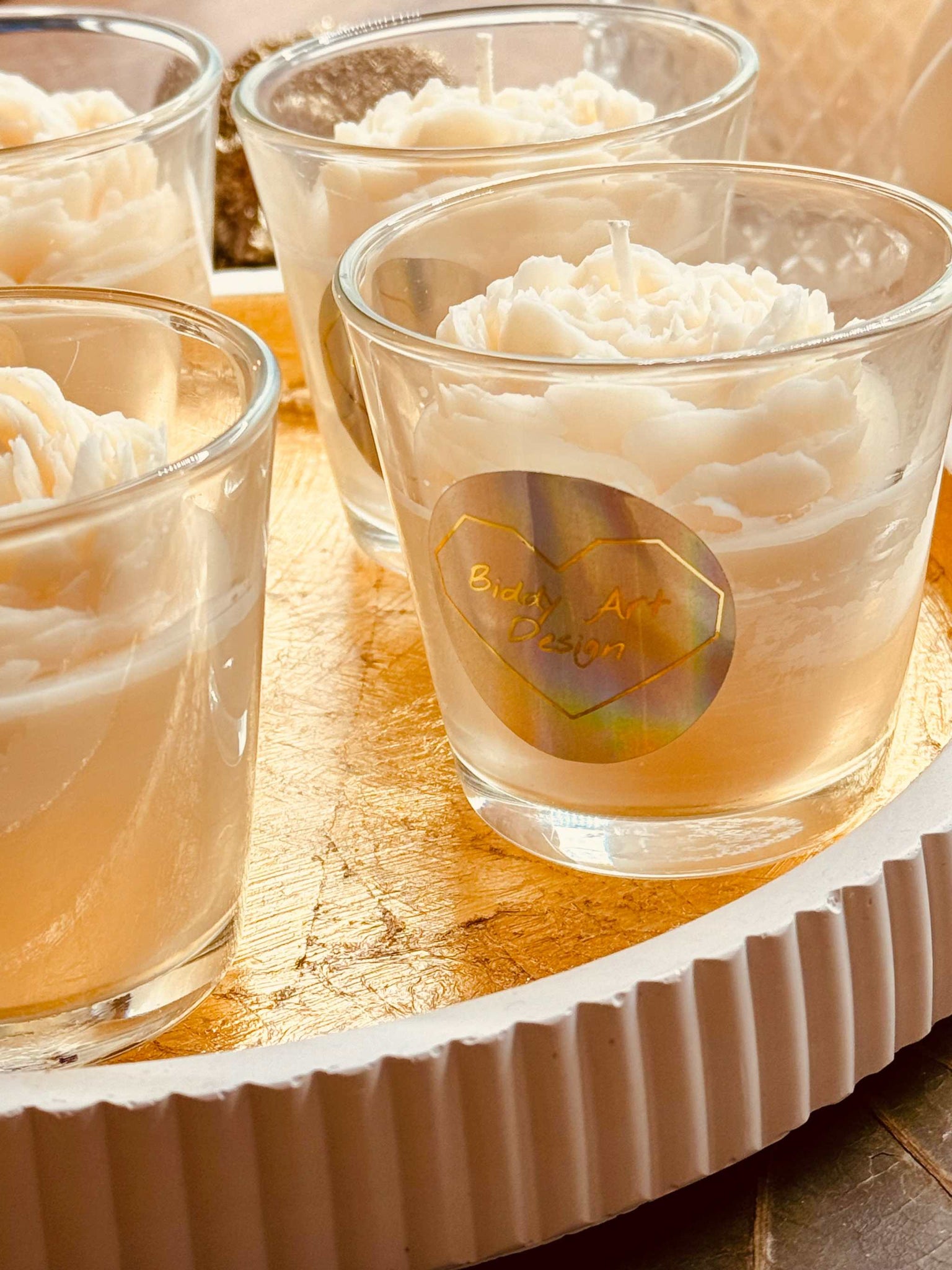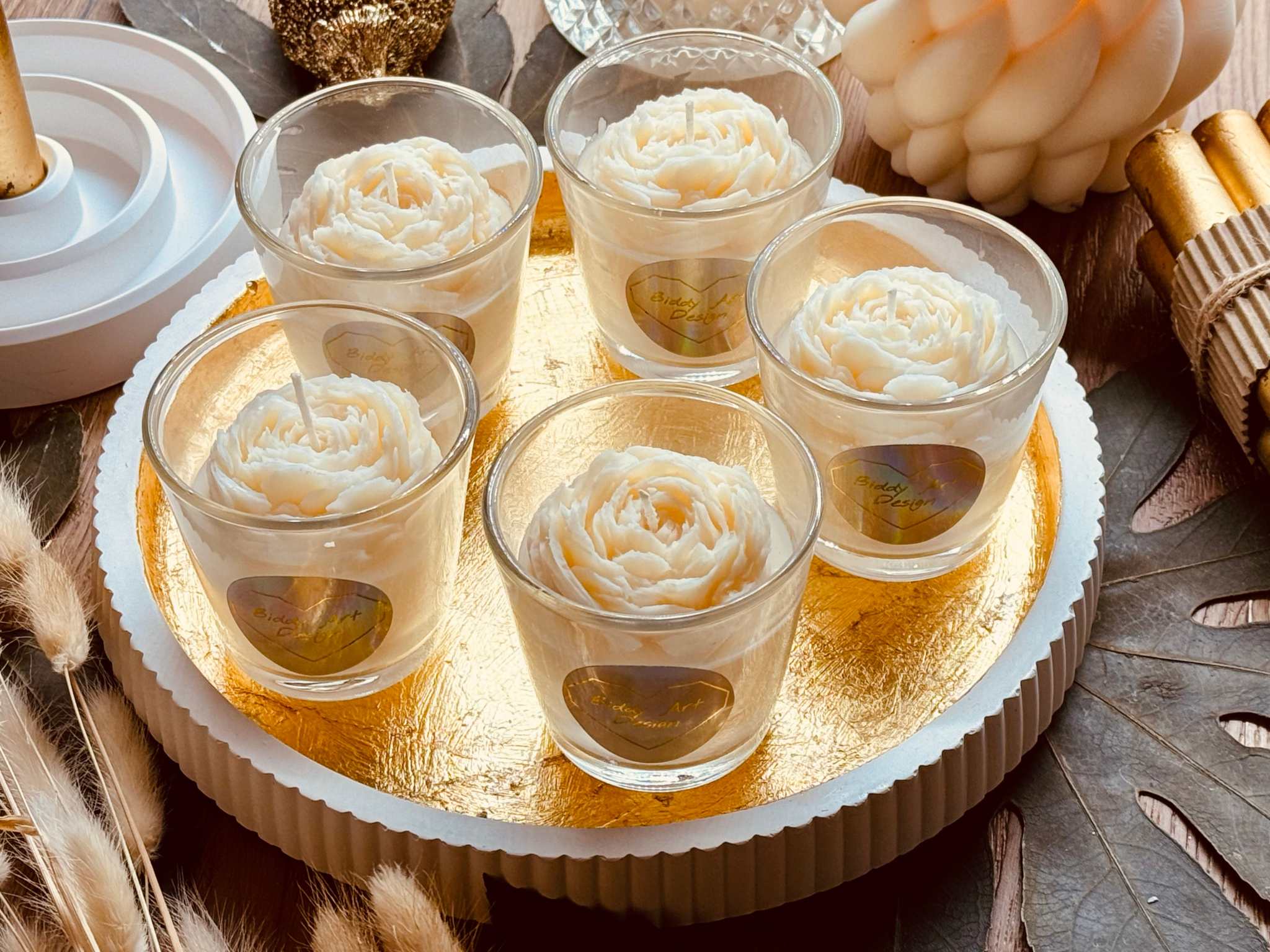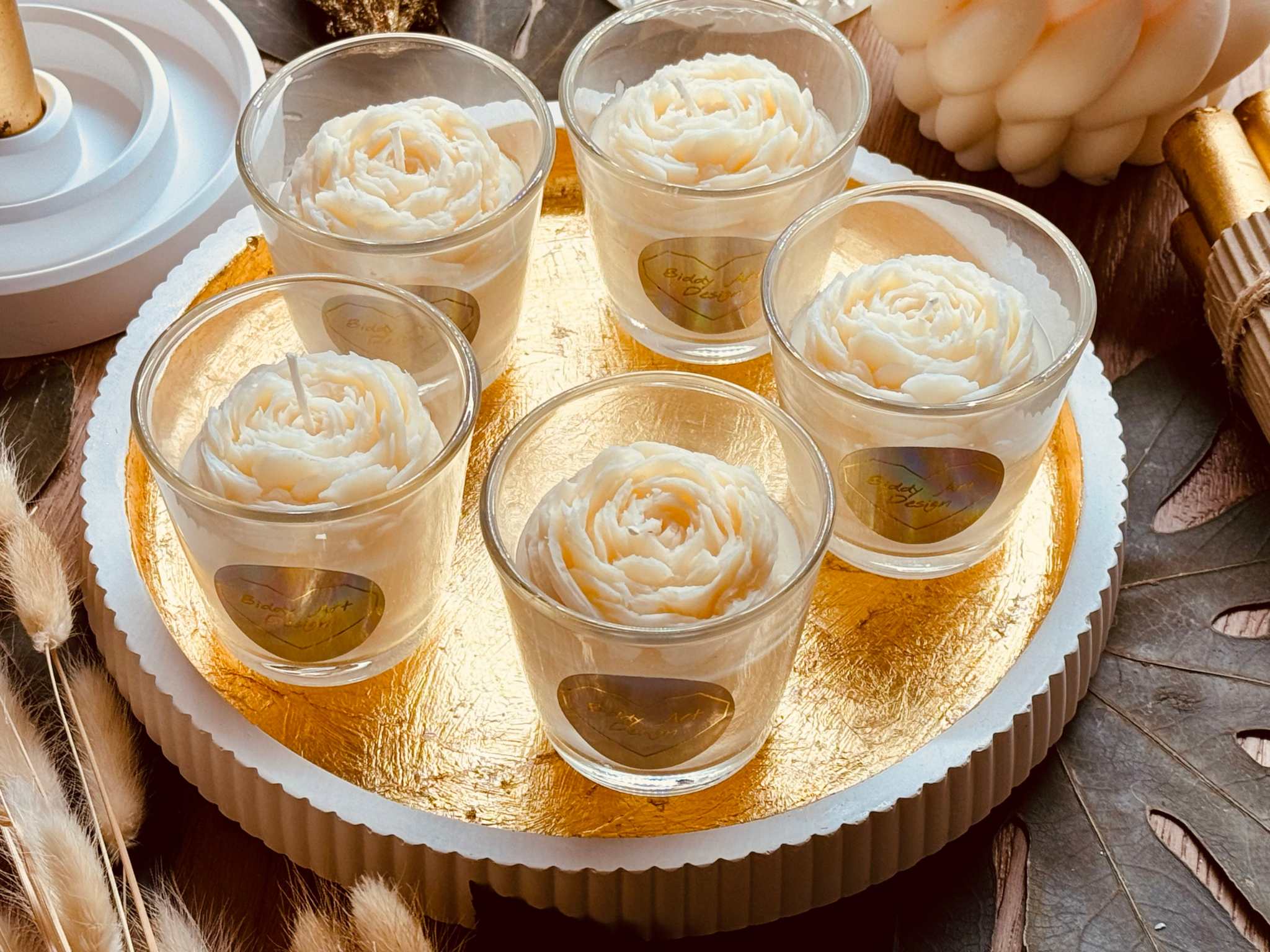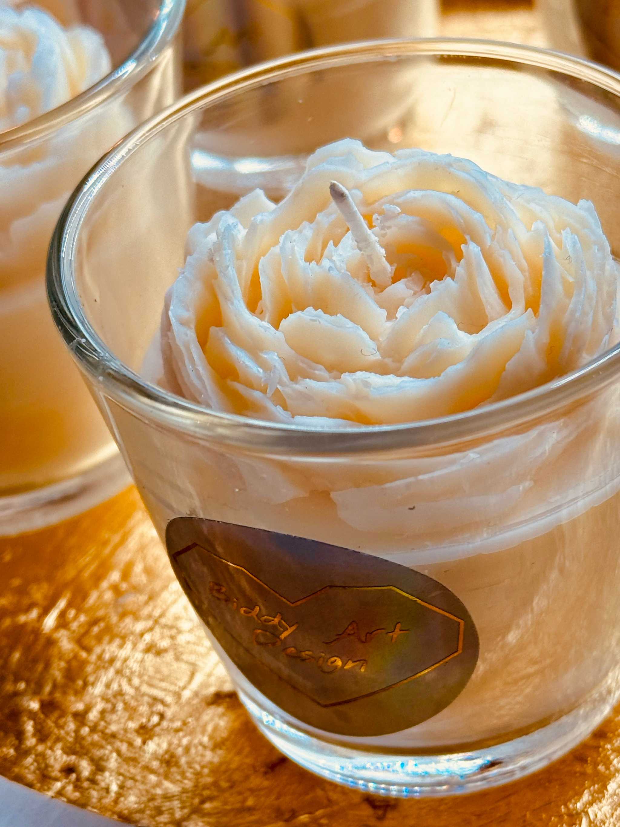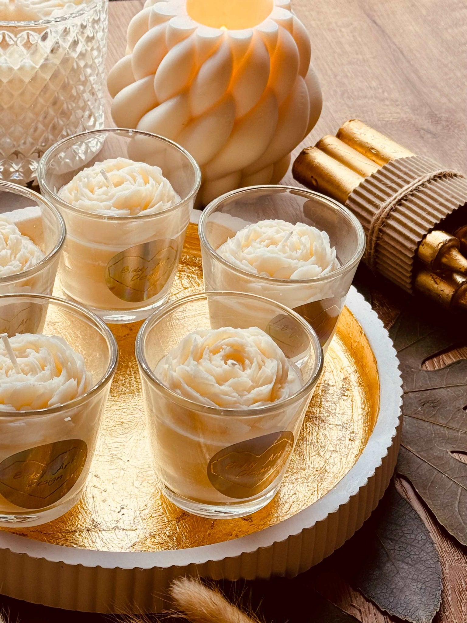 This "Yellow Rose" scented candle will enchant you with its unique perfume scent. On top you will find delicate wax flowers that make the design a unique highlight. And of course, all candles are made from environmentally friendly rapeseed wax.