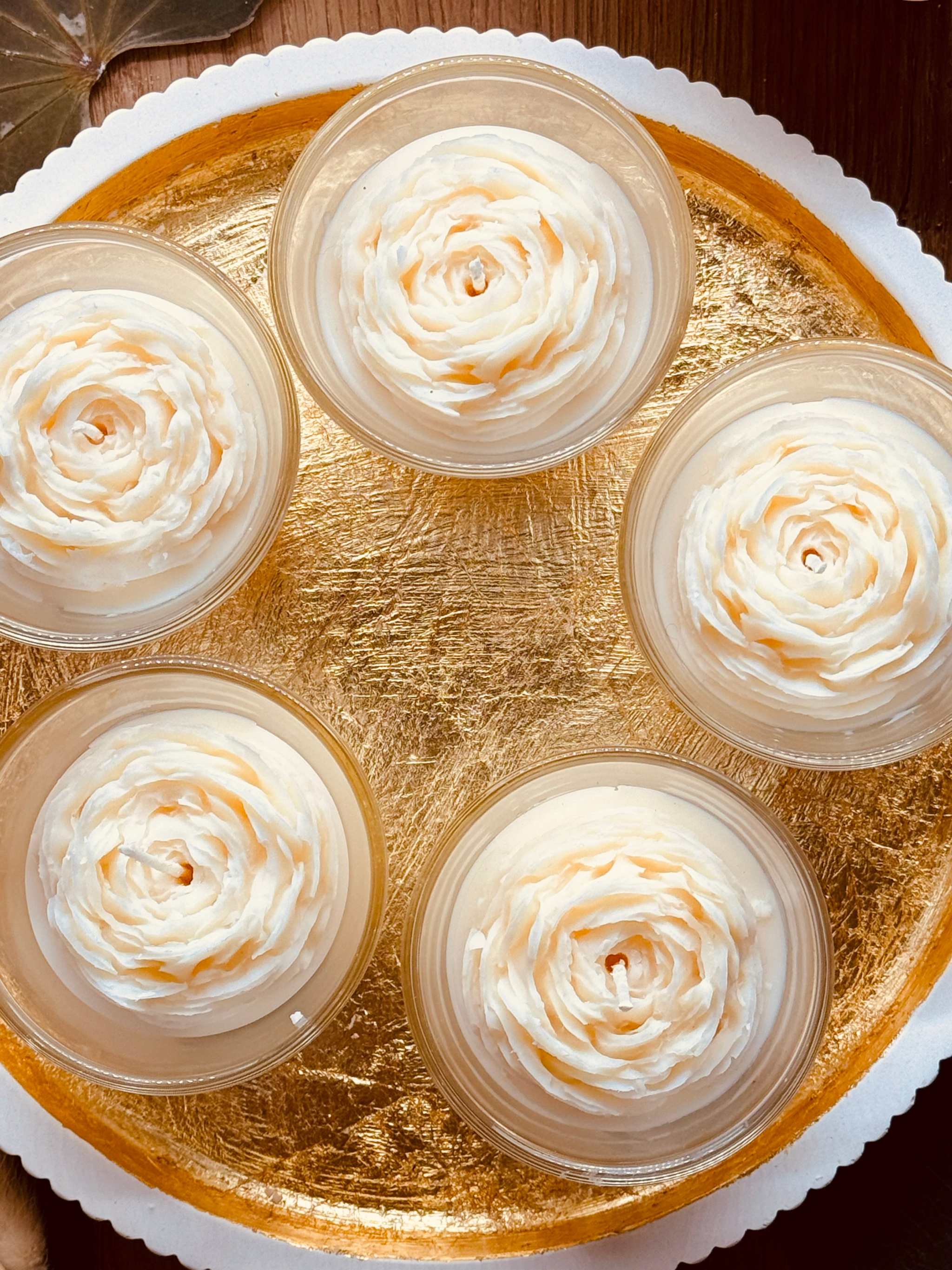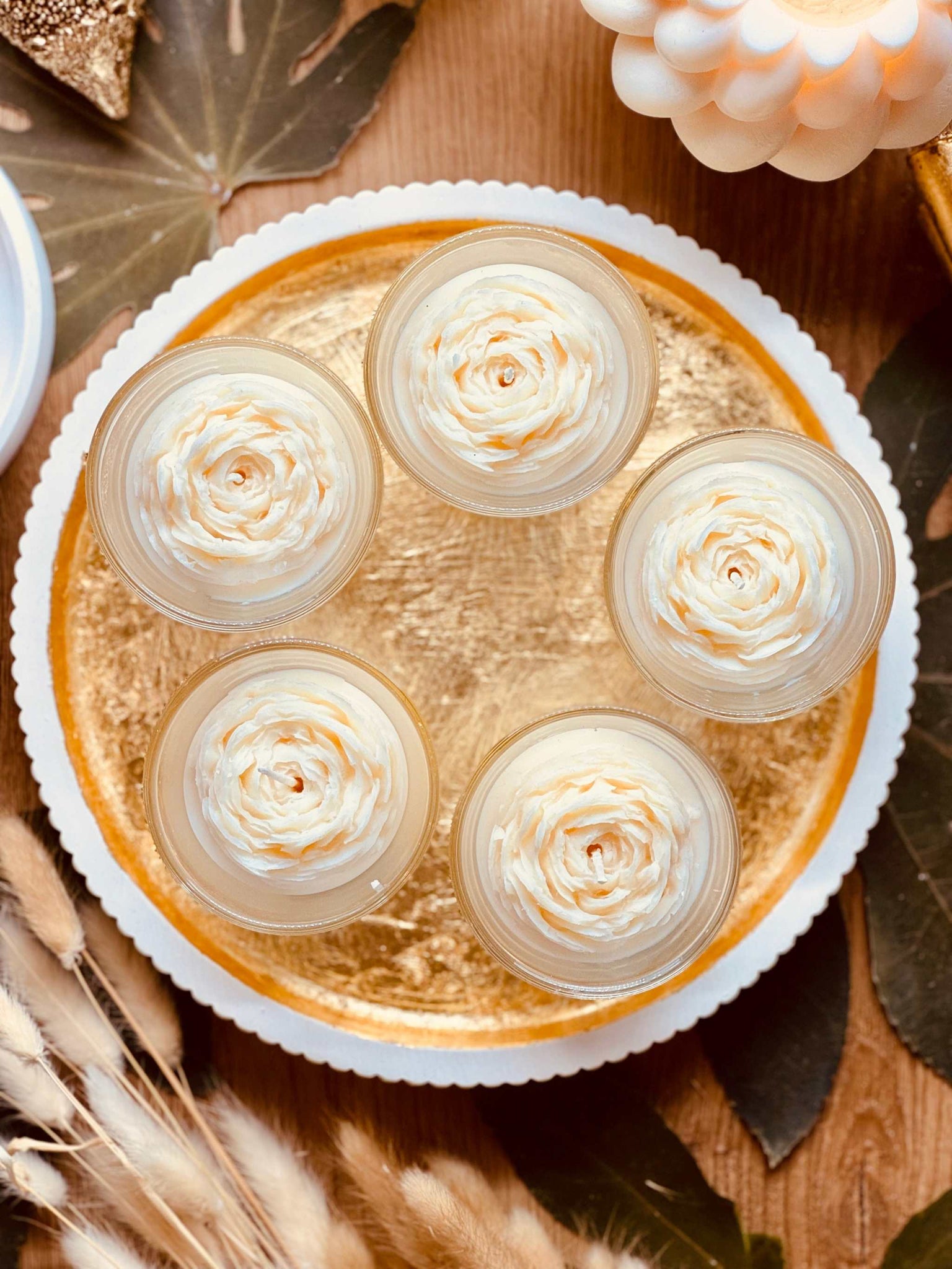 Natural rapeseed wax candle in rose shape, hand-poured and detailed - ideal as a romantic gift or decorative eye-catcher.