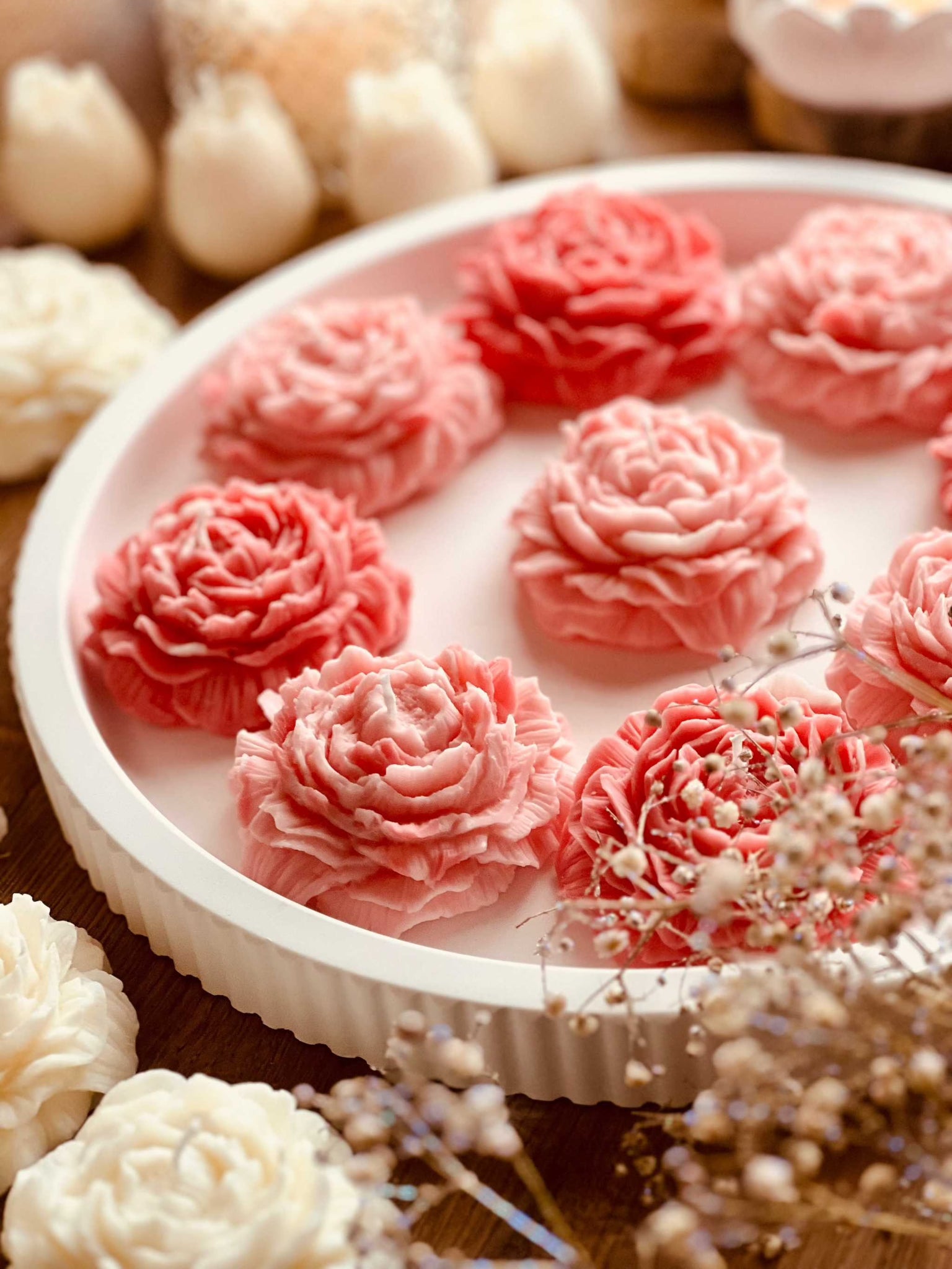 The set comes in mixed shades of pink. Of course you can also let us know if you want a special color.