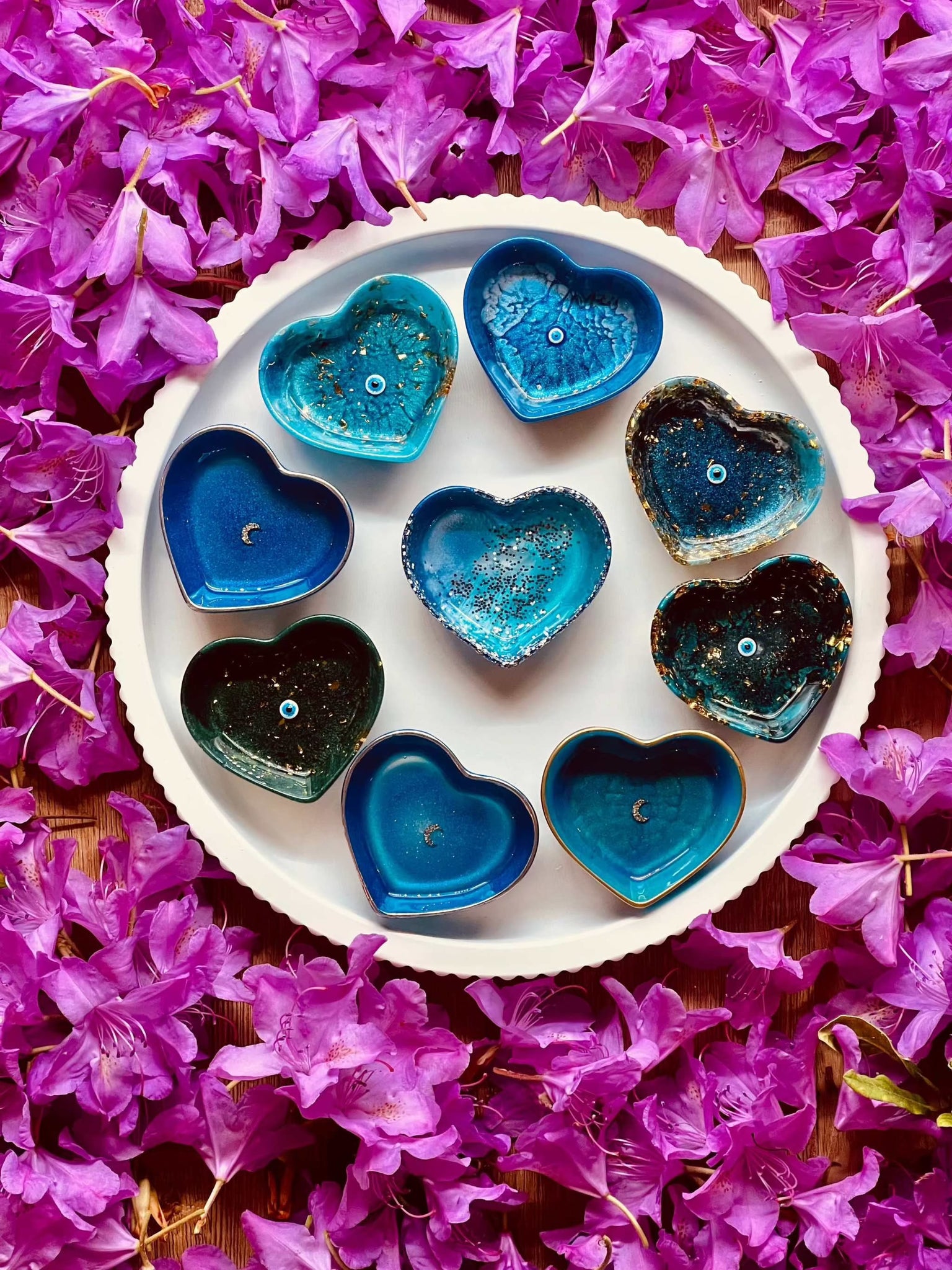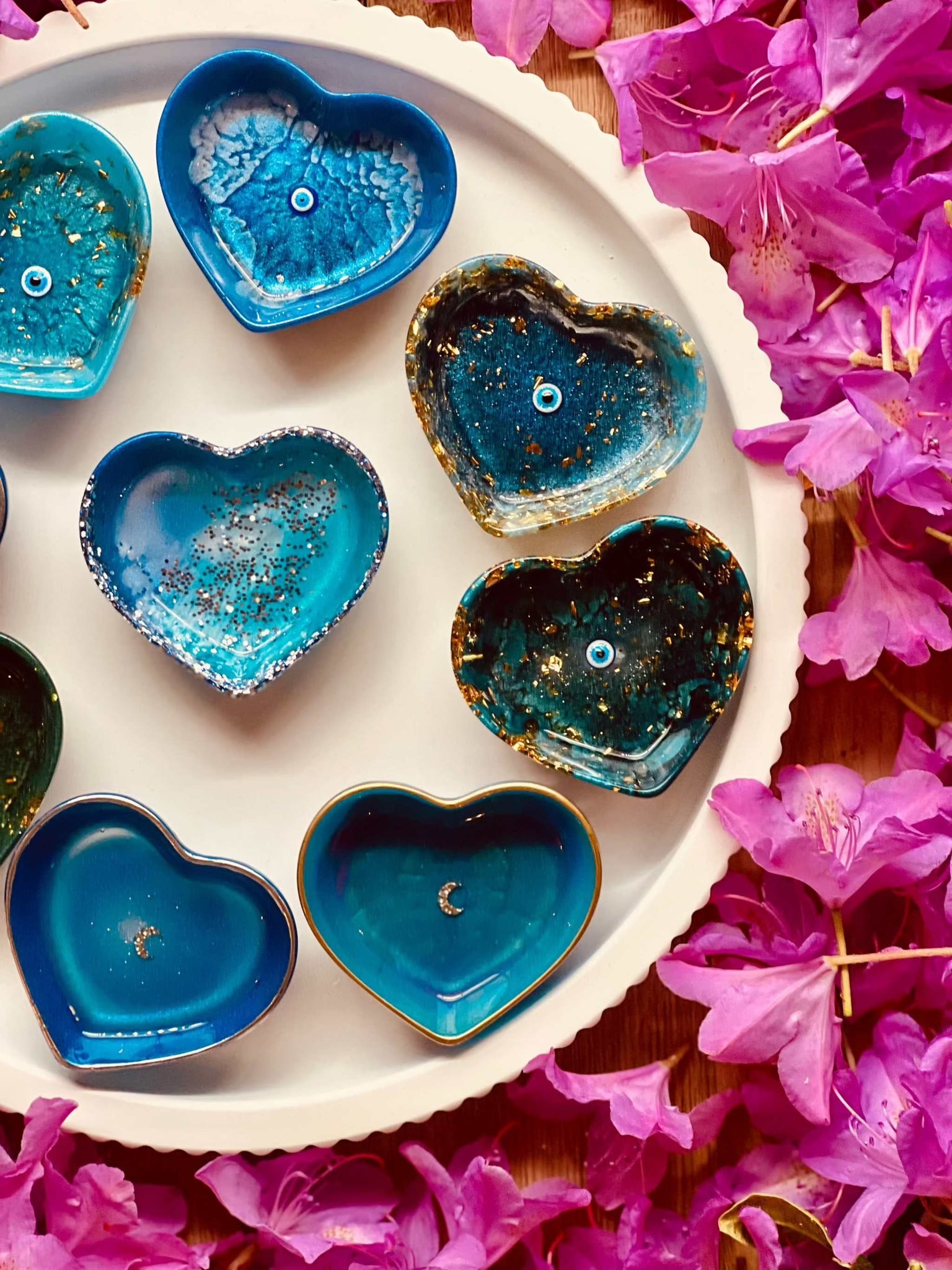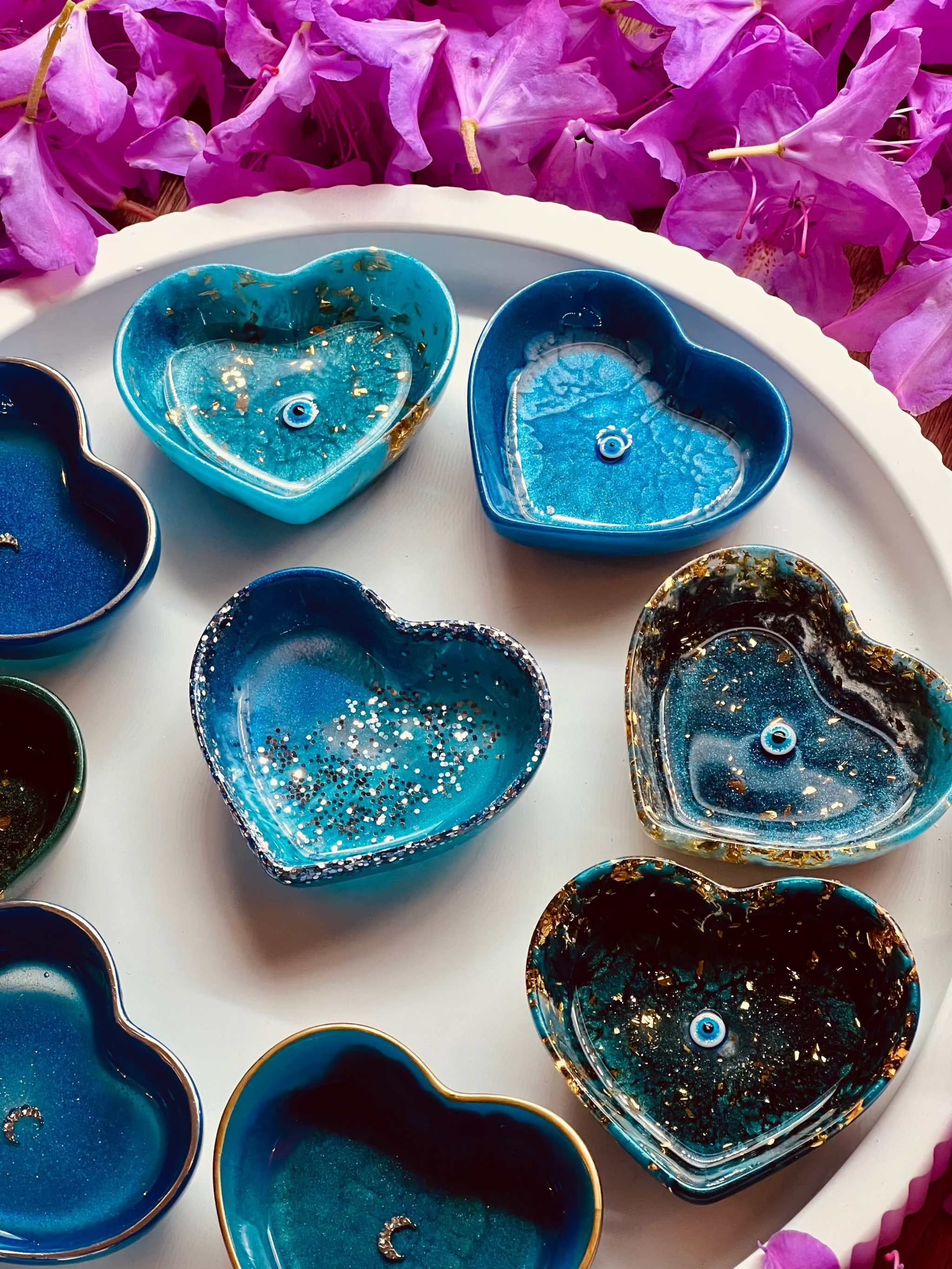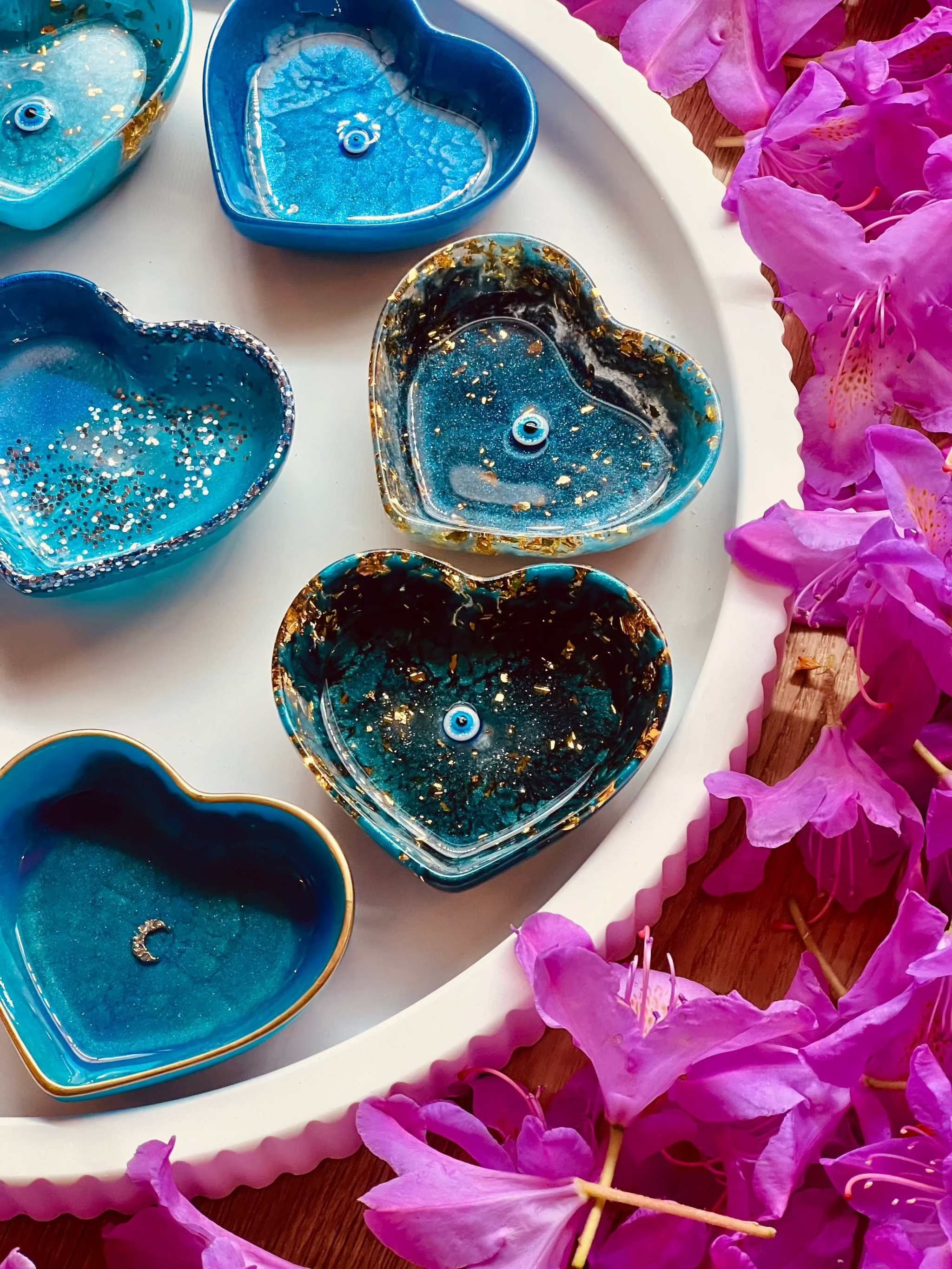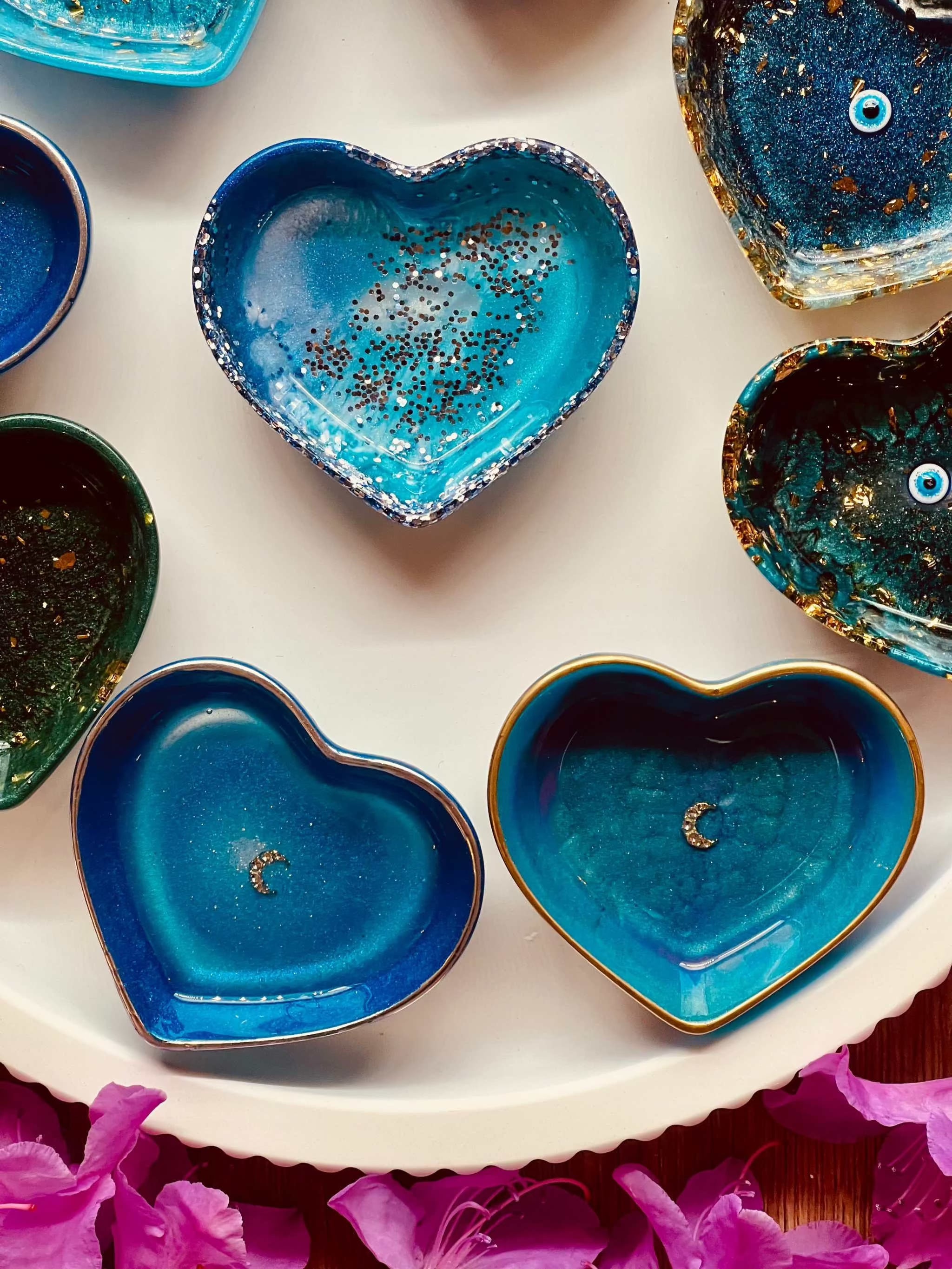 Handmade resin jewelry or ring bowls in different colors with silver details. All of my items are one-of-a-kind. Jewelry bowls are the perfect decoration in any bathroom or bedroom and an individual gift for your loved ones.