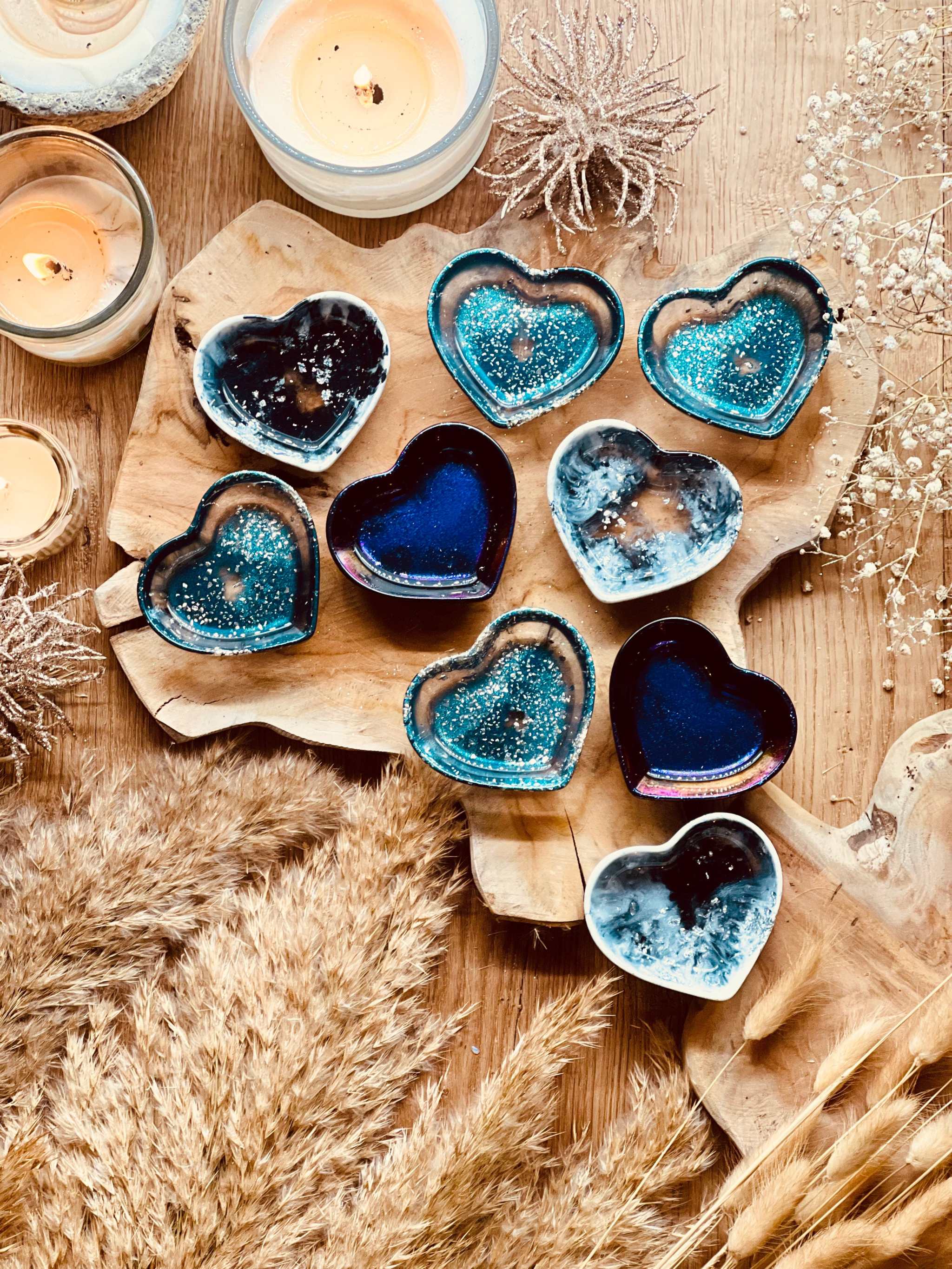 Handmade jewelry or ring bowls made of resin in different colors. All of my items are one-of-a-kind. Jewelry bowls are the perfect decoration in any bathroom or bedroom and an individual gift for your loved ones.