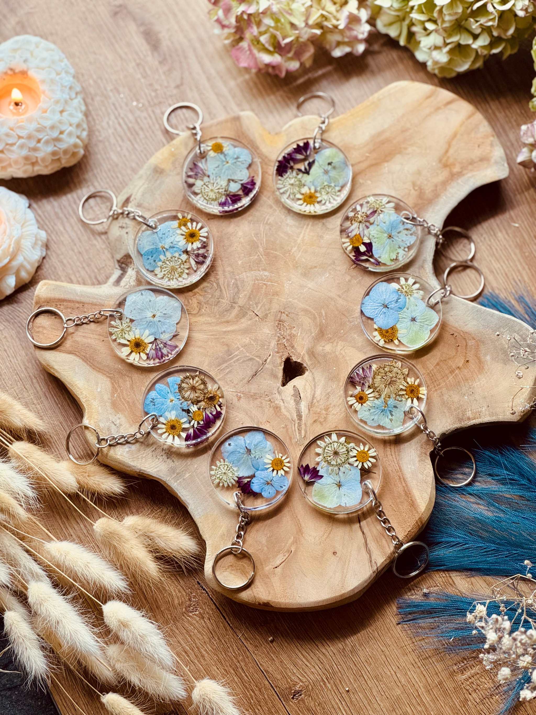 Your bridal bouquet is more than just a floral arrangement—it's a symbol of love, hope, and new beginnings. That's why it's worth capturing this special moment. I carefully preserve the blossoms and cast them in high-quality epoxy resin. This creates a long-lasting keychain that not only looks beautiful but also tells your story.