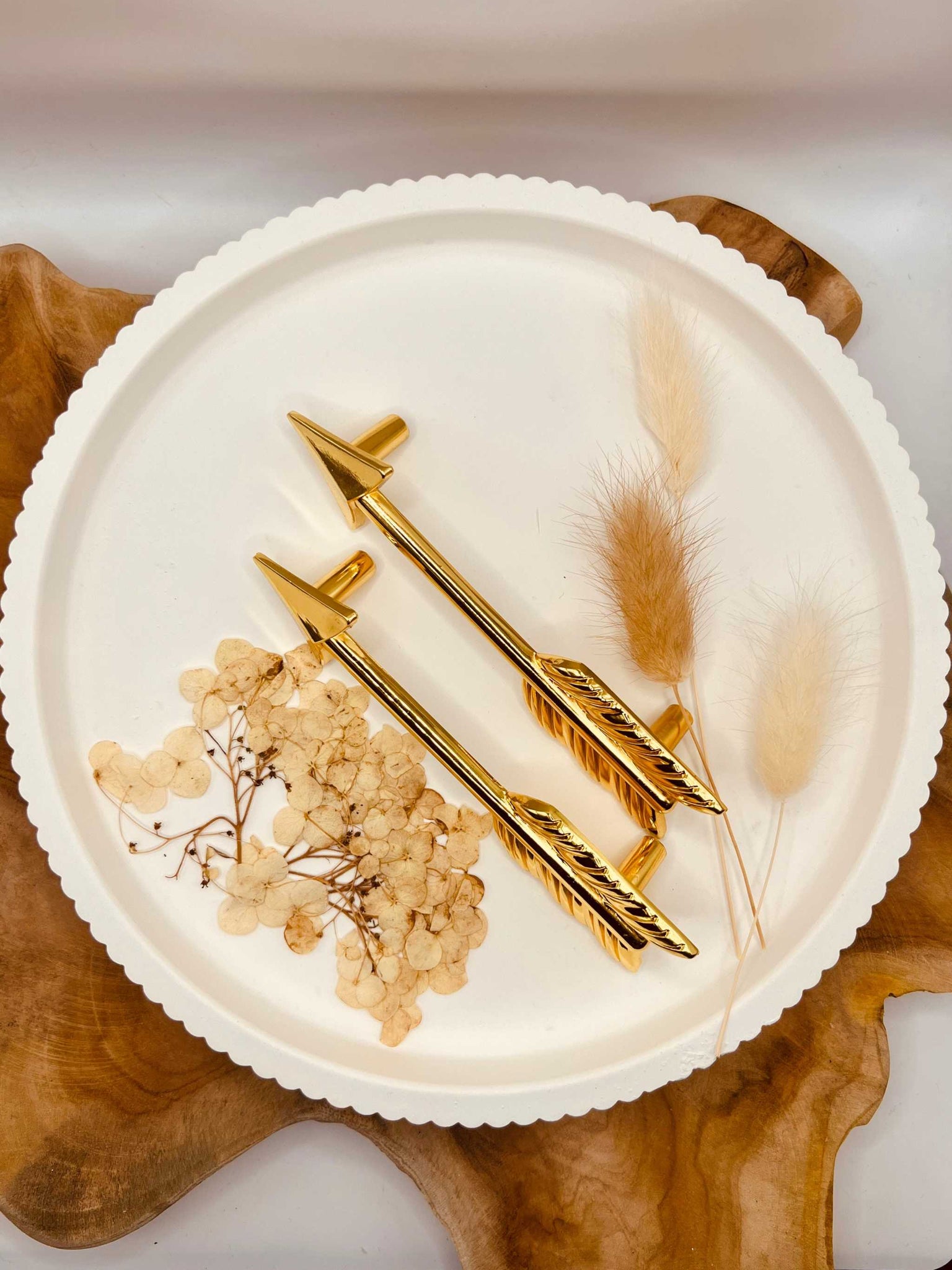 Discover our exclusive tray handle set “The Arrow” in elegant gold, perfect for your DIY projects. These high-quality metal handles give your tray a modern and elegant touch and are both functional and aesthetically pleasing. Whether for resin art or classic wooden trays - with these tray handles you can set stylish accents.