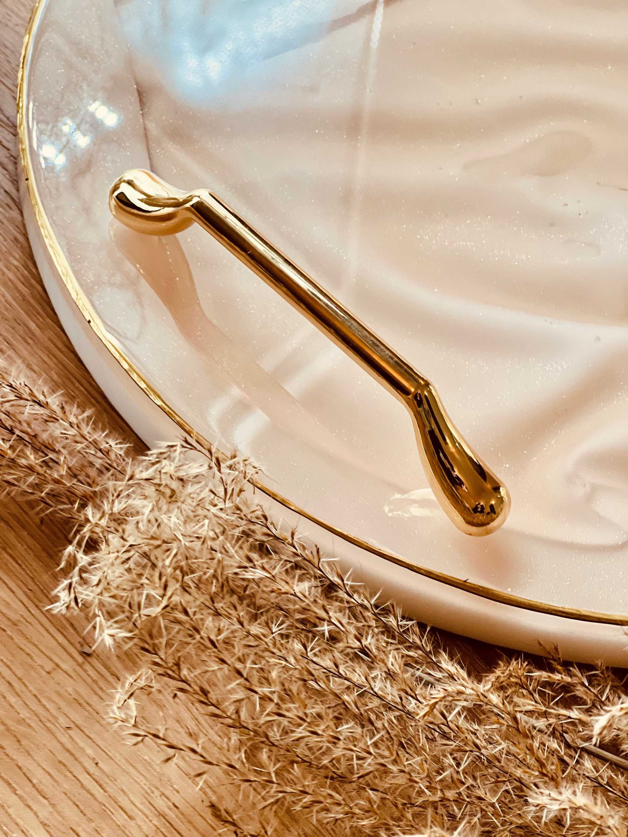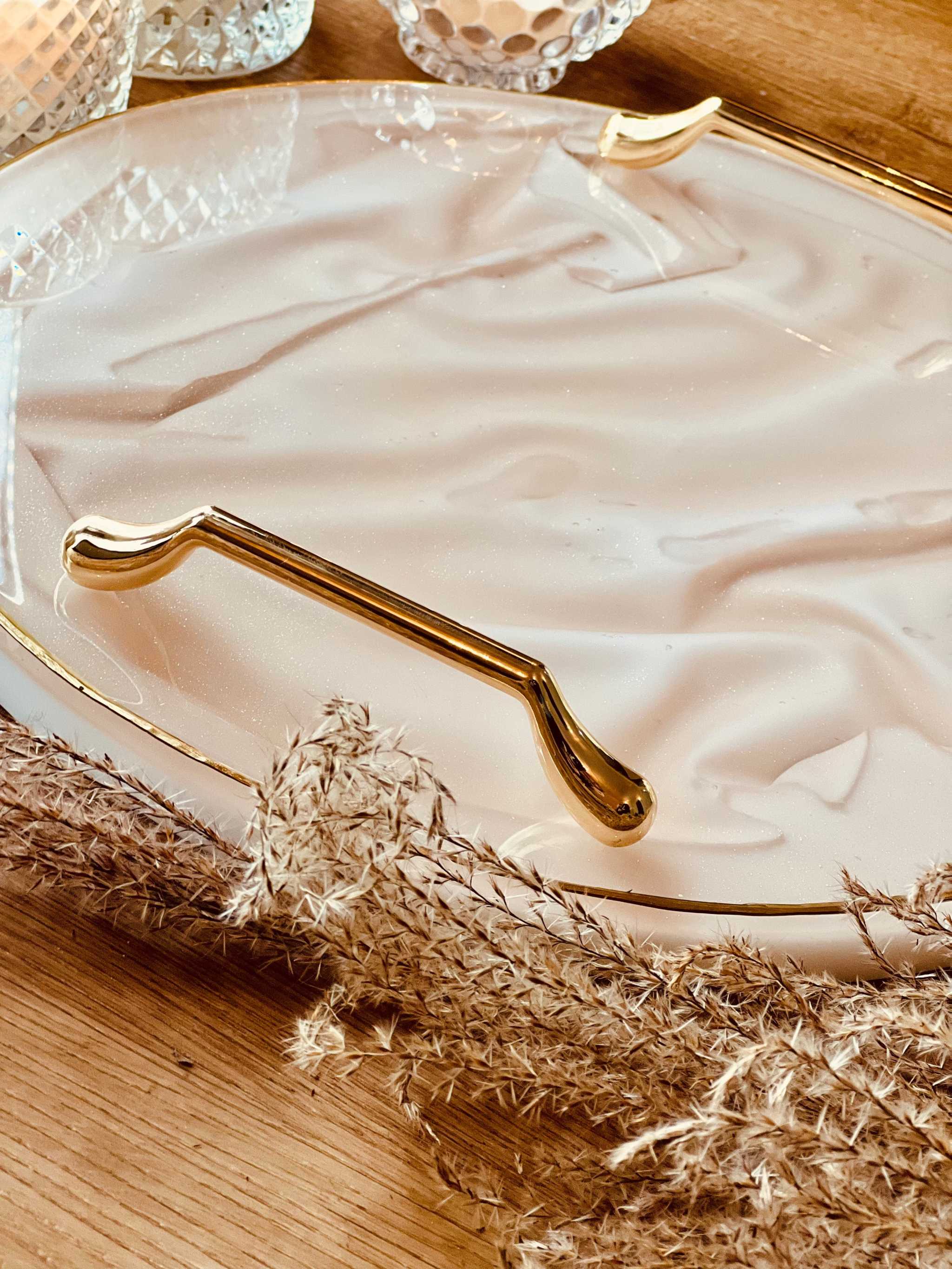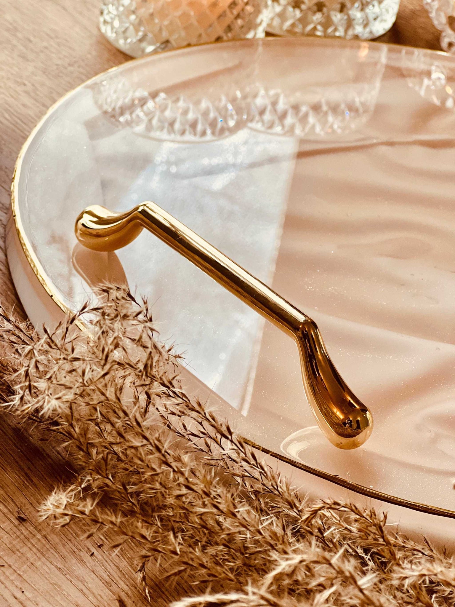 Our tray handles are versatile and easy to install - either by drilling or pouring directly into the resin. This means you can design your tray exactly as you want. Order your tray handle set "The Solid One" in gold now and create impressive, unique pieces!