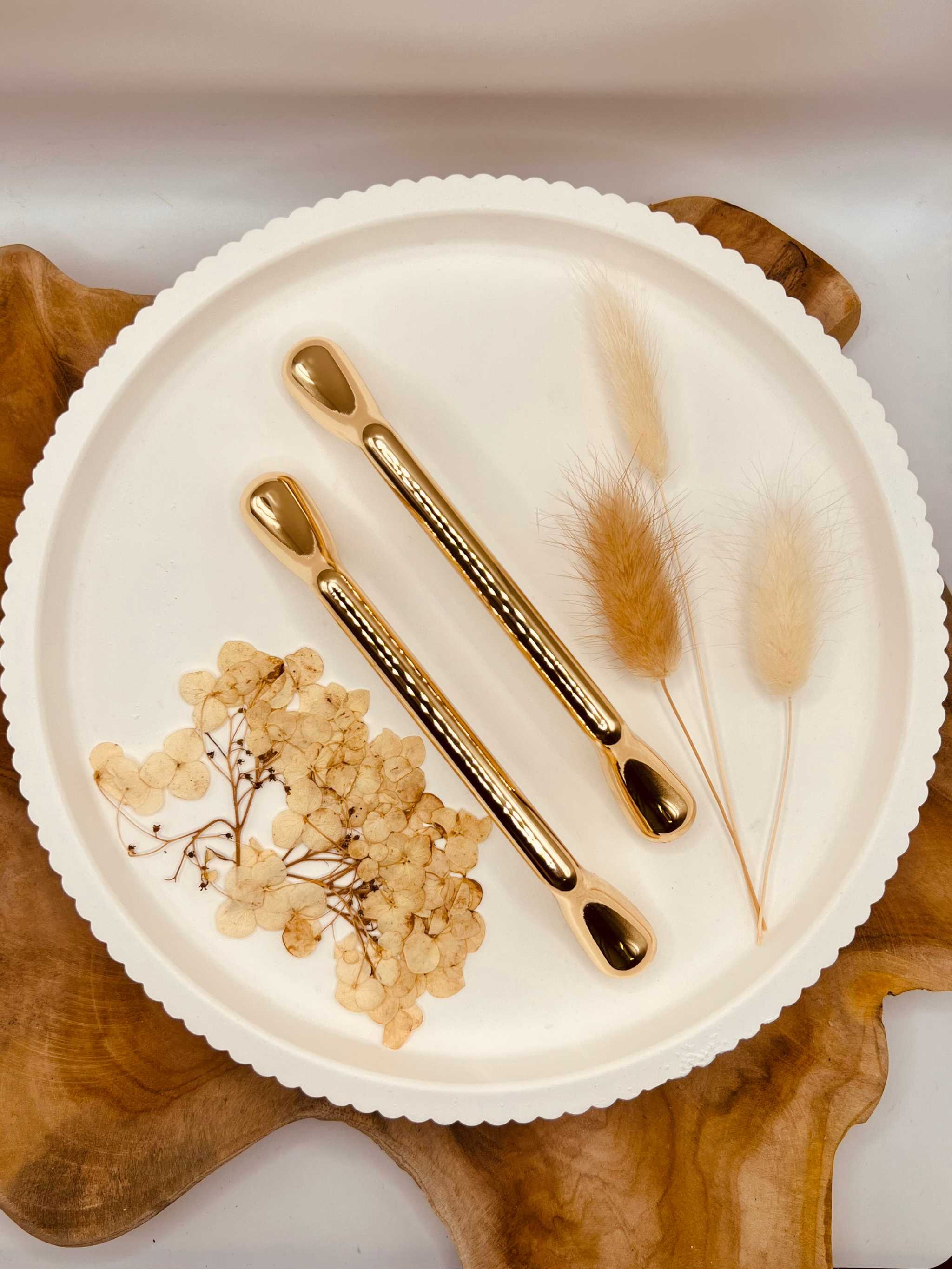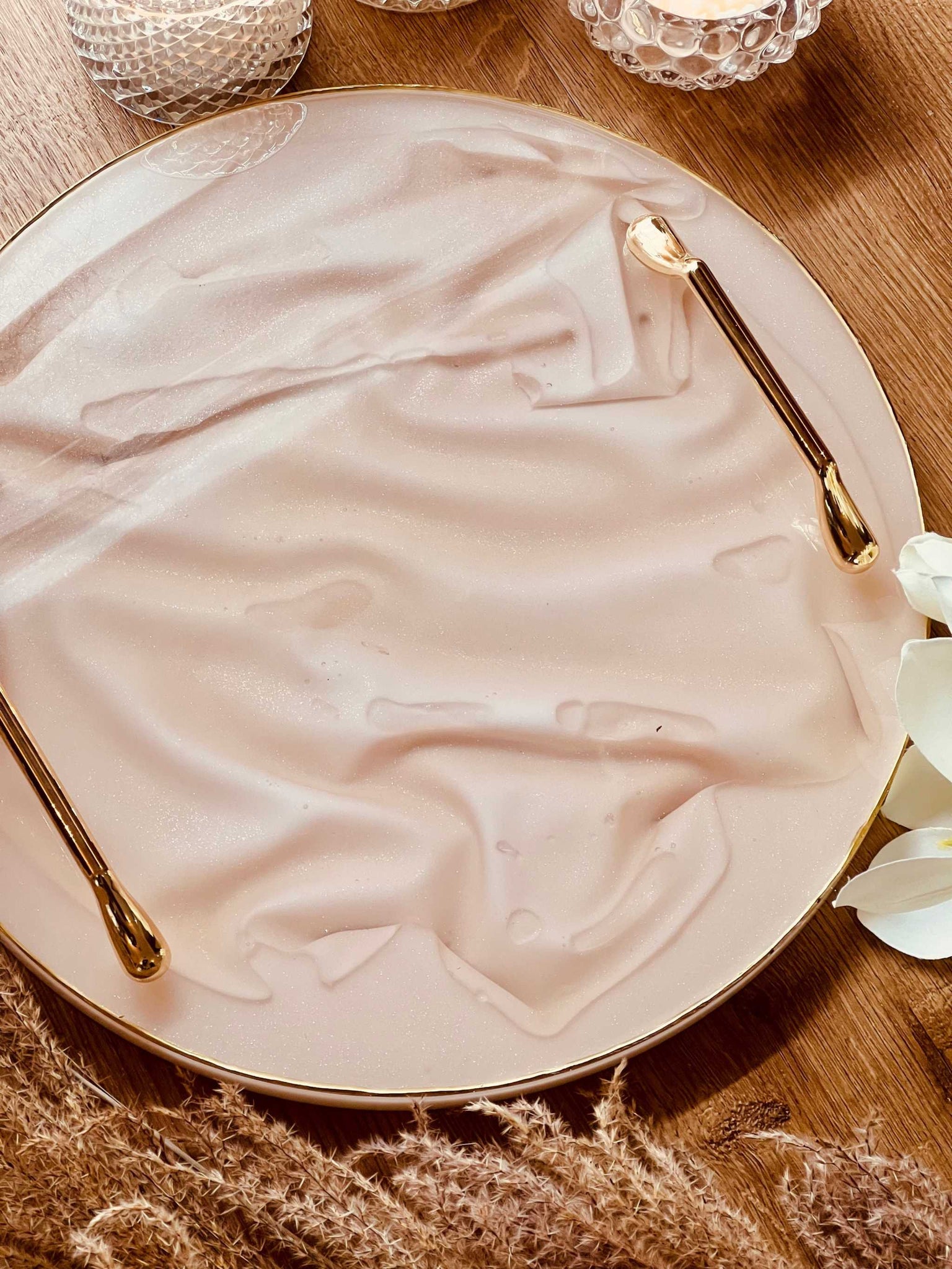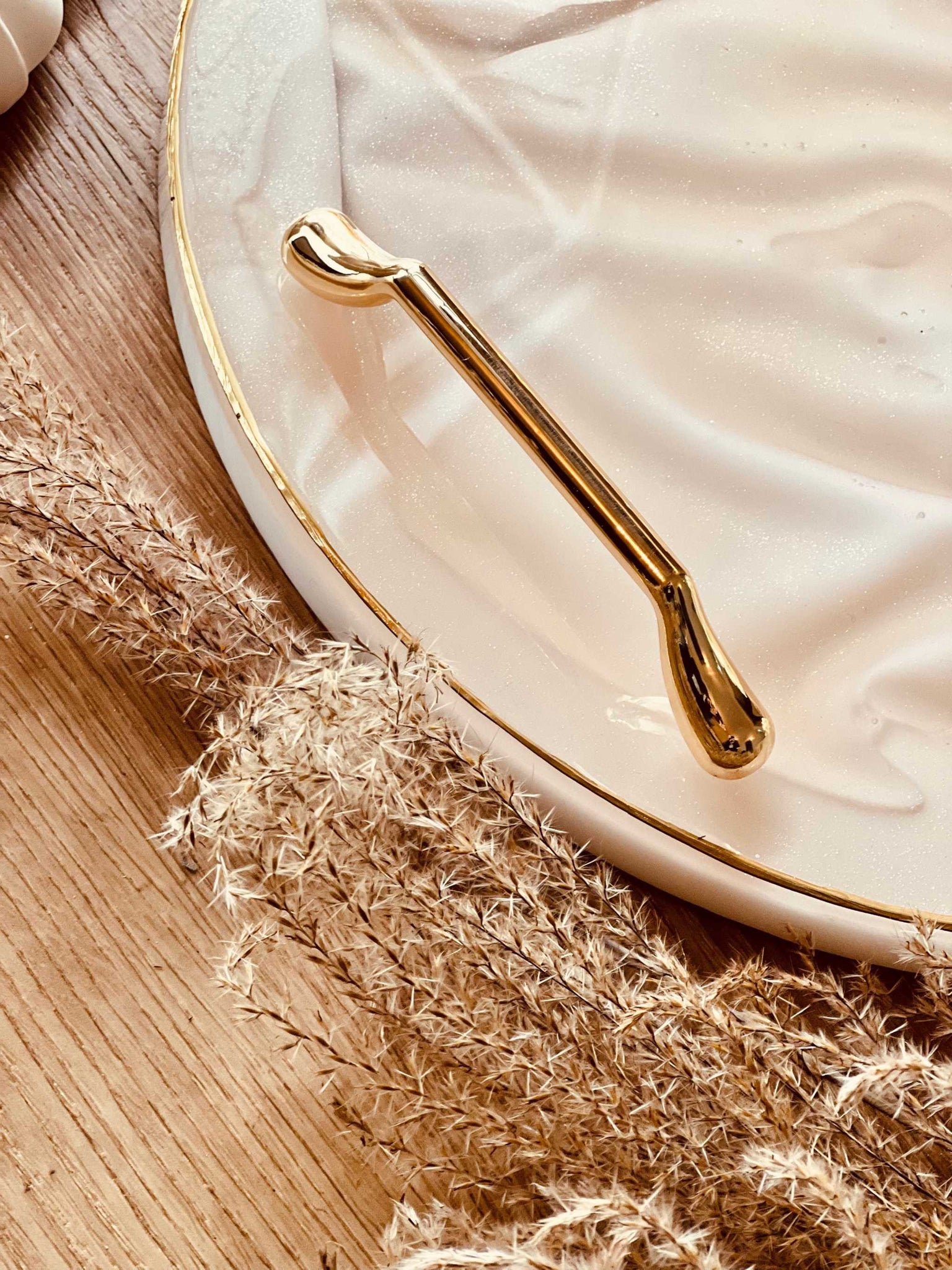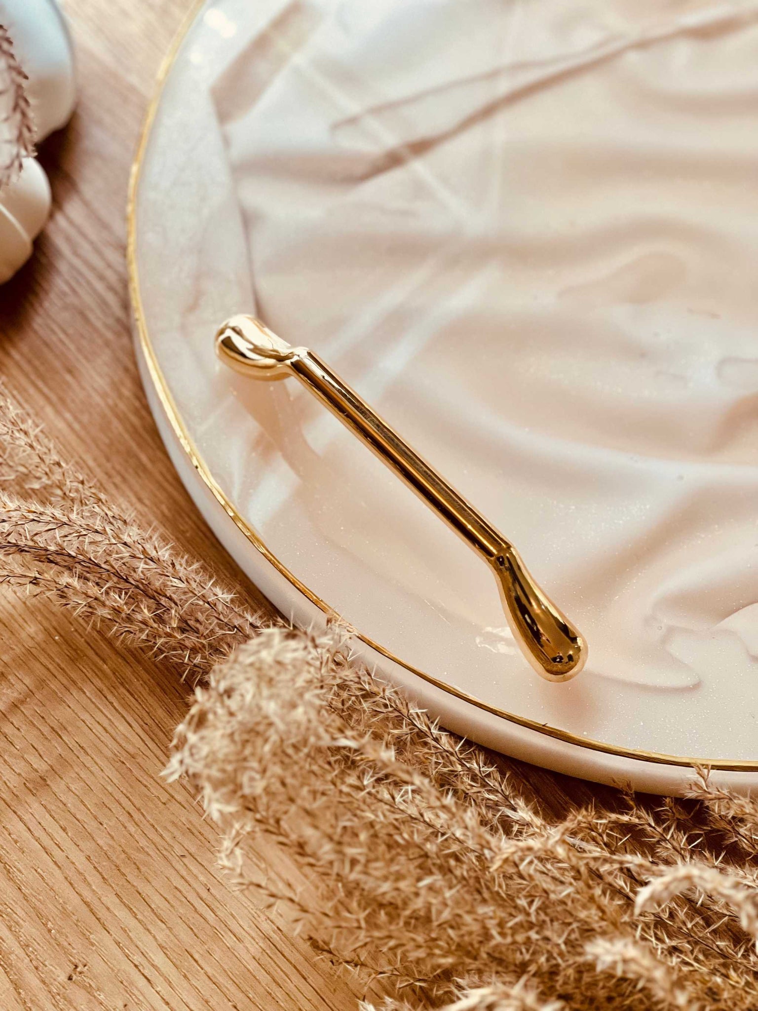 Our tray handles are versatile and easy to install - either by drilling or pouring directly into the resin. This means you can design your tray exactly as you want. Order your tray handle set "The Solid One" in gold now and create impressive, unique pieces!