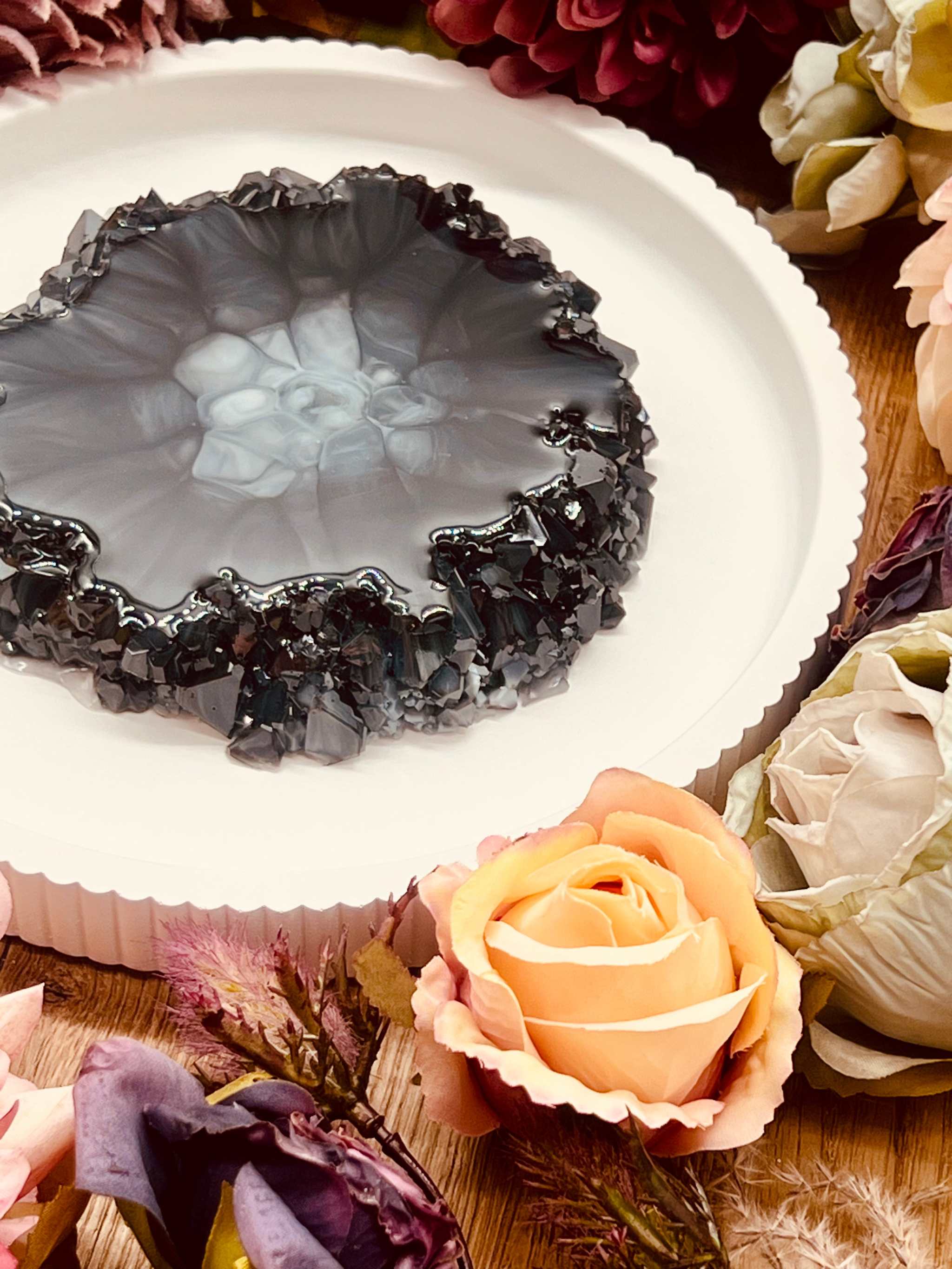 Handmade tray made of resin in a geode crystal design. All of my items are unique. Trays are the perfect decoration on any table or piece of furniture and an individual gift for your loved ones.