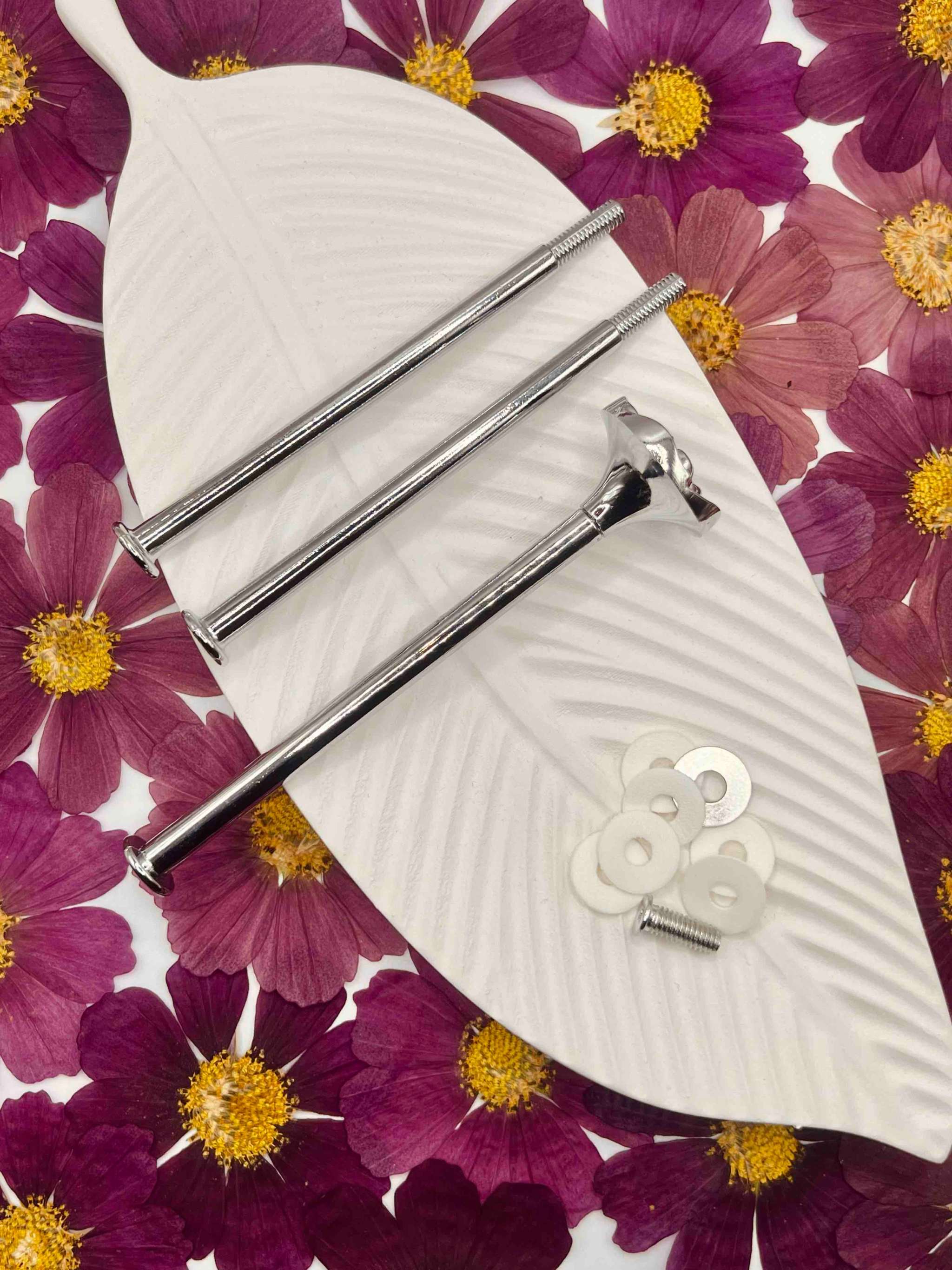 Gefertigt aus hochwertigem Metall, bietet diese Etagerenstange nicht nur eine ansprechende Optik, sondern auch Robustheit und Langlebigkeit. Ihre durchdachten Maße machen sie perfekt für dreiteilige Etageren, und die einfache Schraubmontage ermöglicht eine unkomplizierte Handhabung.